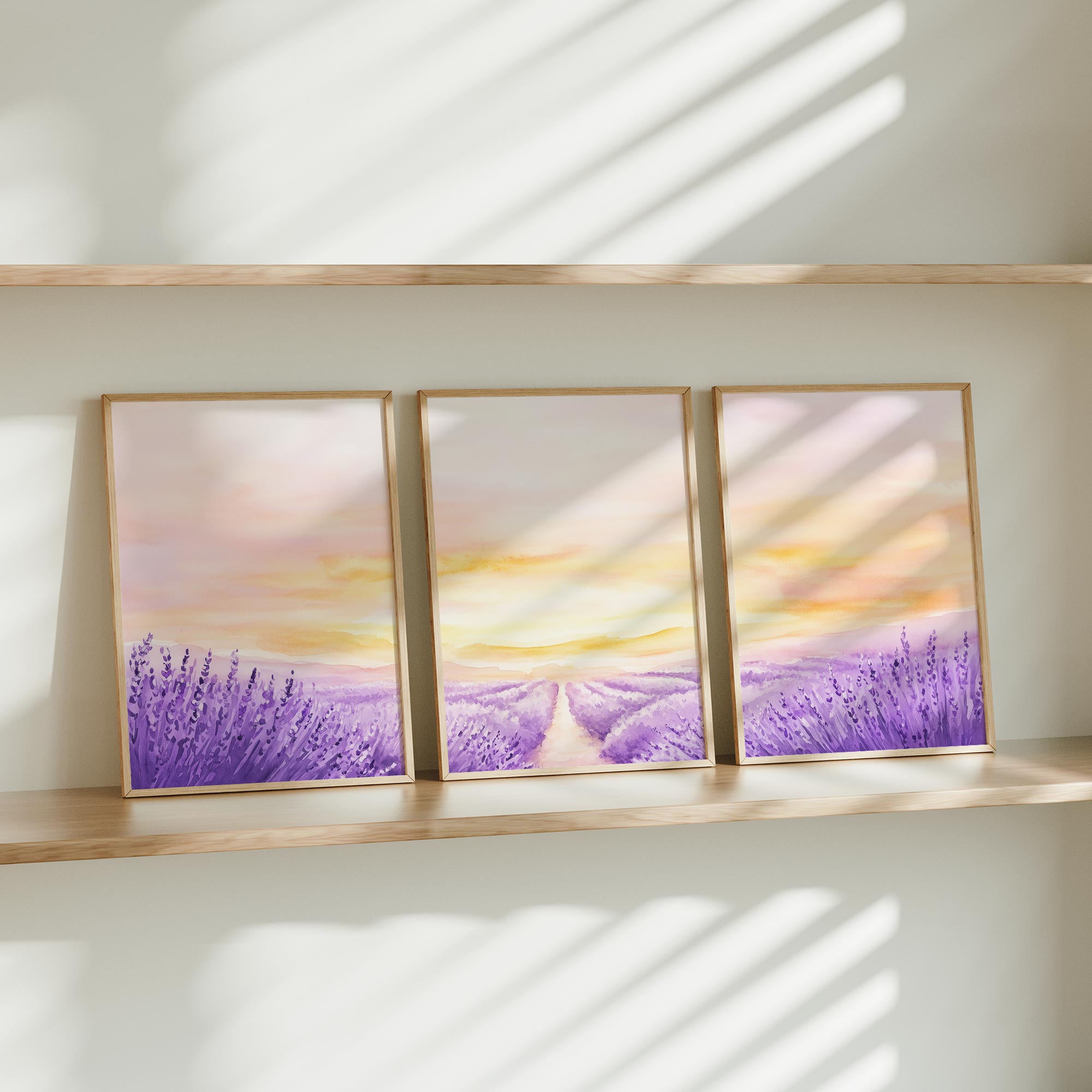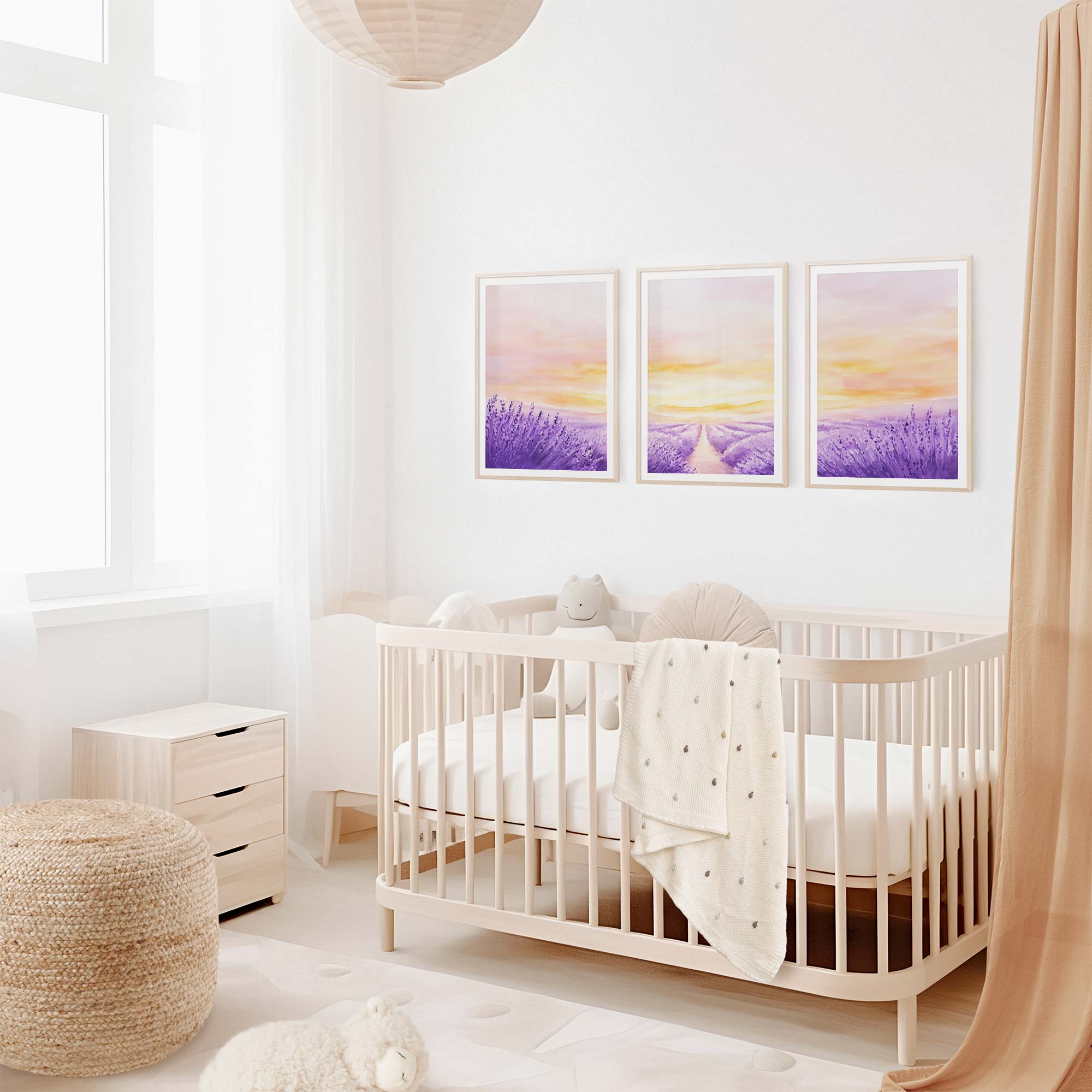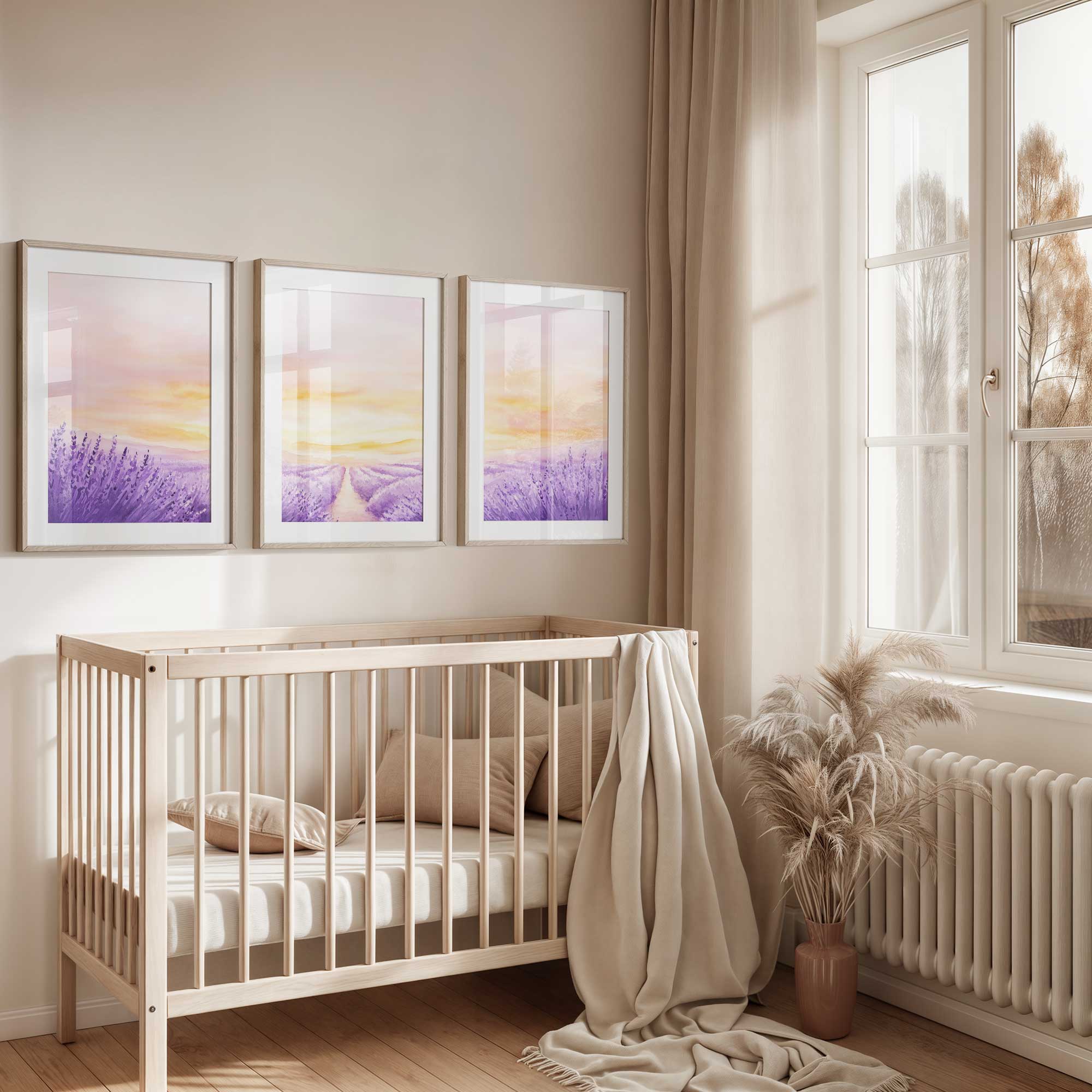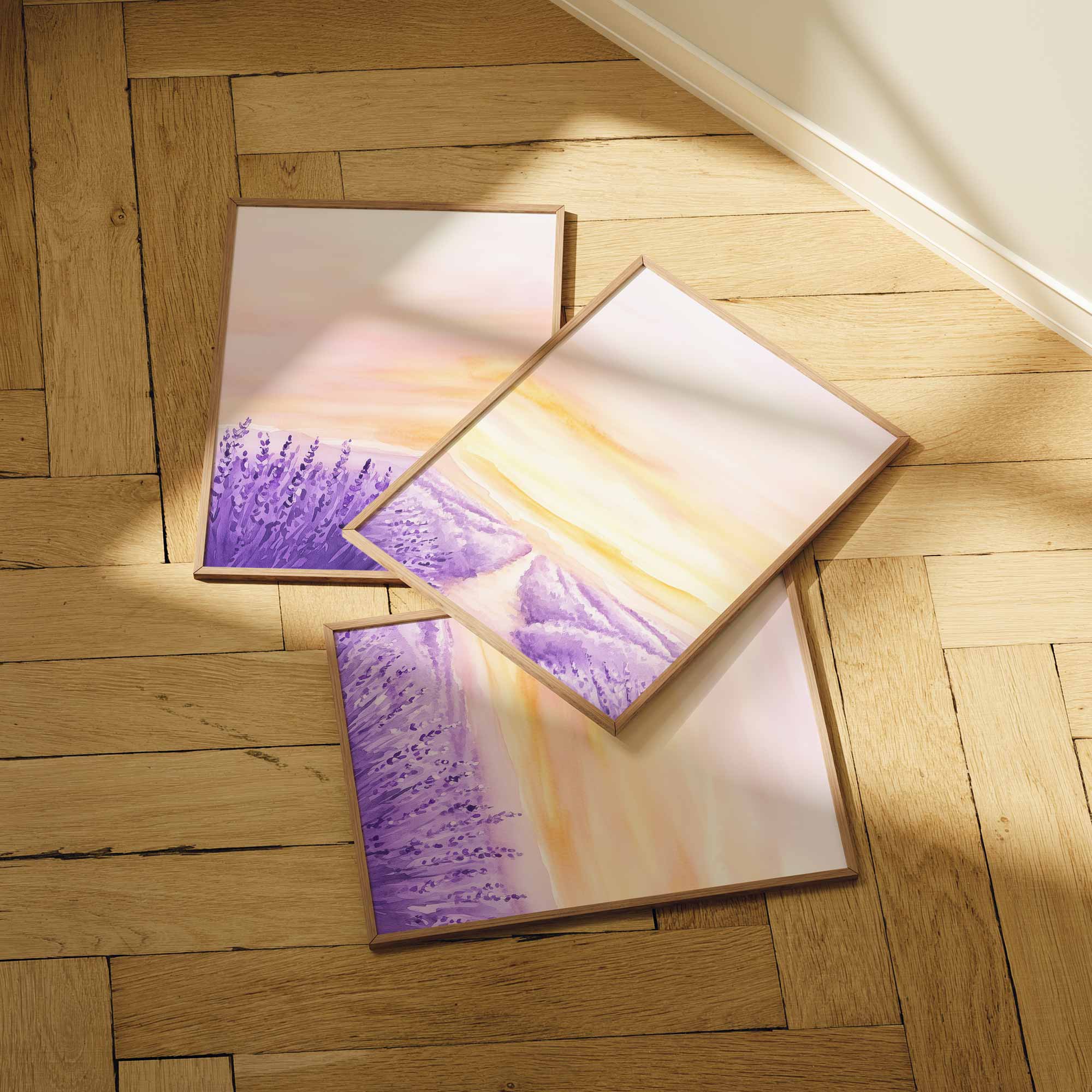 Terug naar collectie / Kinderkamer posters / Bloemen posters / Zacht Lavendelveld onder Roze Zonsondergang