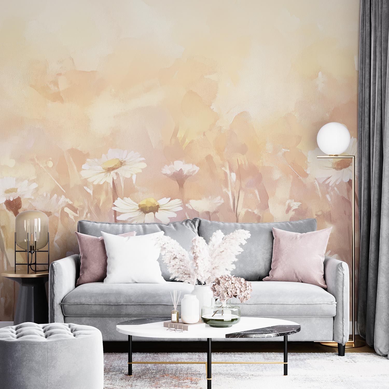 Zacht Pastel Madeliefjesveld behang