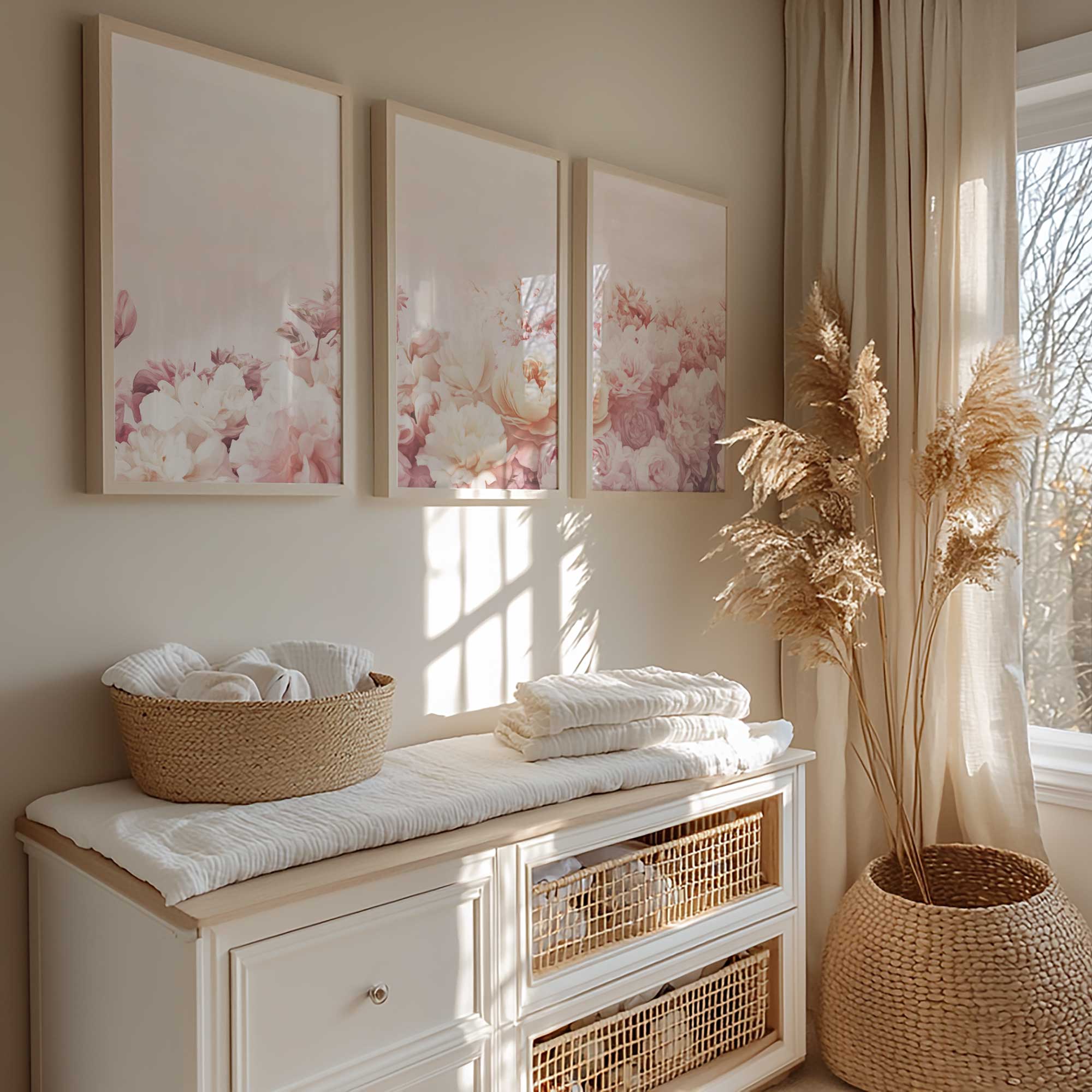 Terug naar collectie / Kinderkamer posters / Bloemen posters / Zacht Roze Bloemenpracht – Stijlvolle Wanddecoratie
