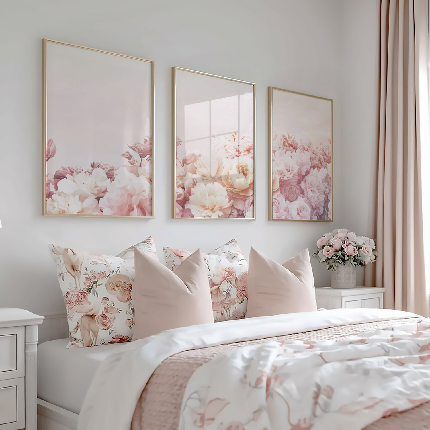 Zacht Roze Bloemenpracht – Stijlvolle Wanddecoratie
