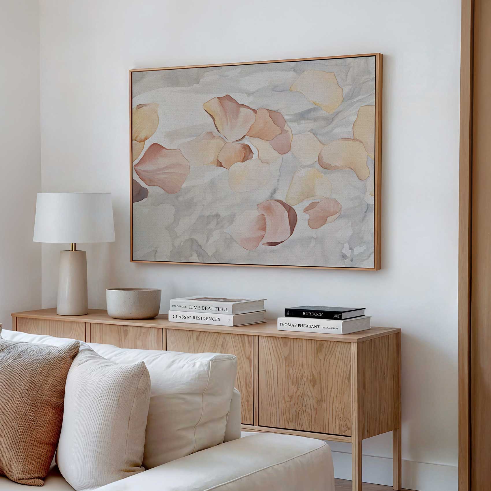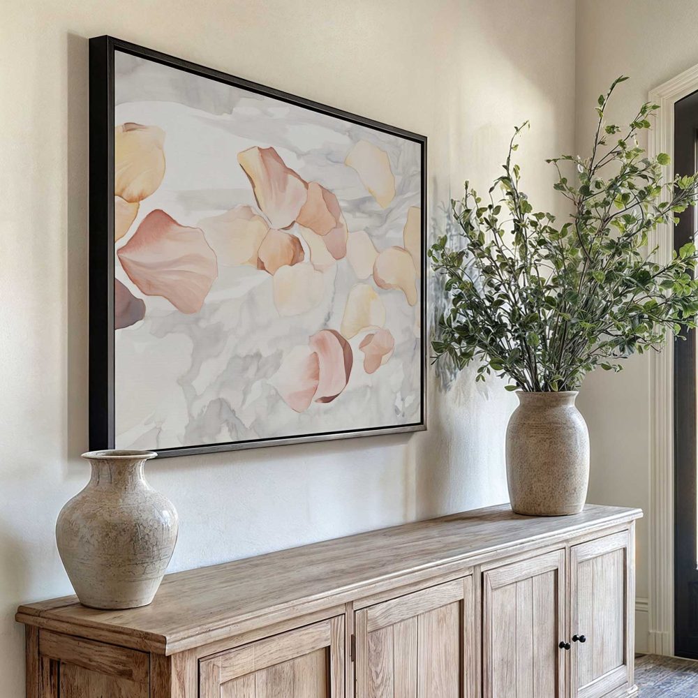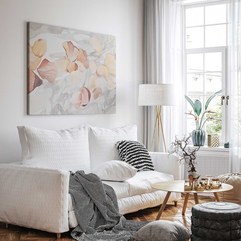 Terug naar collectie / Schilderijen / Abstract Schilderij / Zacht roze bloemenwaterverf