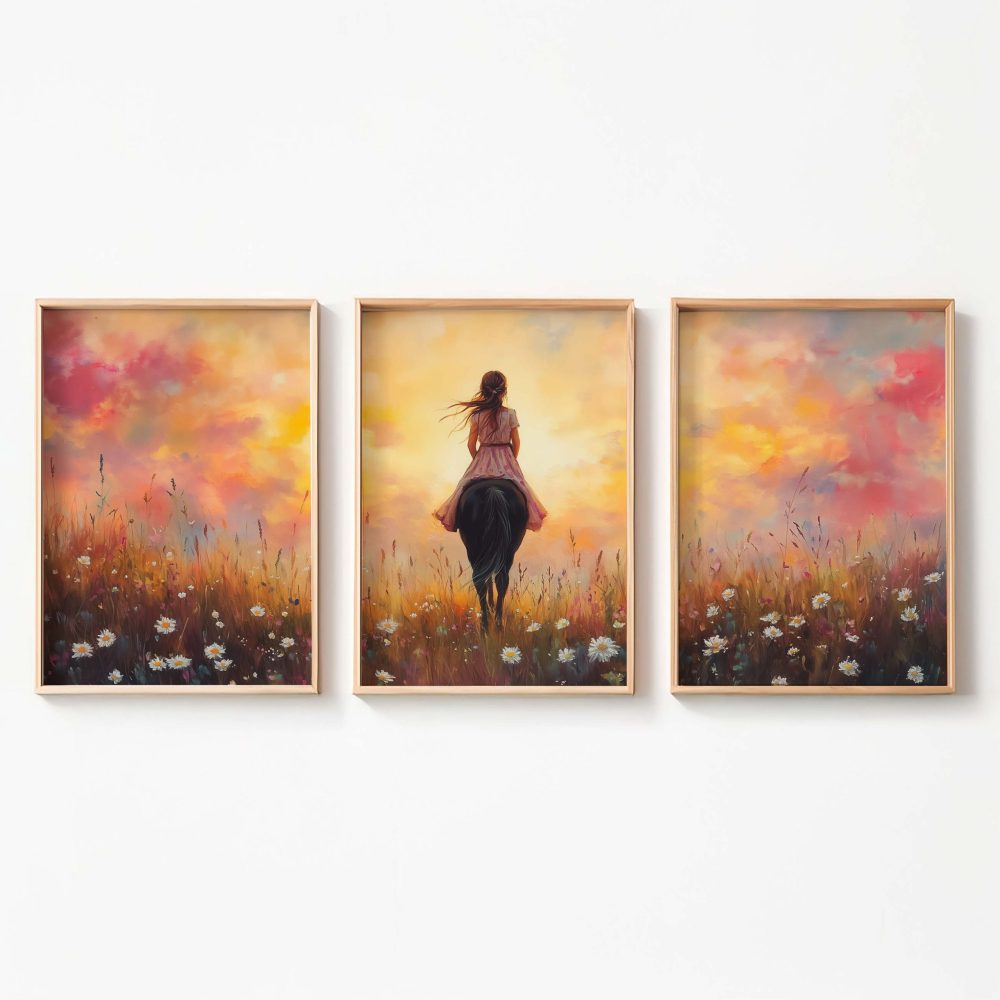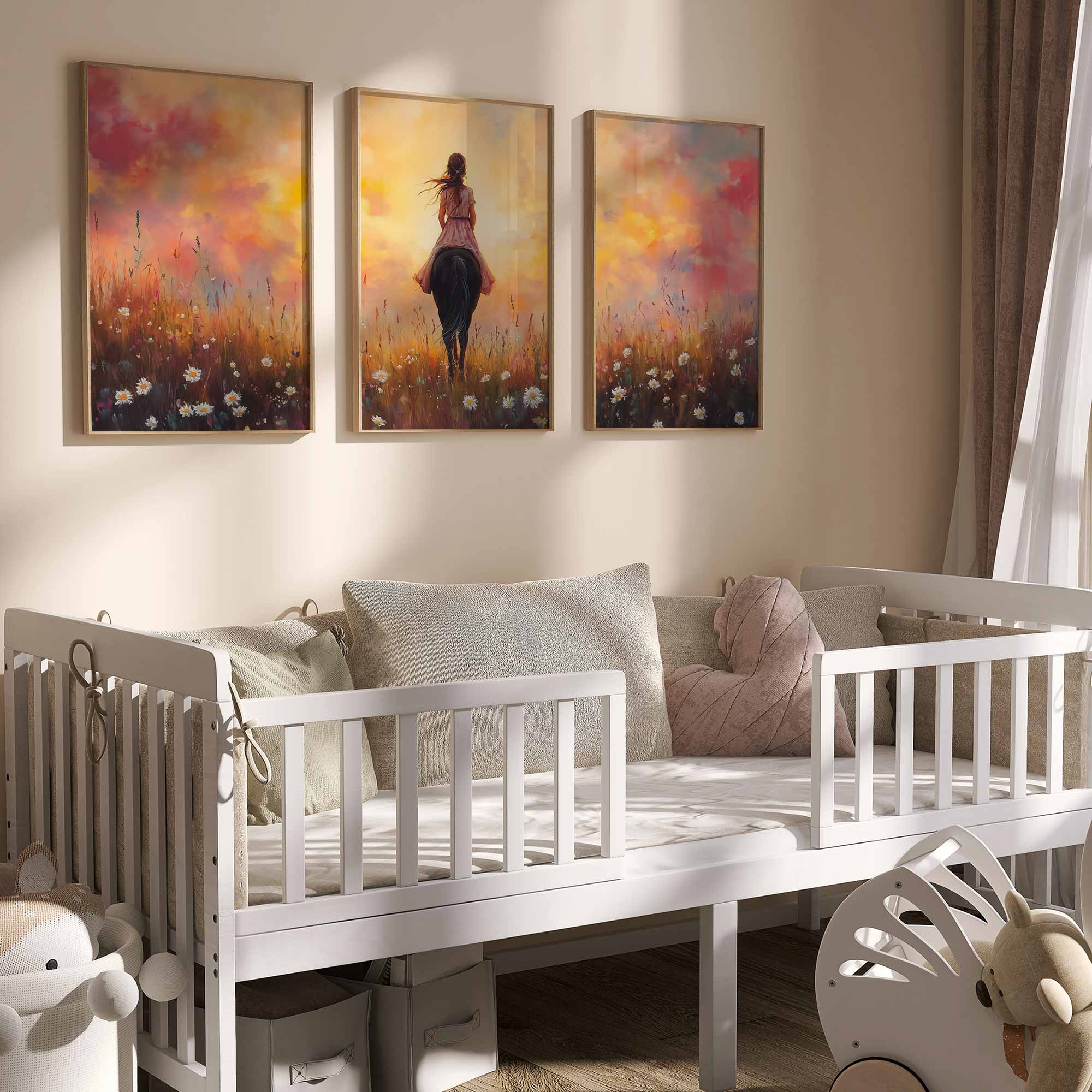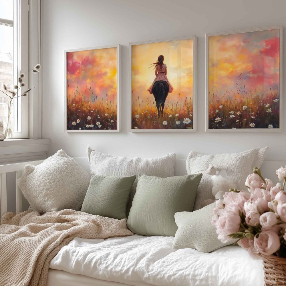Terug naar collectie / Uncategorized / Zacht Roze Droom: Meisje te Paard tussen Bloemen