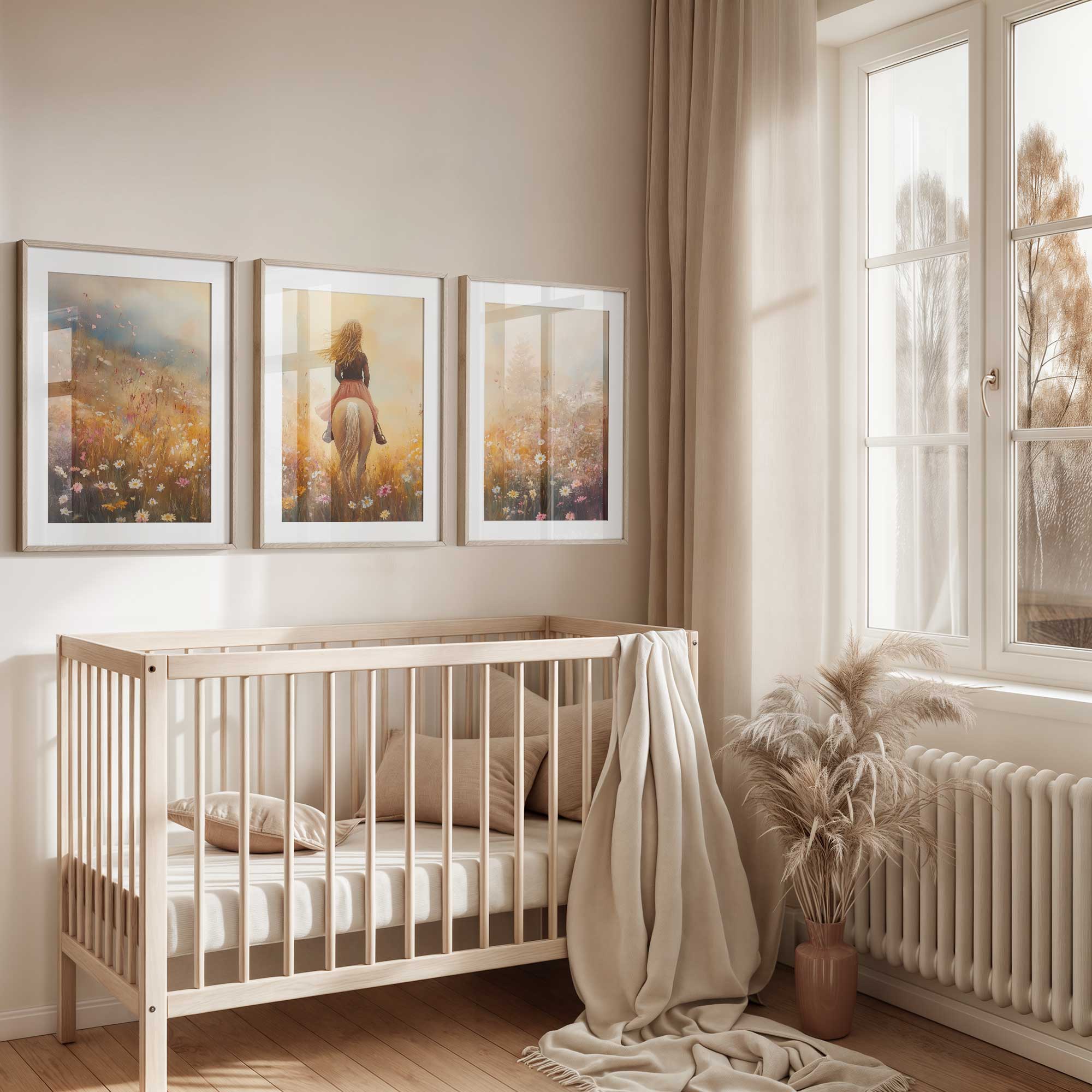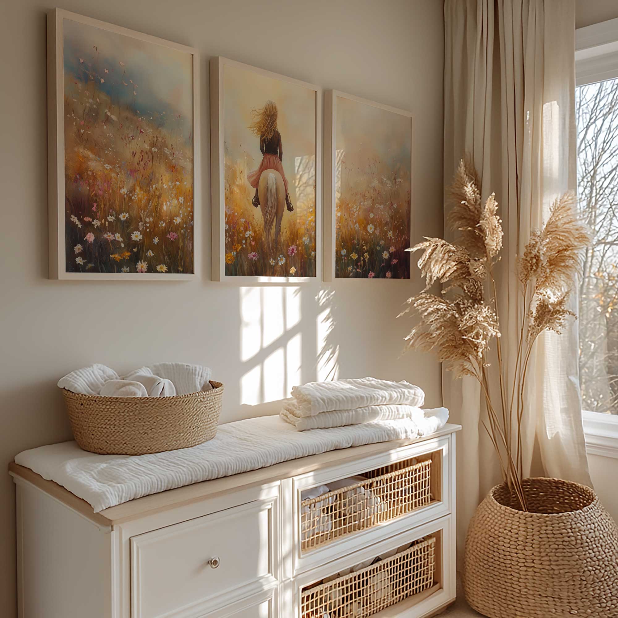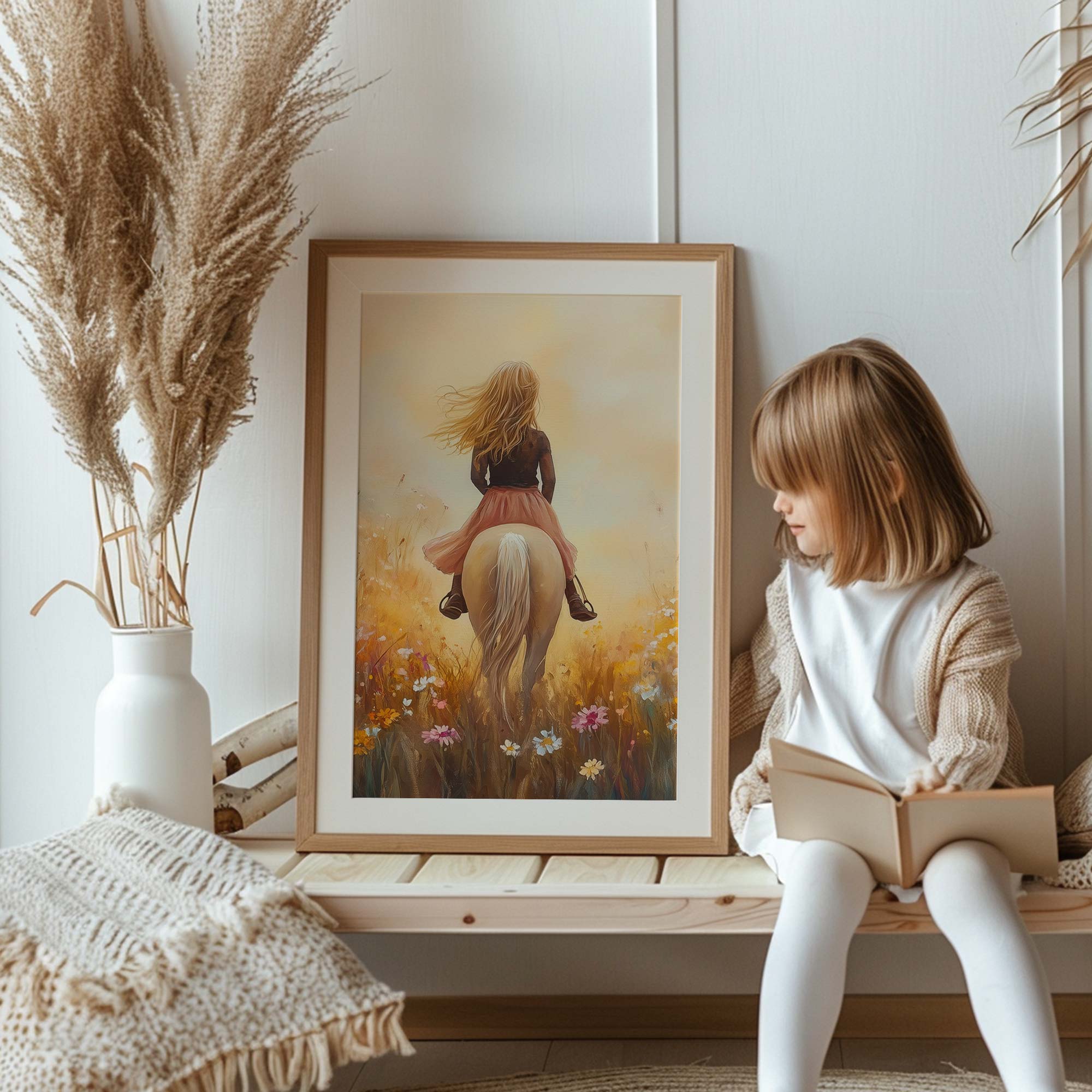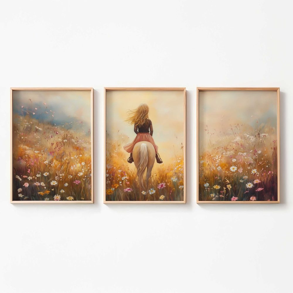 Terug naar collectie / Uncategorized / Zacht Roze Droom: Vrouw te Paard in Bloemenveld