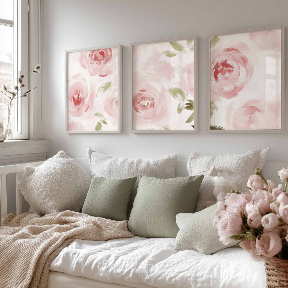 Terug naar collectie / Kinderkamer posters / Bloemen posters / Zacht Roze & Groen Bloemenparadijs – Speelse Elegantie