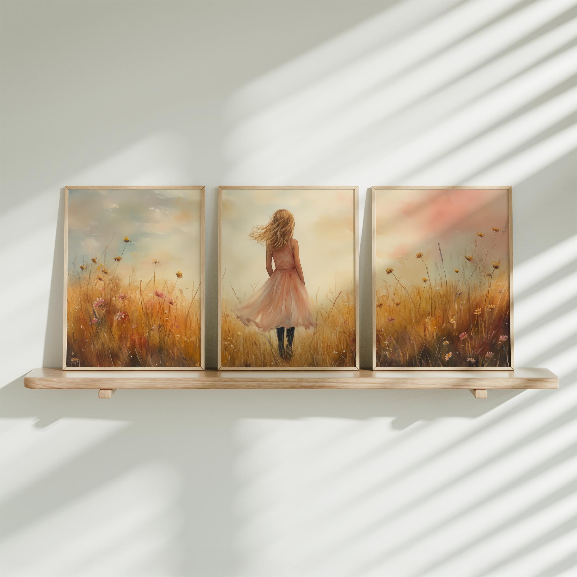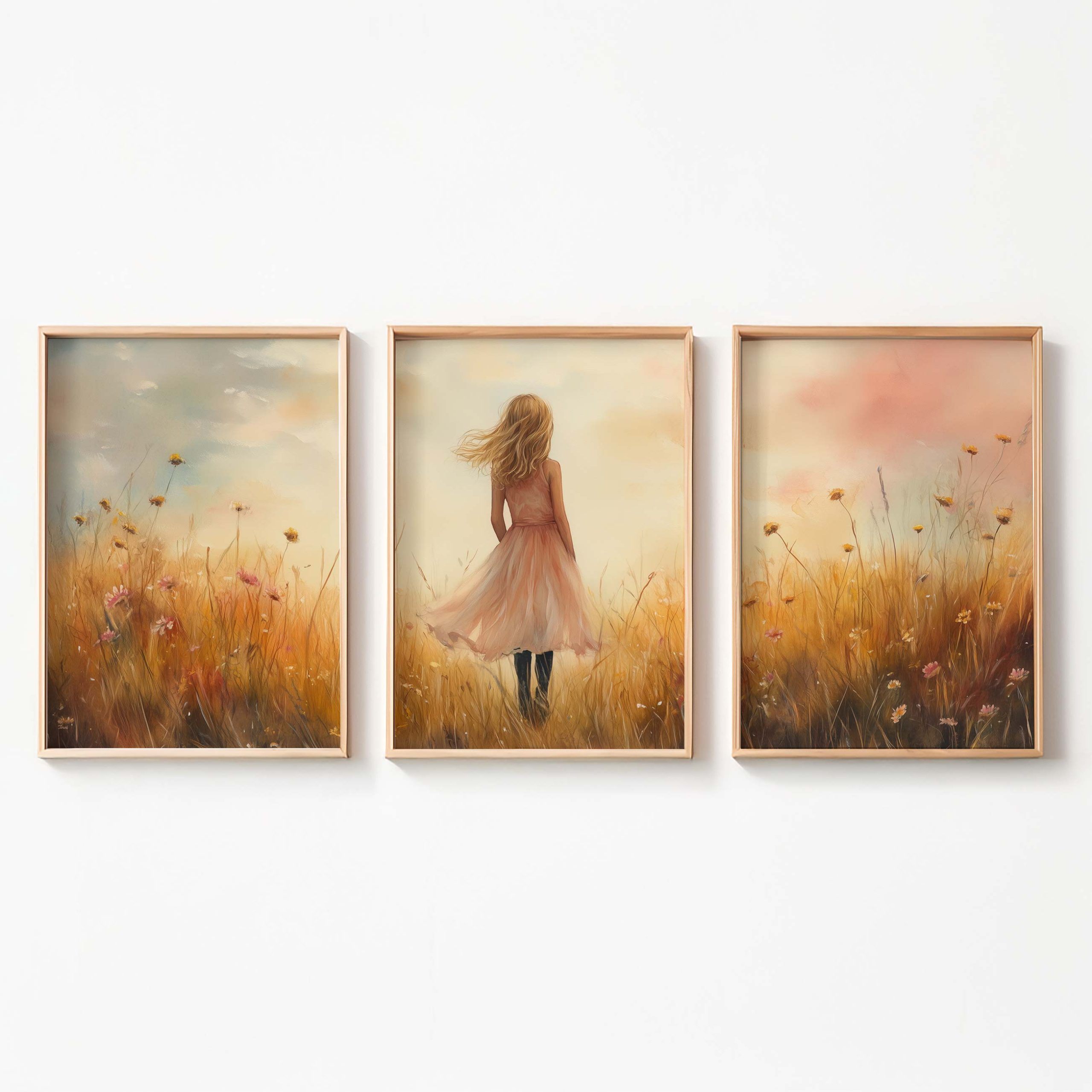 Terug naar collectie / Uncategorized / Zacht Roze Meisje in Bloemenveld – Dromerige Muurdecoratie