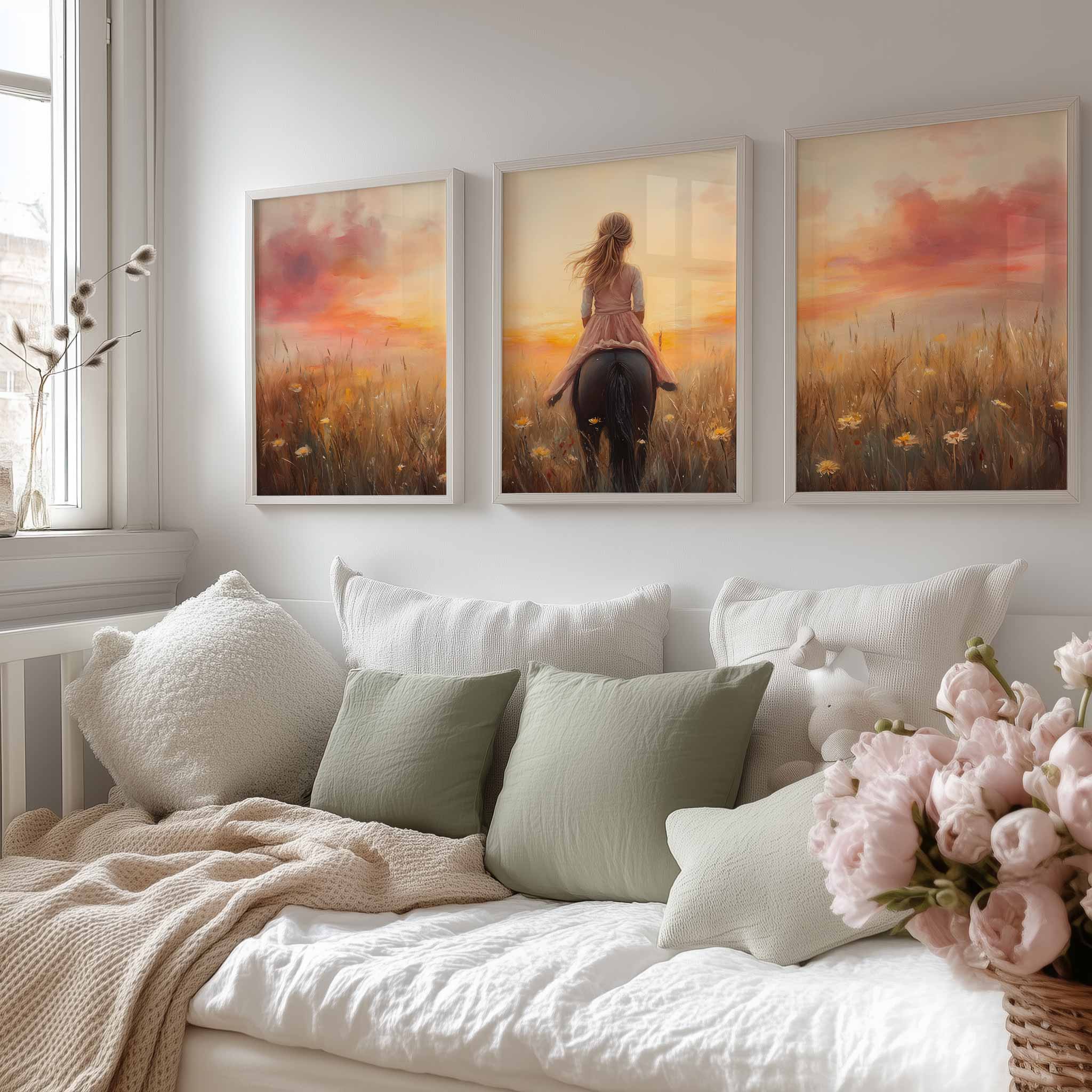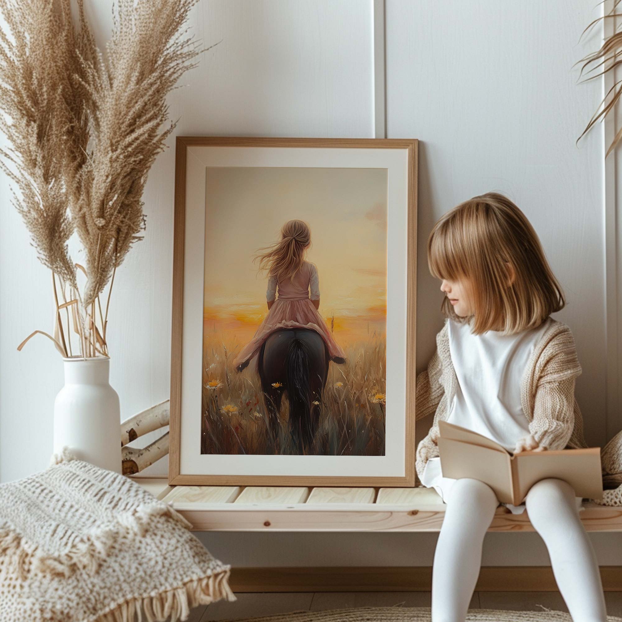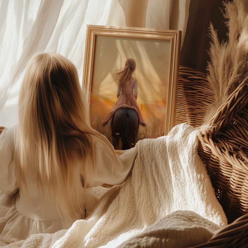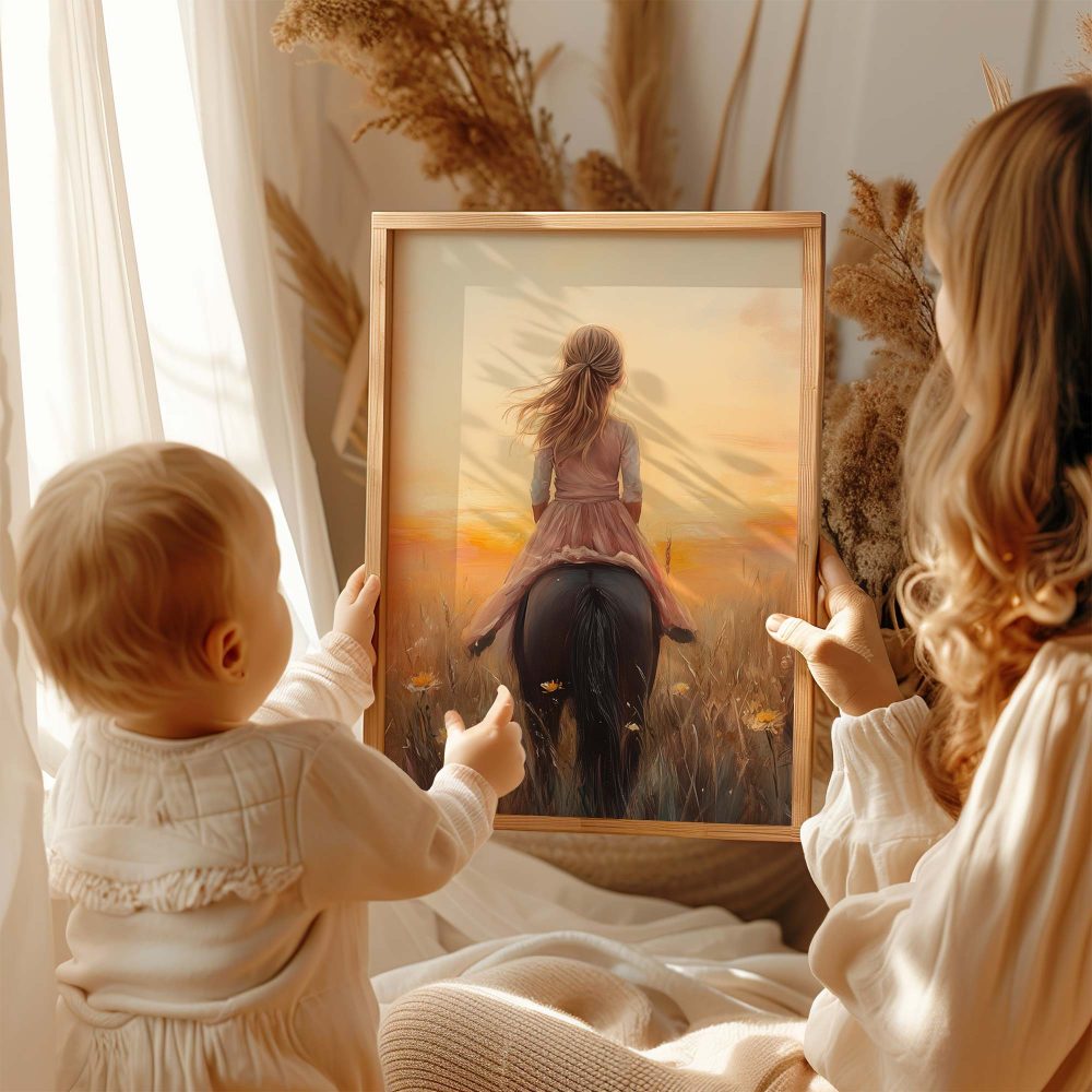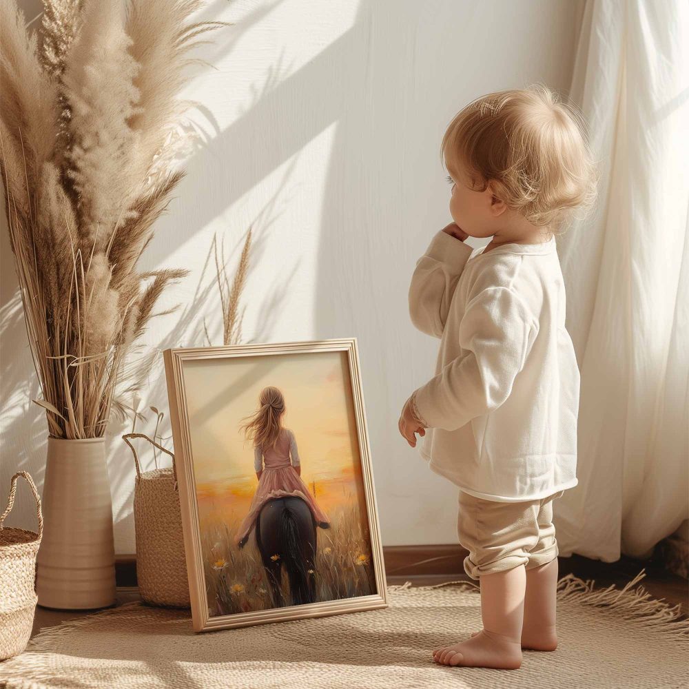 Terug naar collectie / Uncategorized / Zacht Roze Meisje op Paard tussen Bloemen
