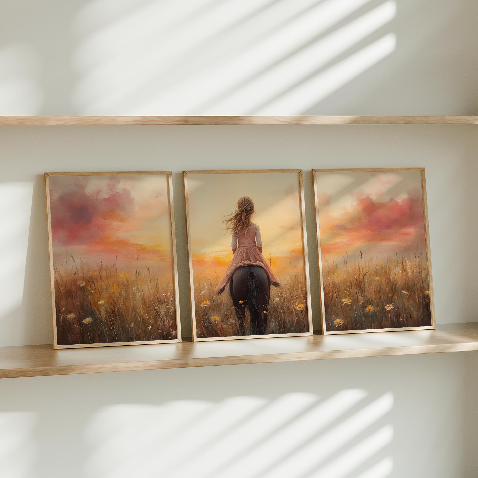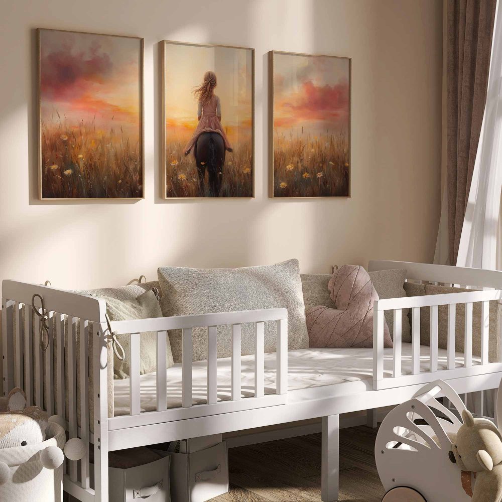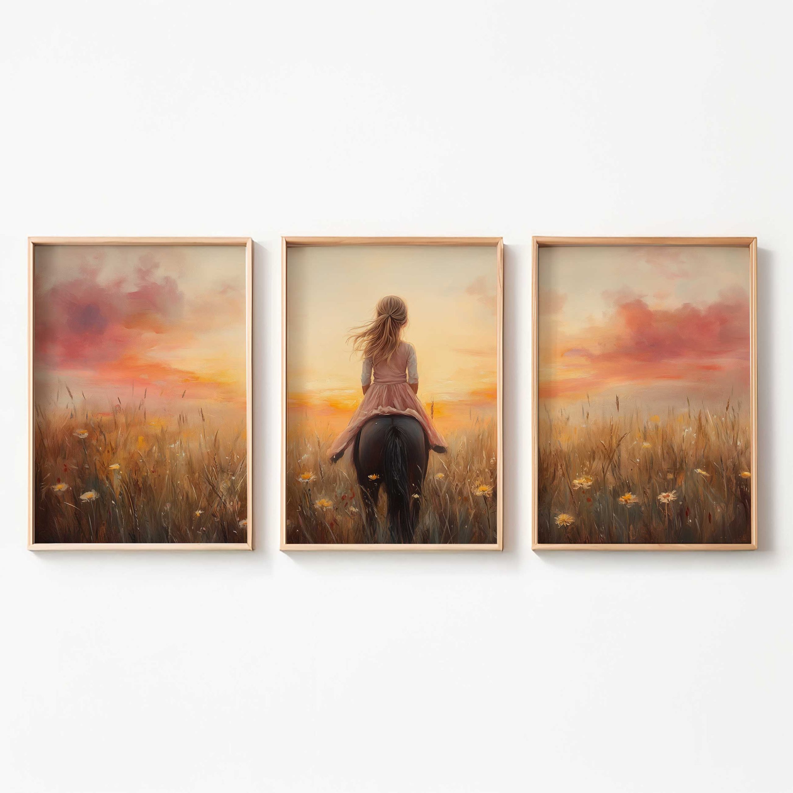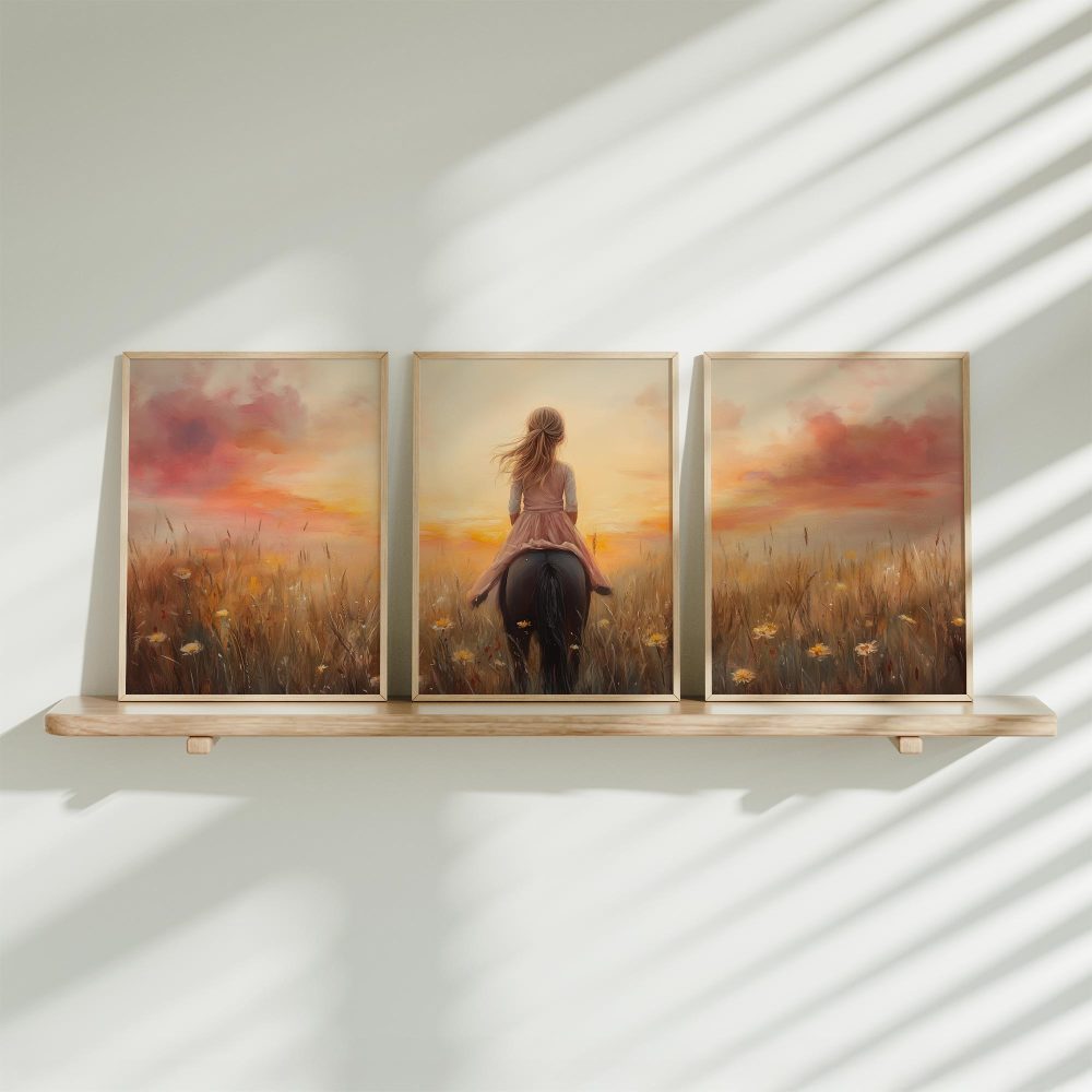 Terug naar collectie / Uncategorized / Zacht Roze Meisje op Paard tussen Bloemen
