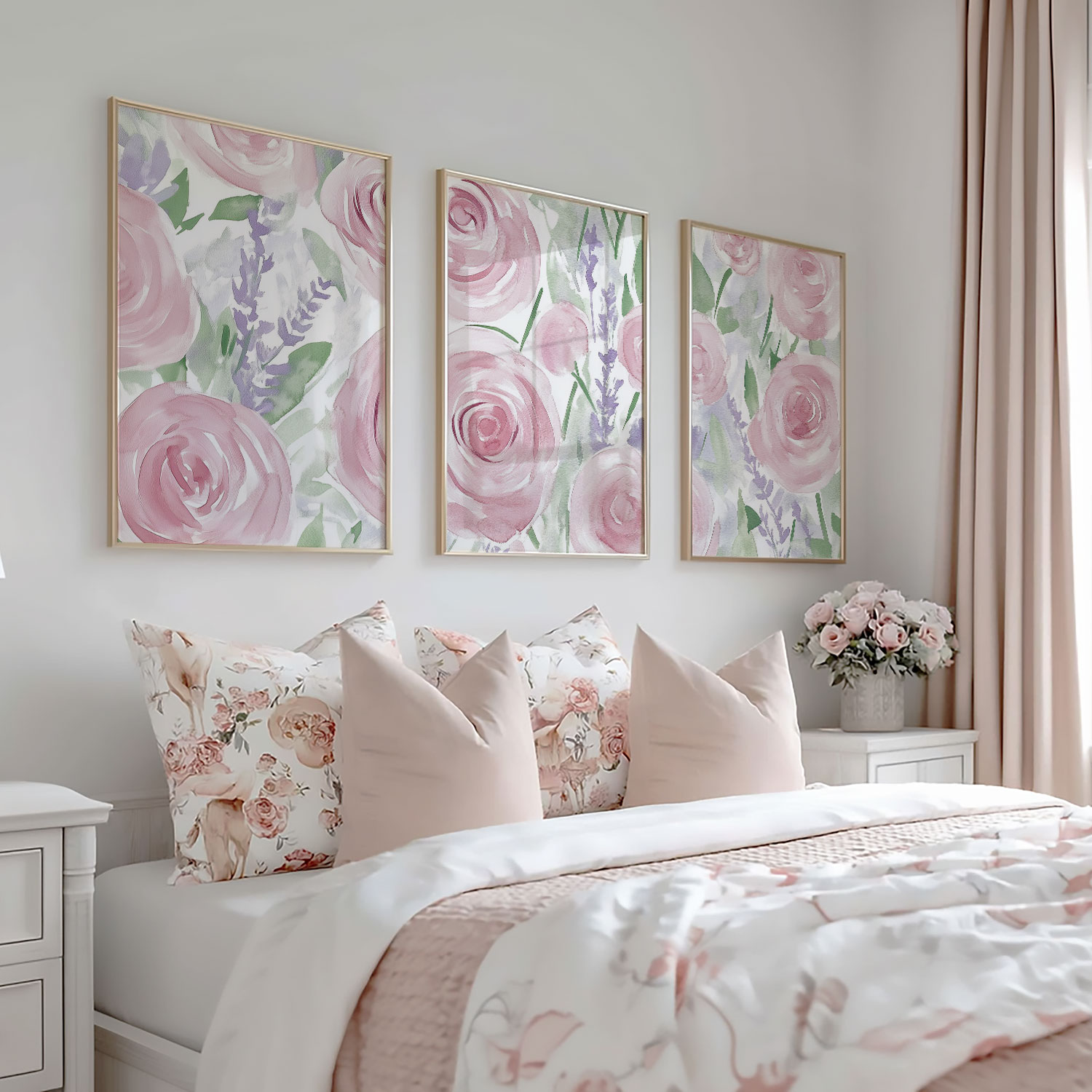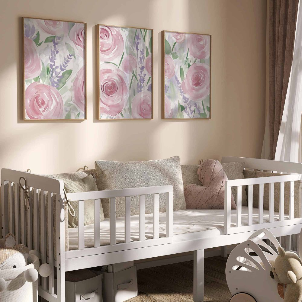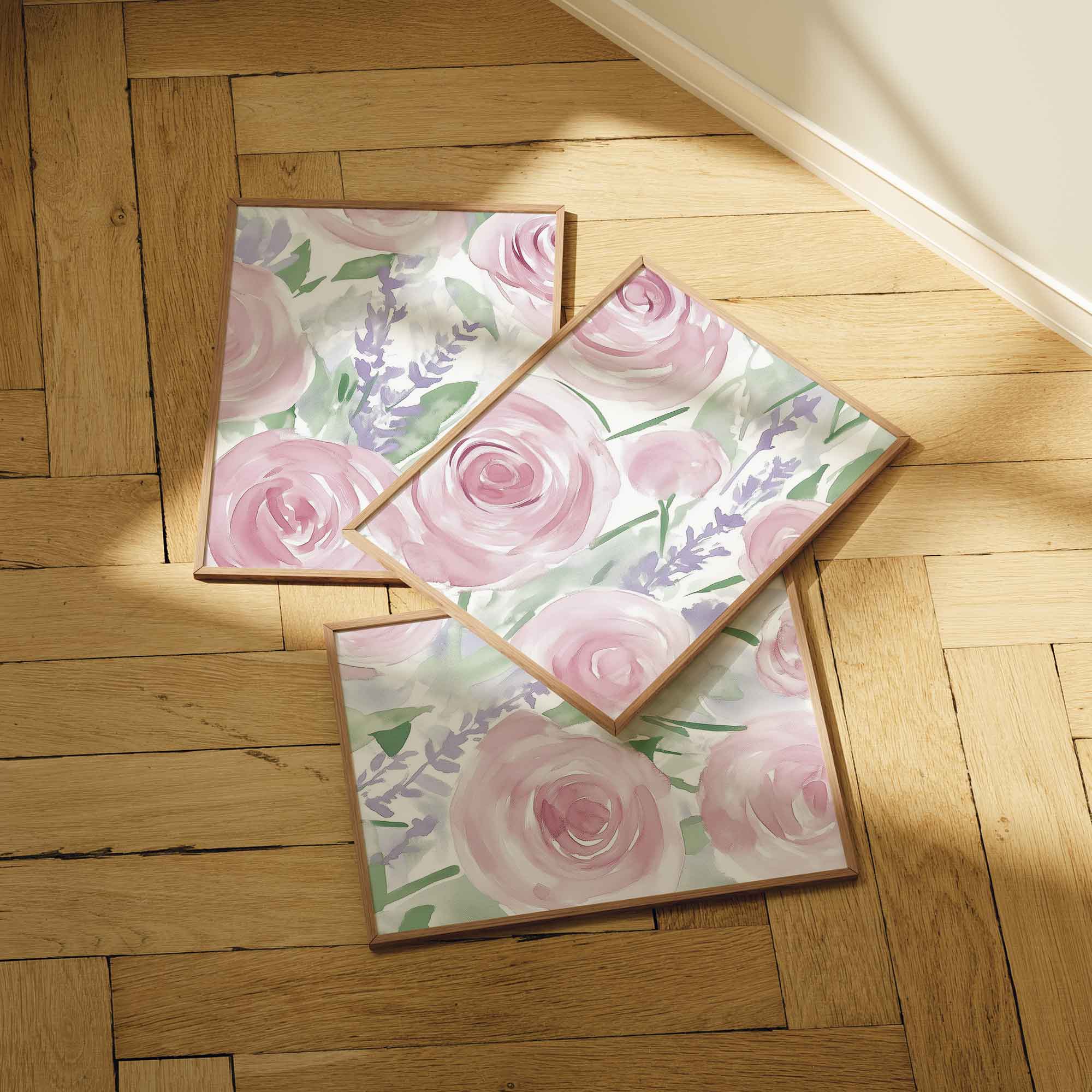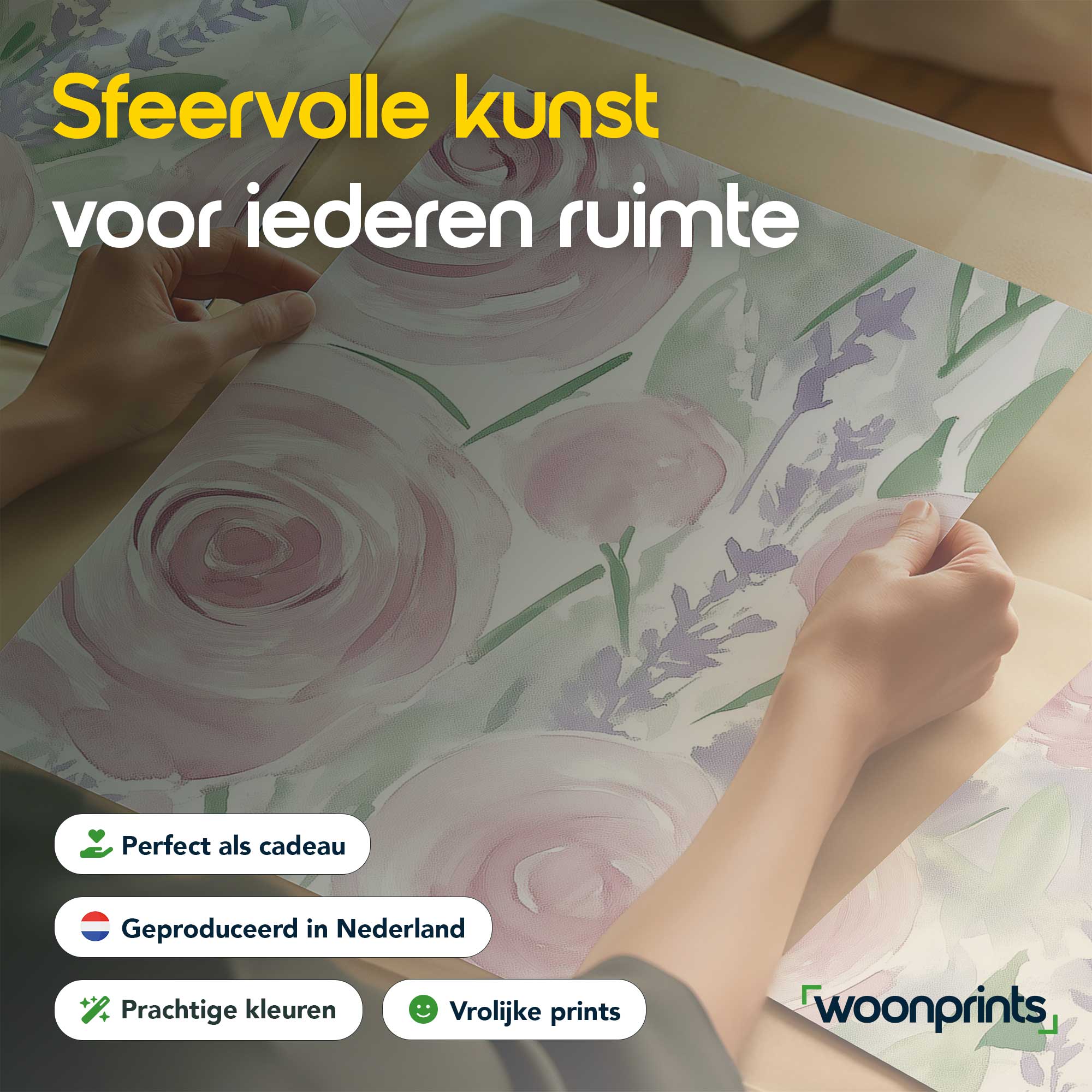 Terug naar collectie / Kinderkamer posters / Bloemen posters / Zacht Roze Rozen en Lavendel – Speelse Waterverf Wanddecoratie