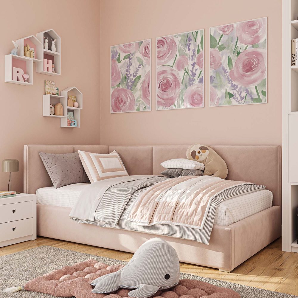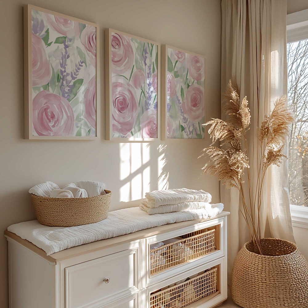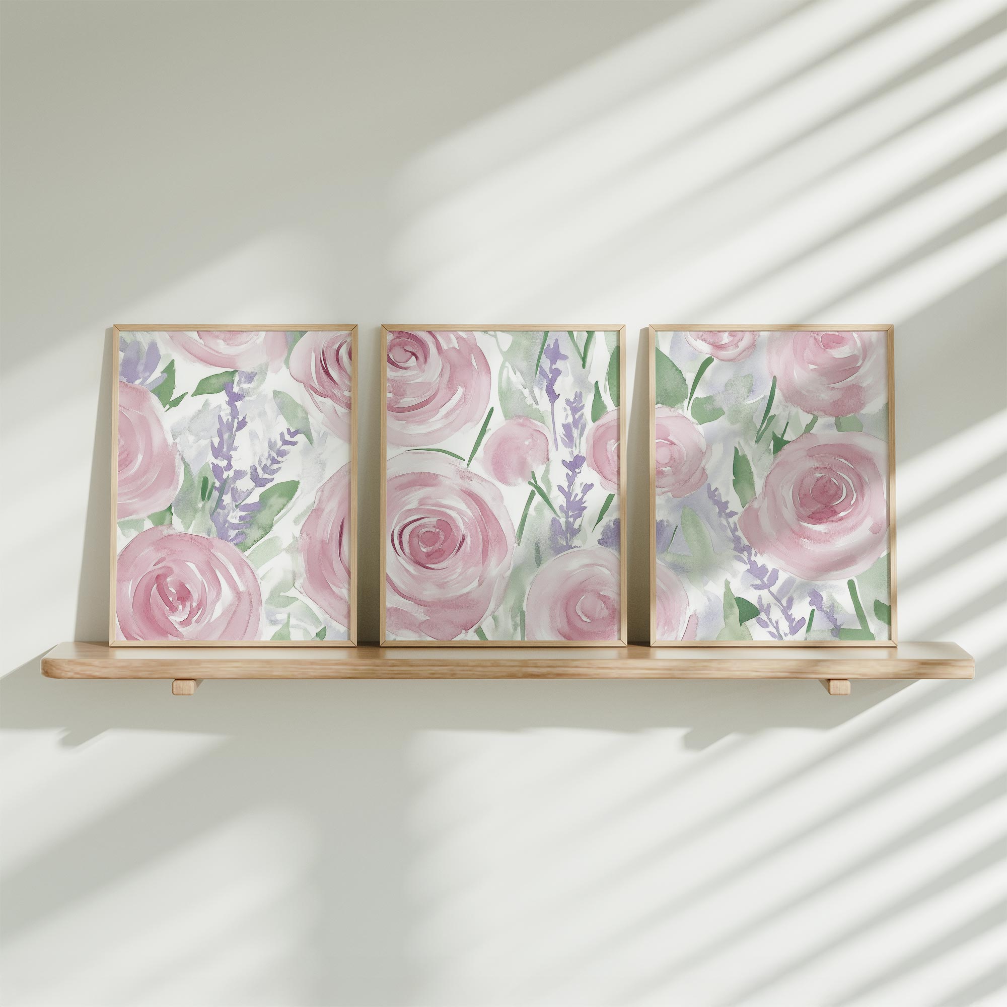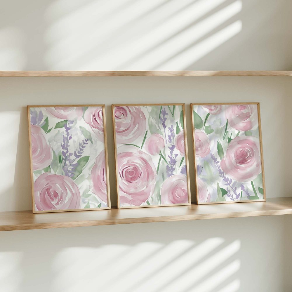 Terug naar collectie / Kinderkamer posters / Bloemen posters / Zacht Roze Rozen en Lavendel – Speelse Waterverf Wanddecoratie