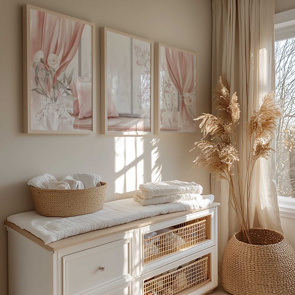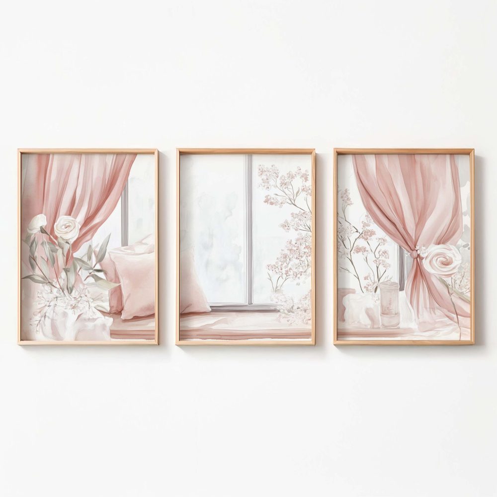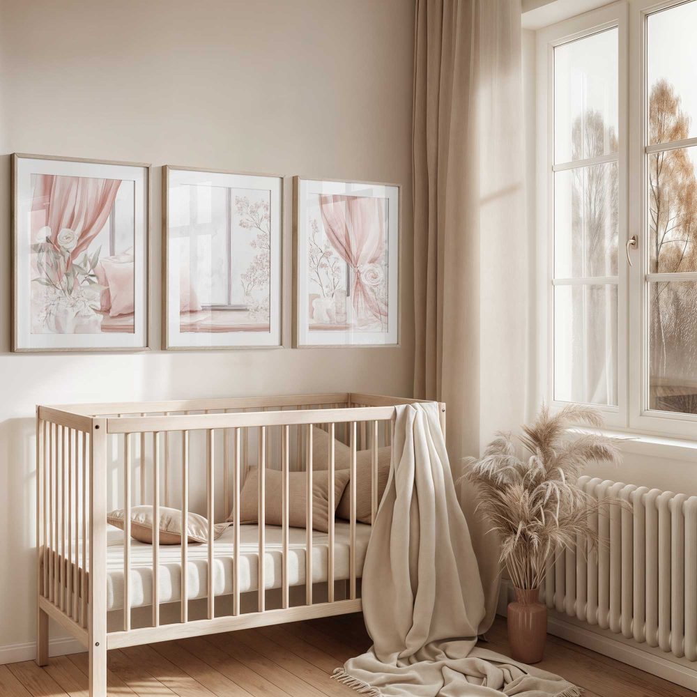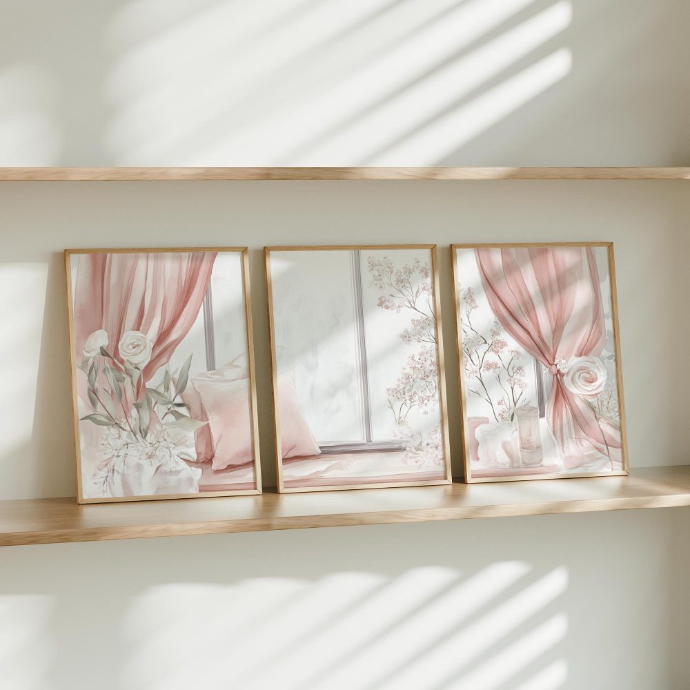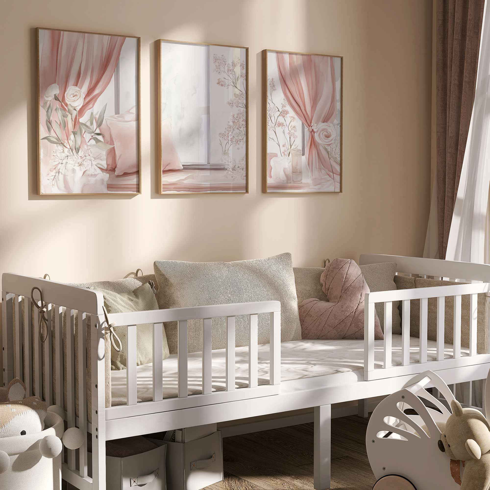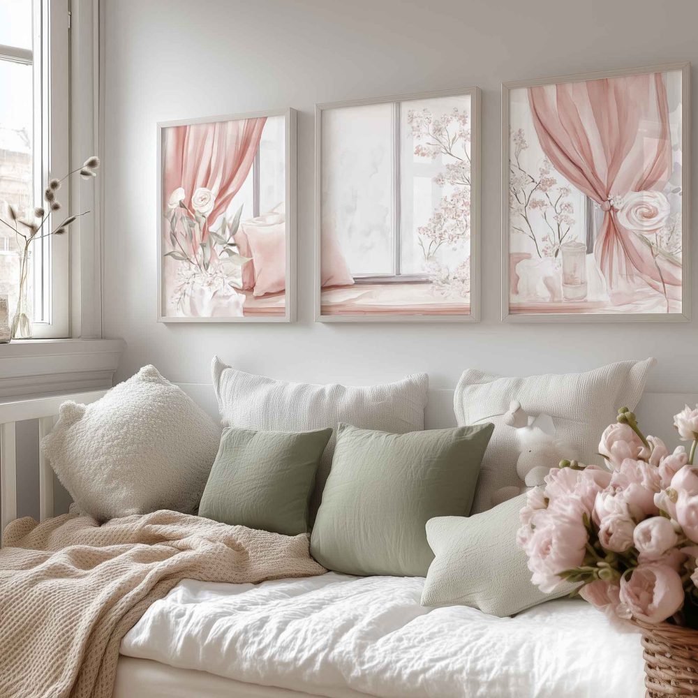 Terug naar collectie / Kinderkamer posters / Bloemen posters / Zacht Roze Sfeer: Bloemen en Kaarsen aan het Raam
