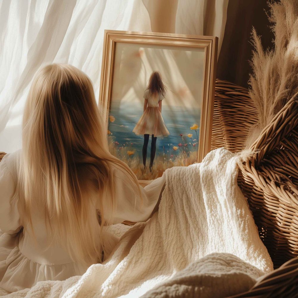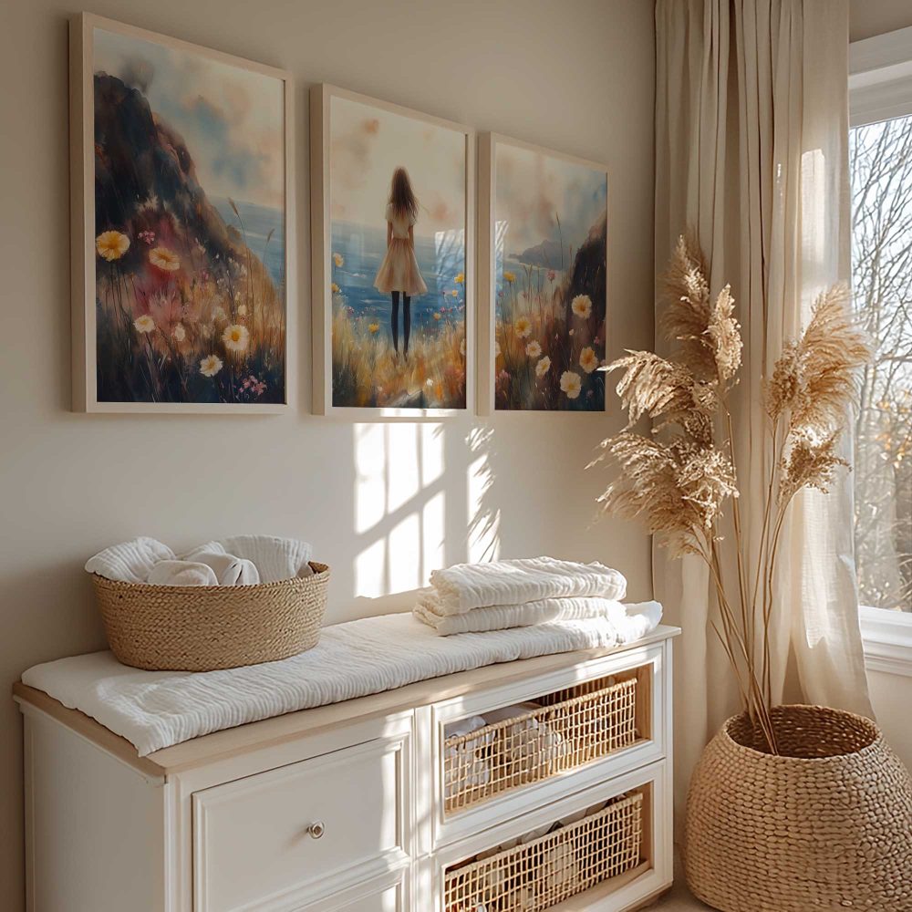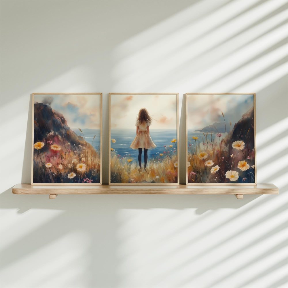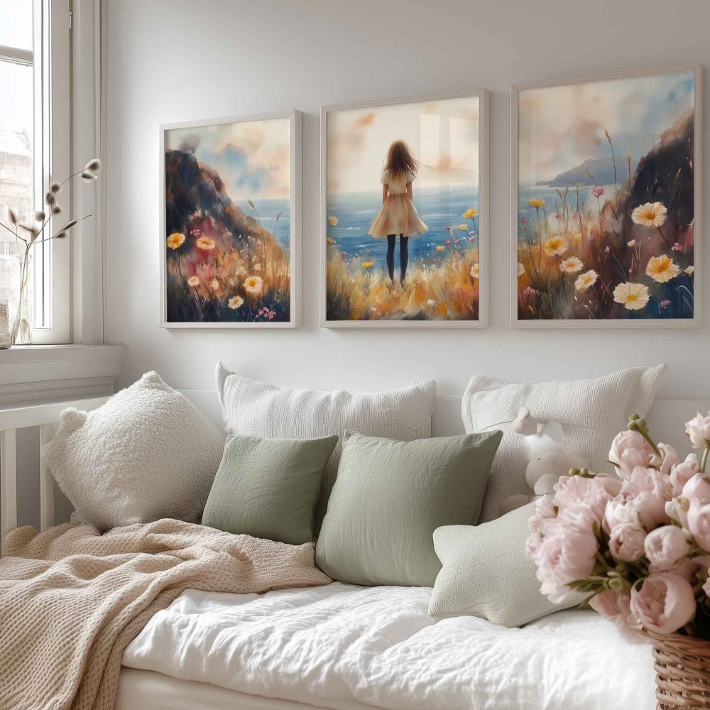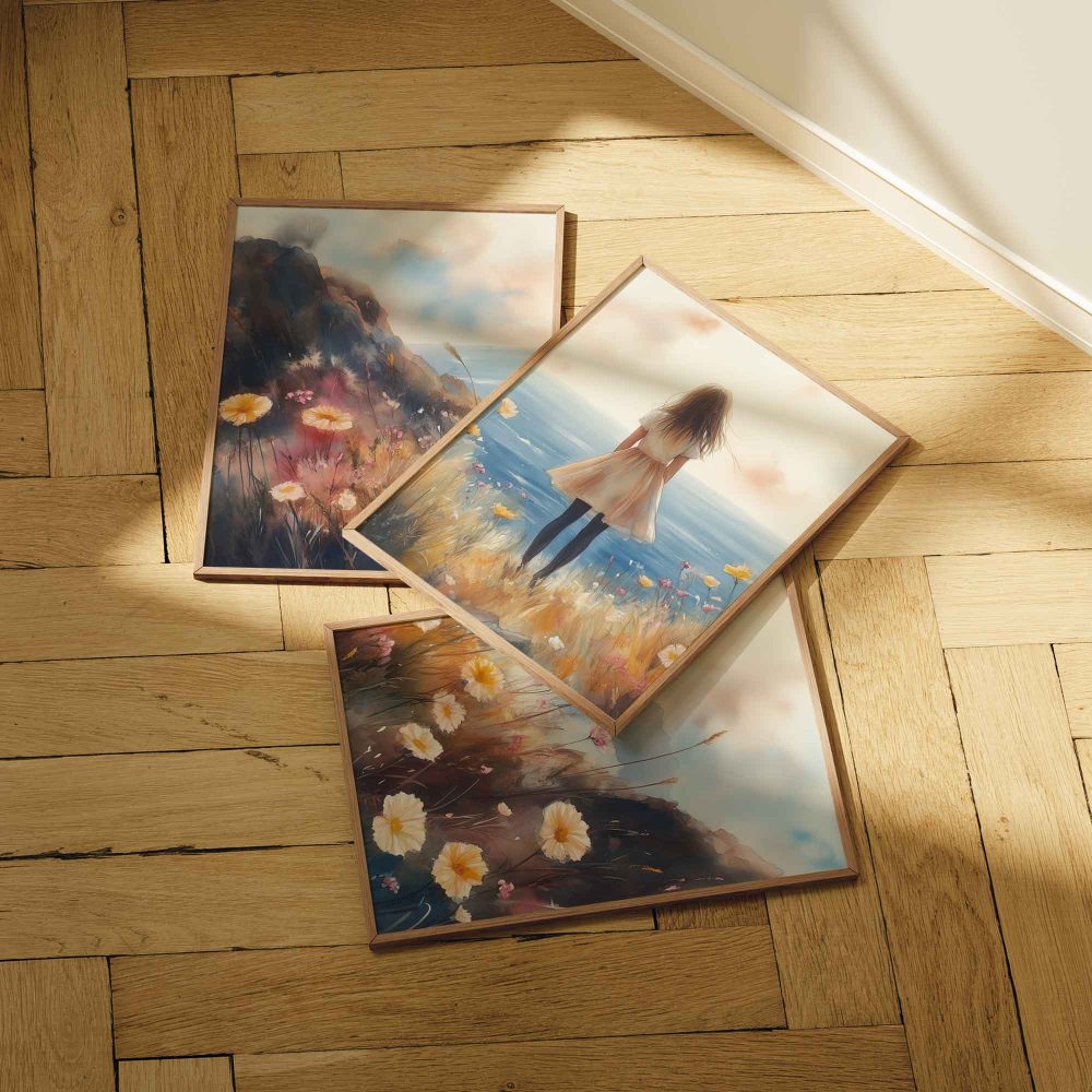 Terug naar collectie / Uncategorized / Zachte dromen aan zee: bloemenveld en oceaan