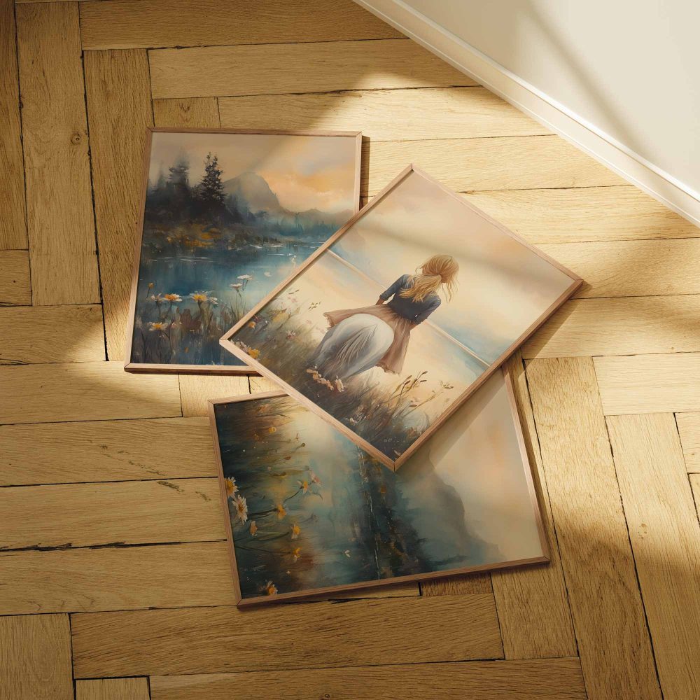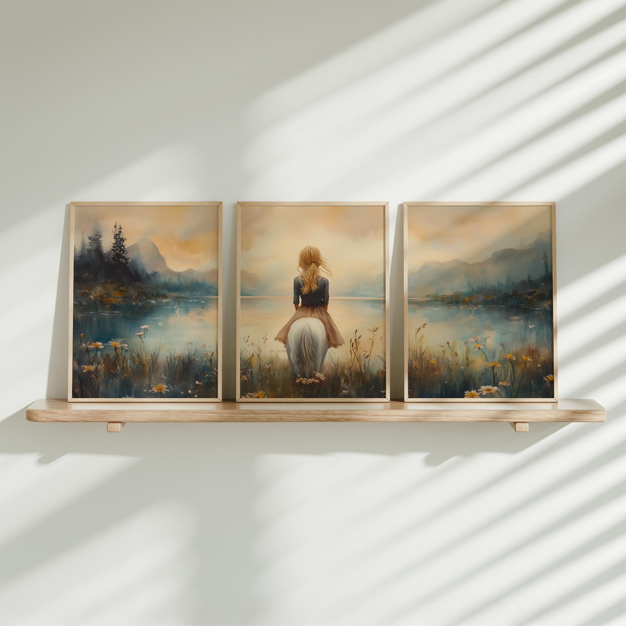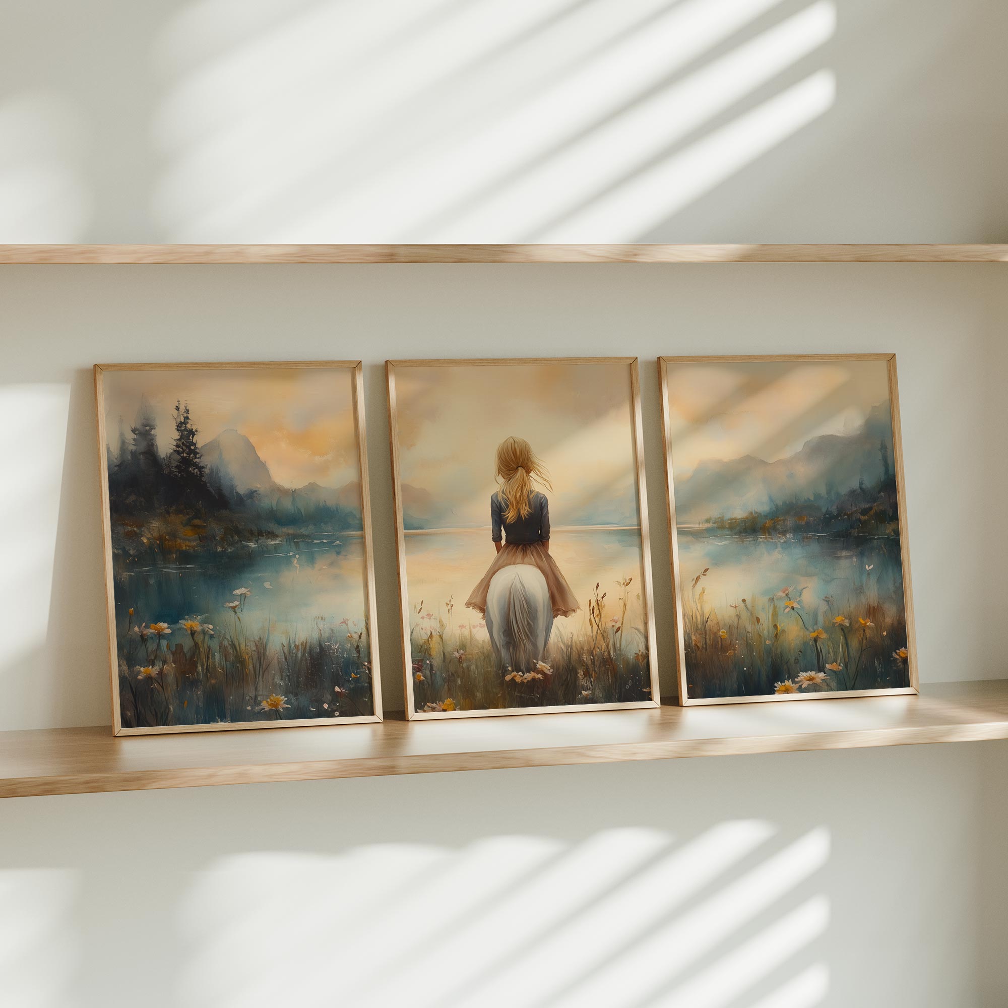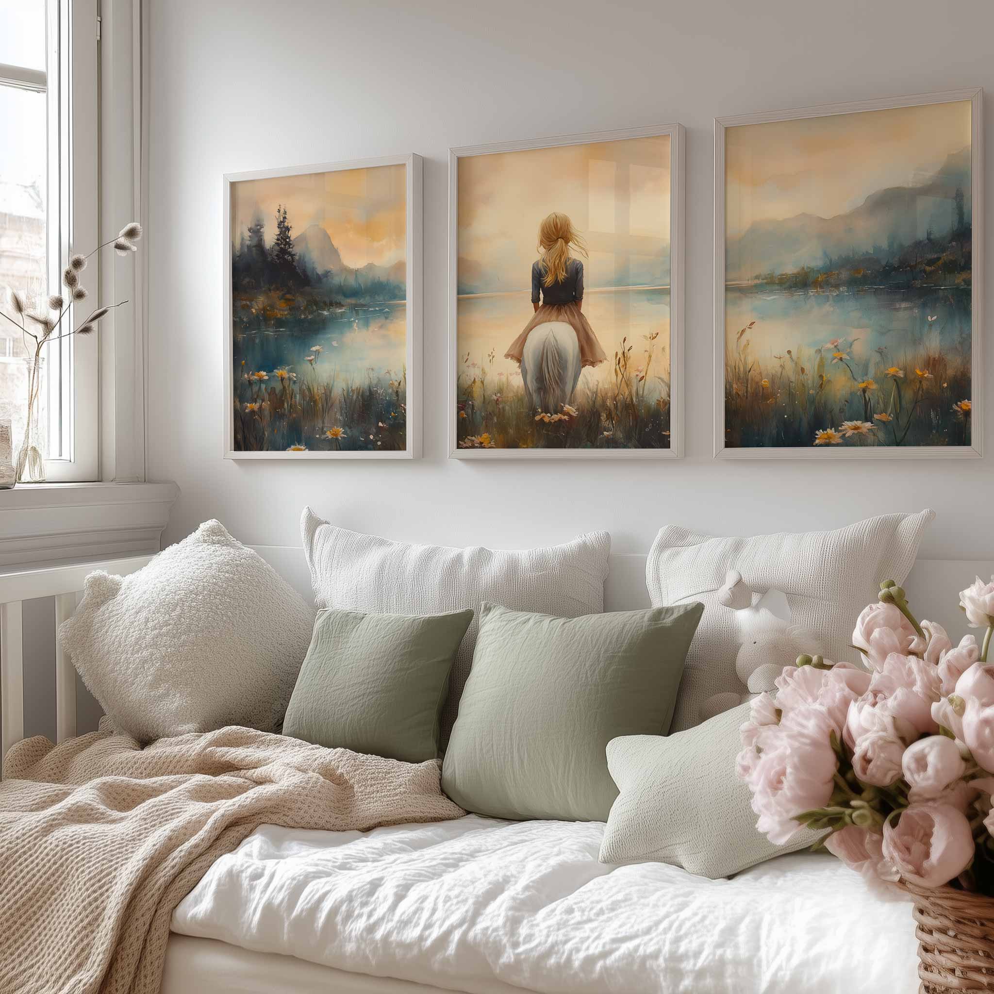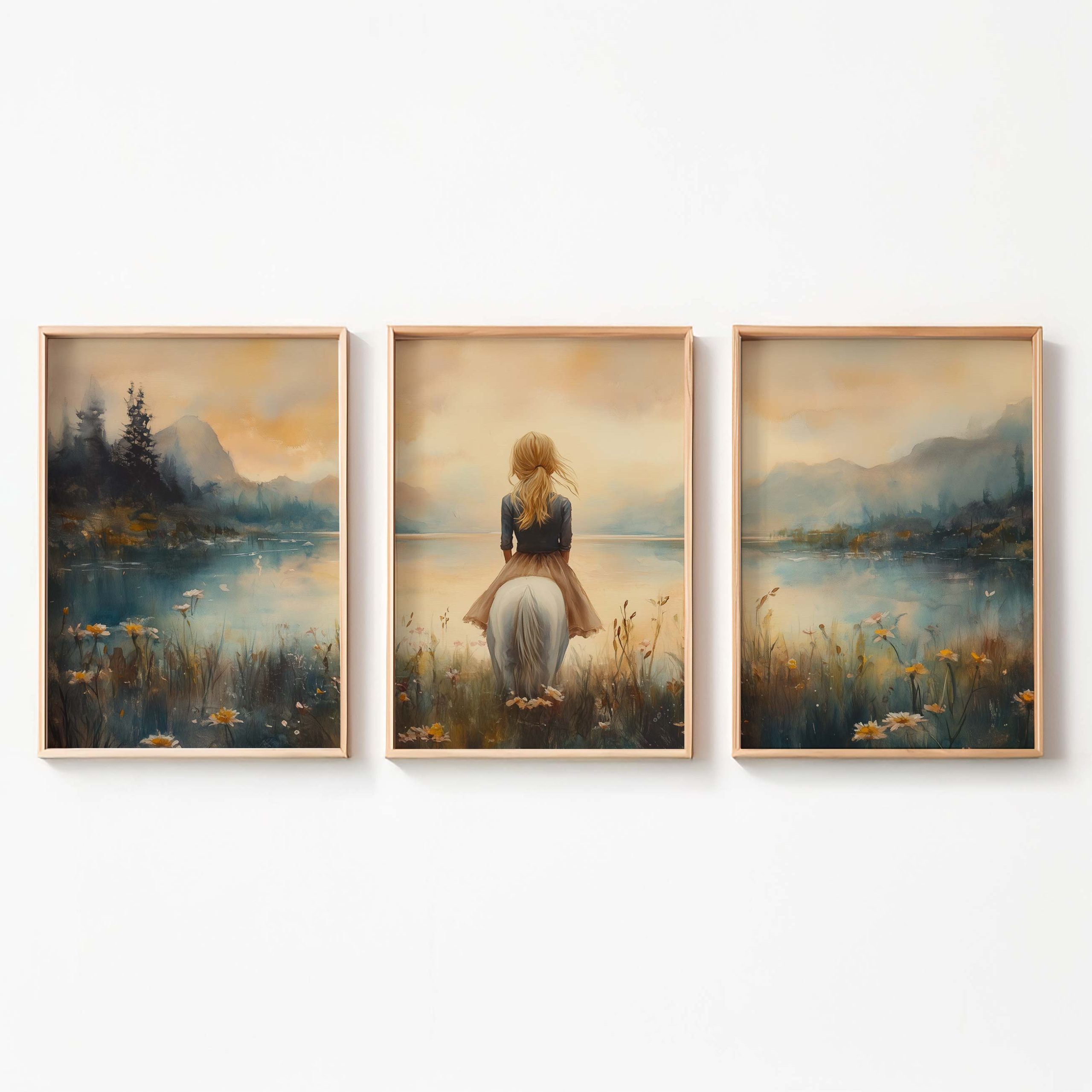 Terug naar collectie / Uncategorized / Zachte Dromen: Vrouw en Paard in Pastel Landschap