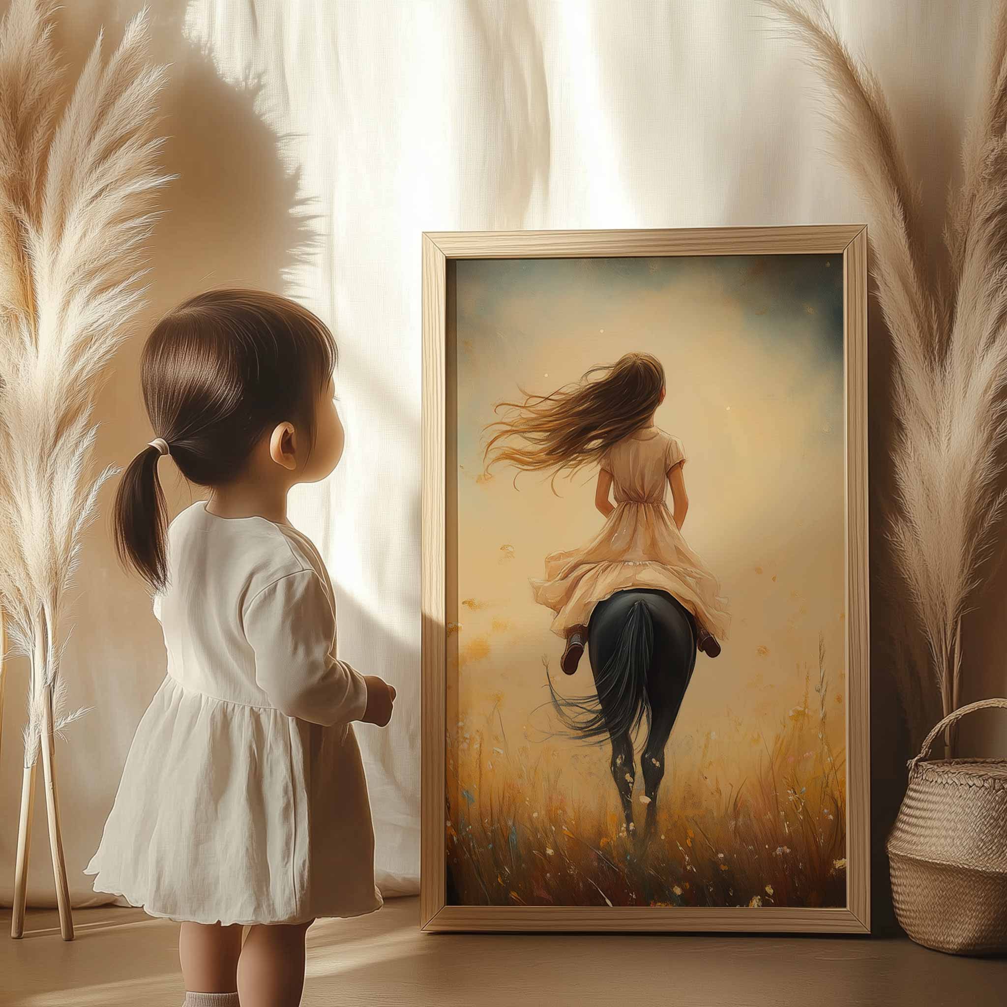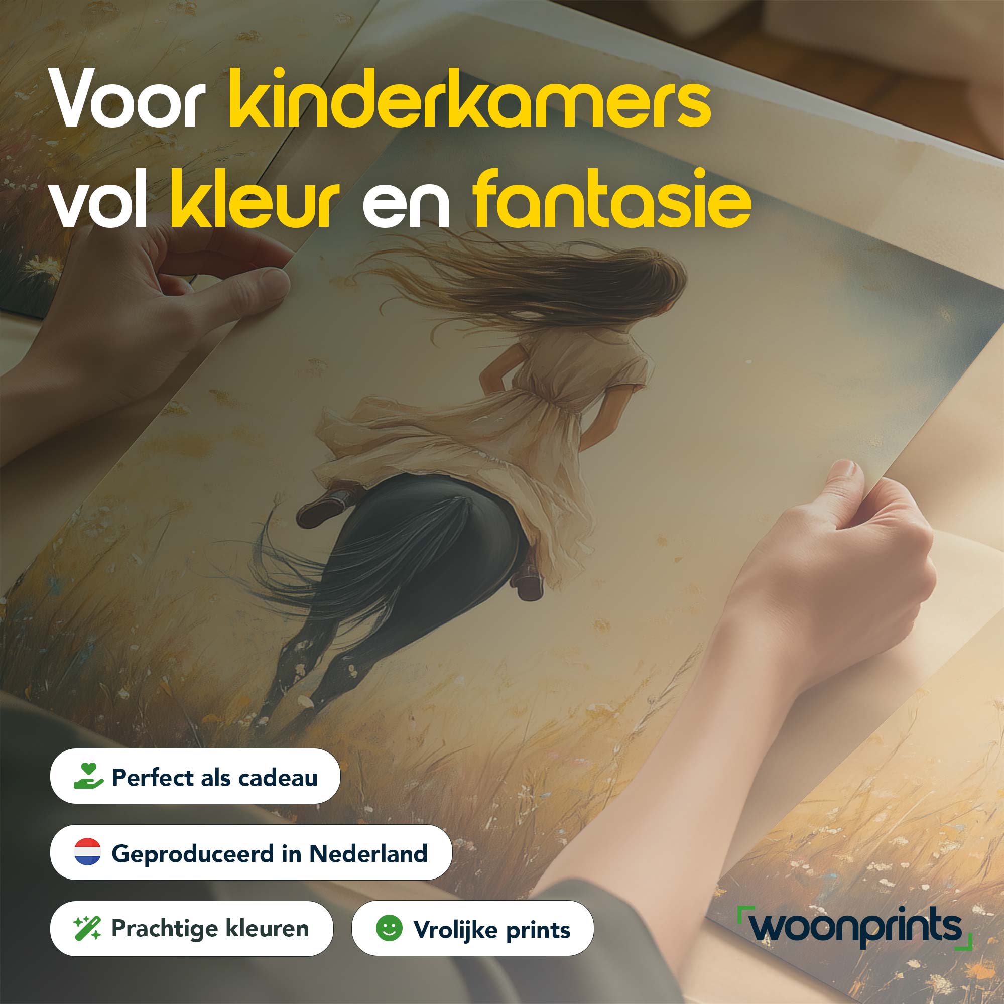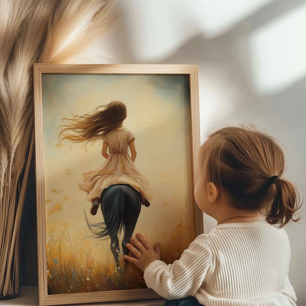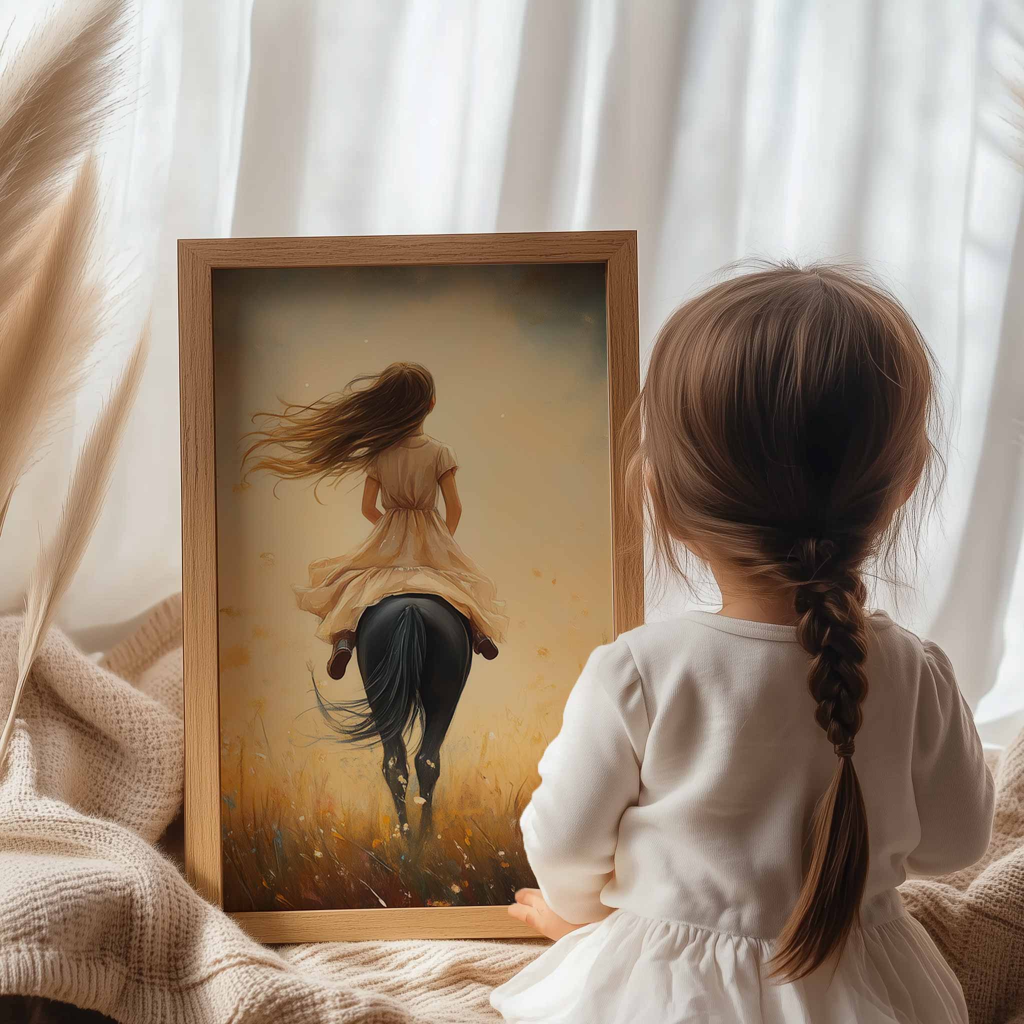 Terug naar collectie / Uncategorized / Zachte dromen: Vrouw te paard in bloemenveld
