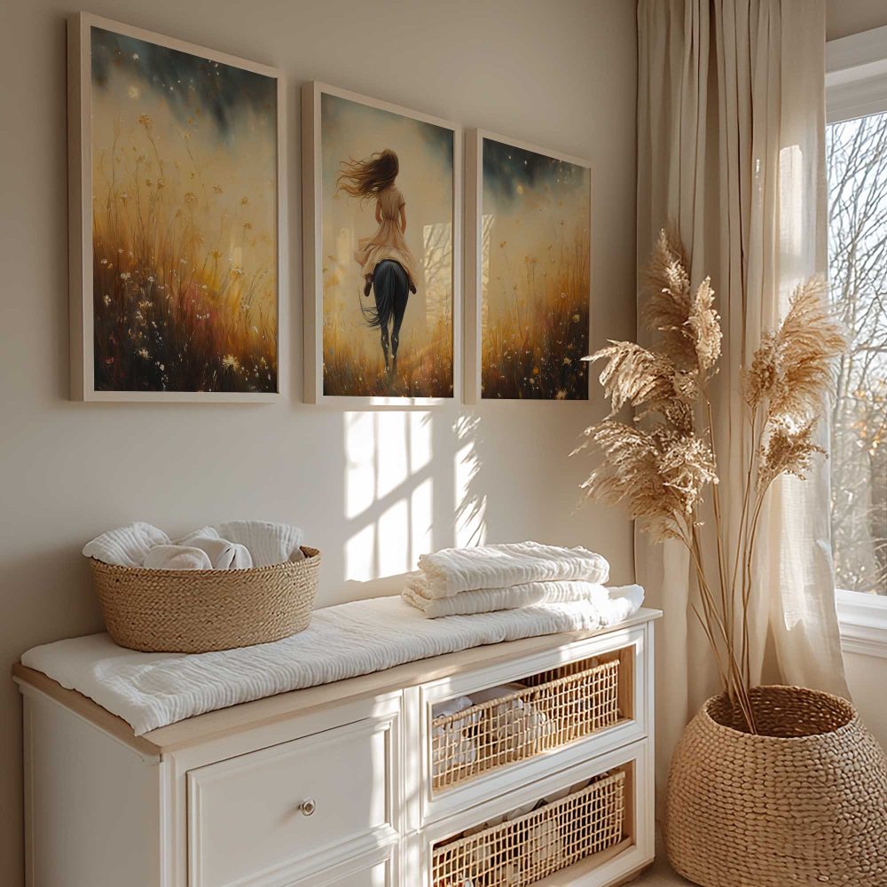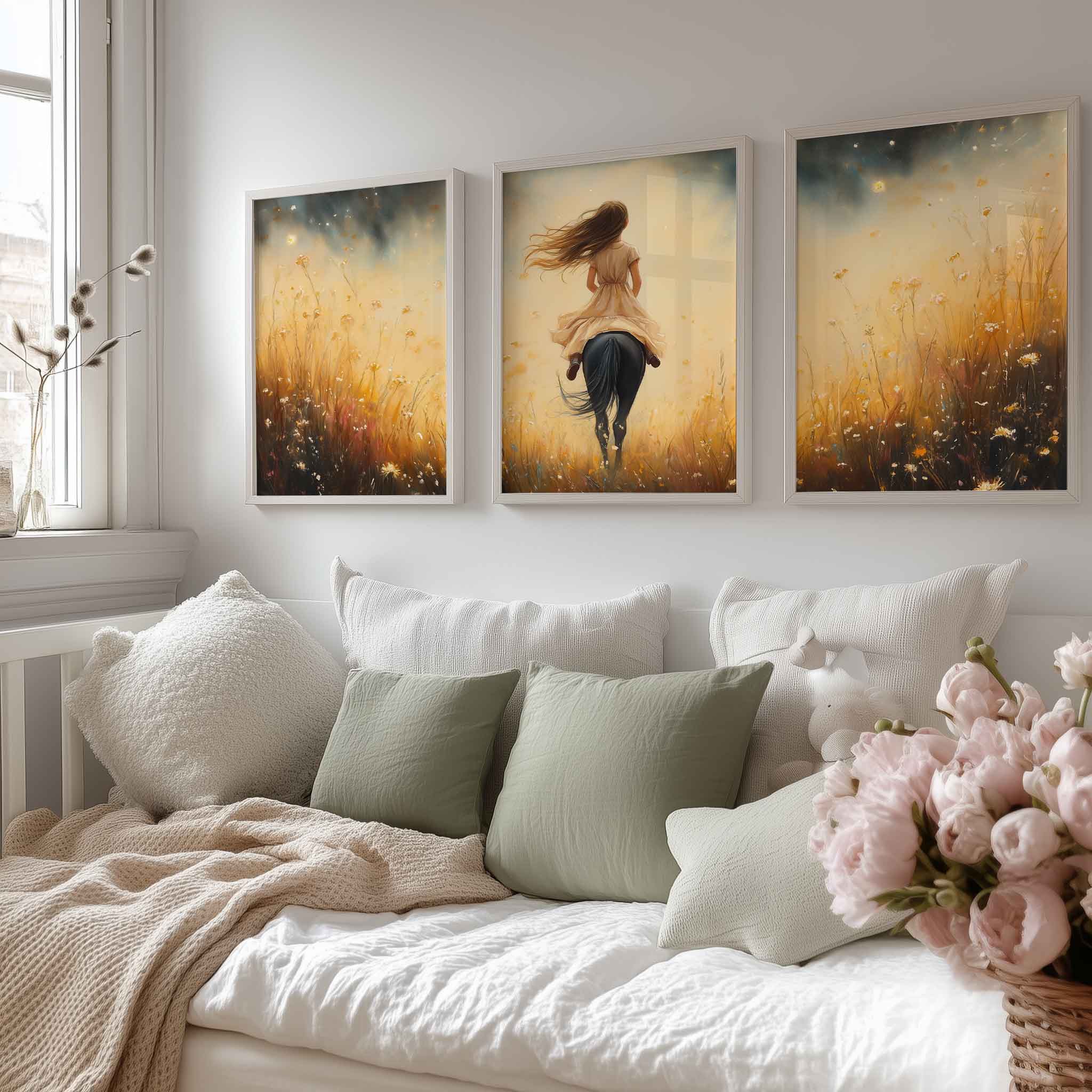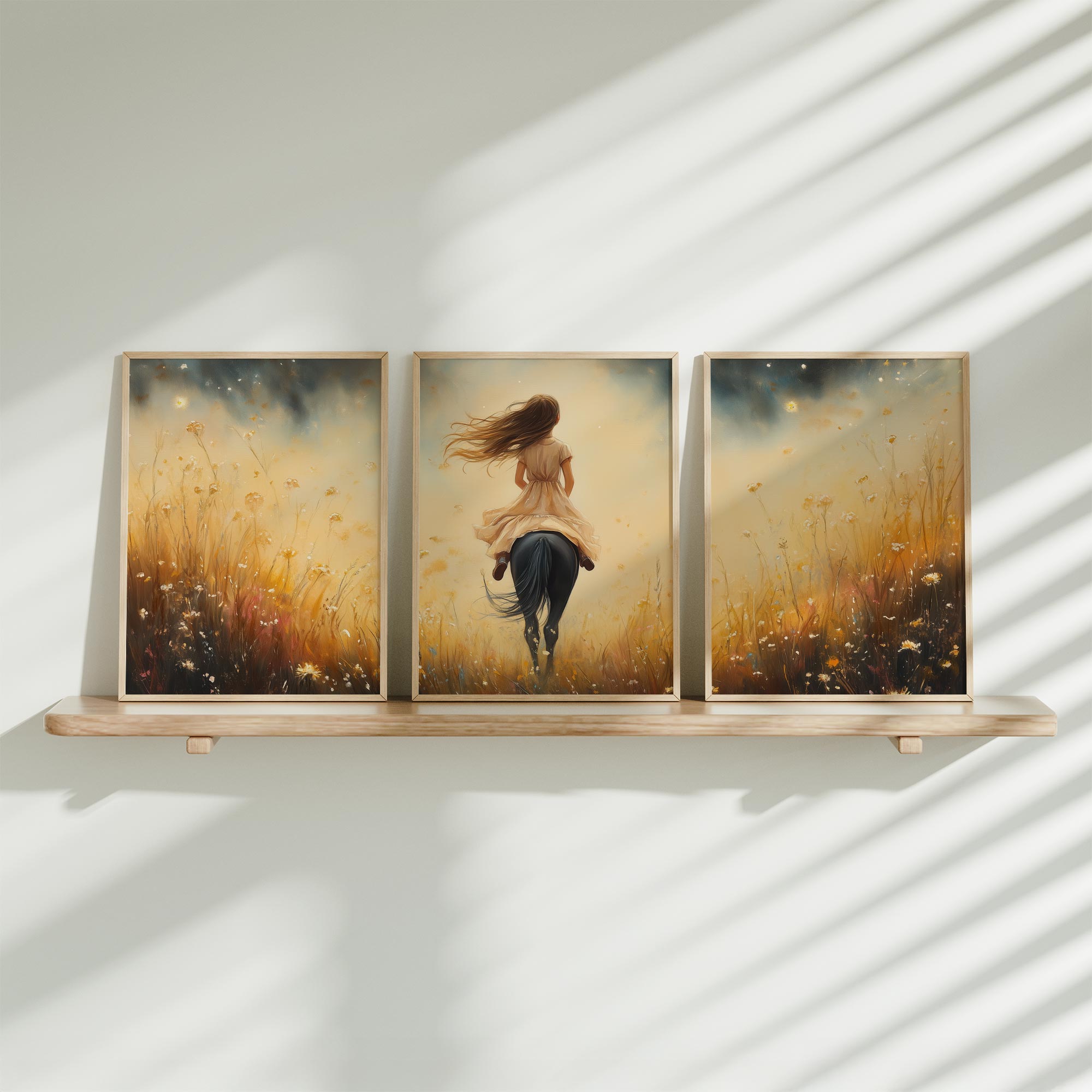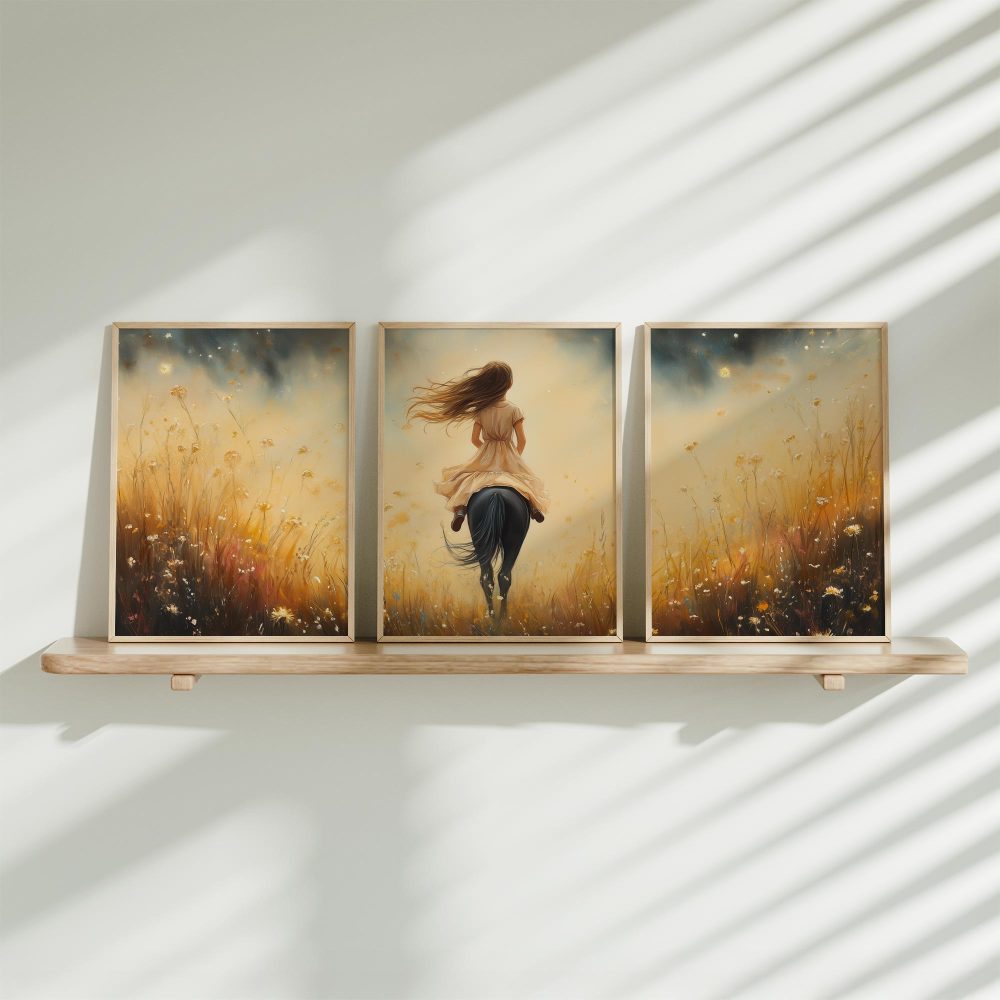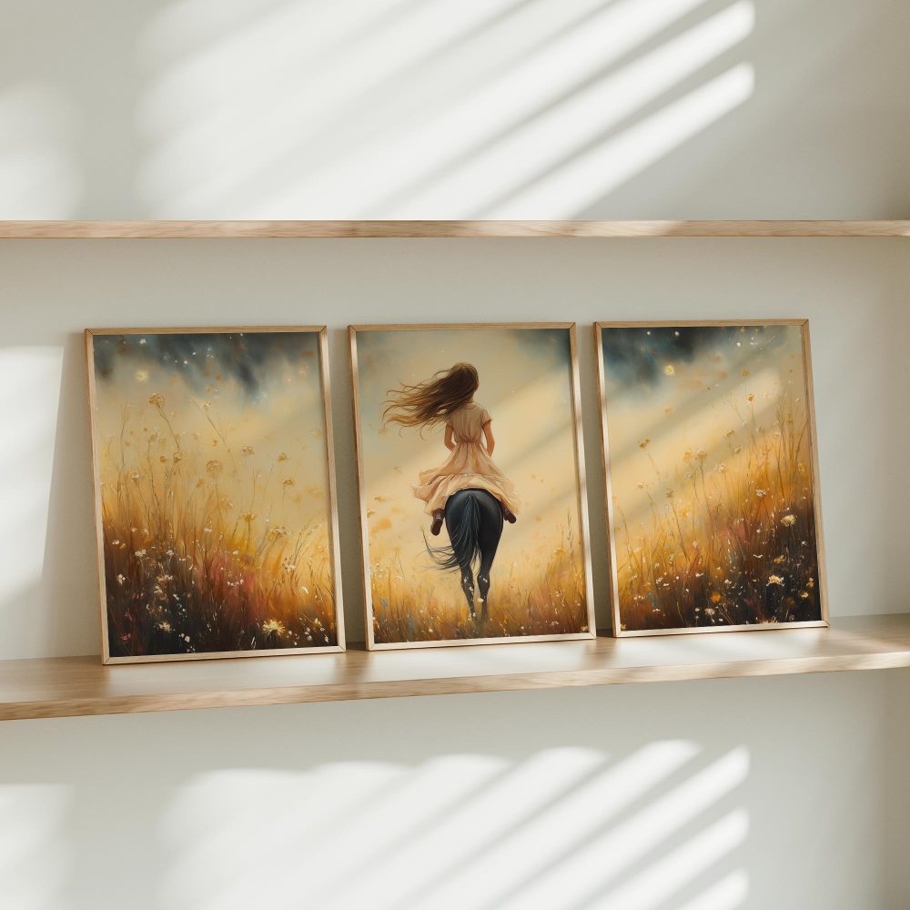 Terug naar collectie / Uncategorized / Zachte dromen: Vrouw te paard in bloemenveld