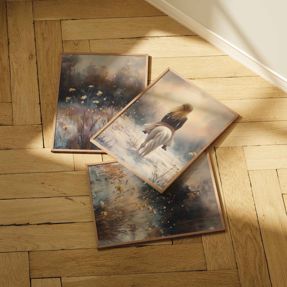 Terug naar collectie / Uncategorized / Zachte Droomrit door een Besneeuwd Bloemenveld