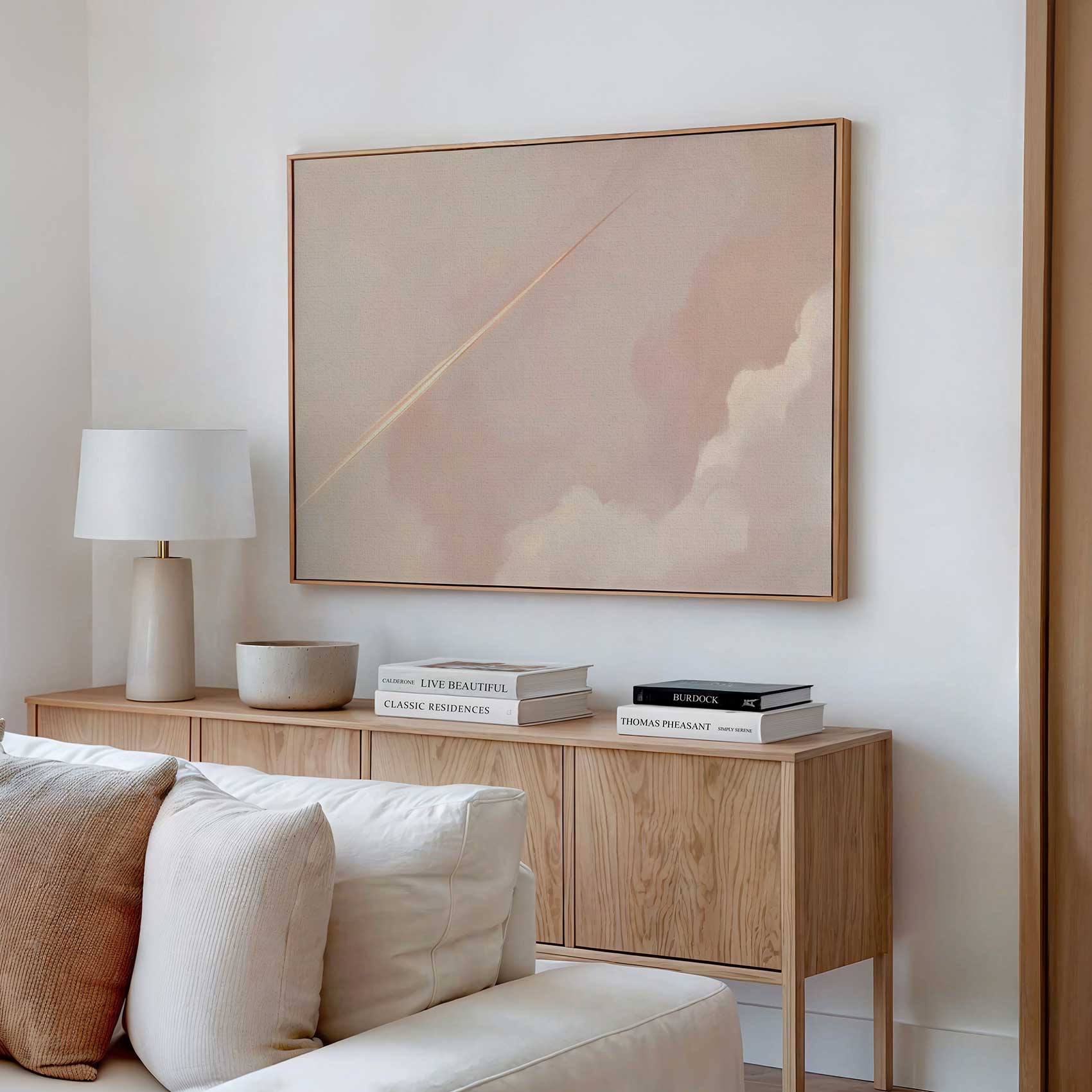 Terug naar collectie / Schilderijen / Abstract Schilderij / Zachte pastel wolkenlucht