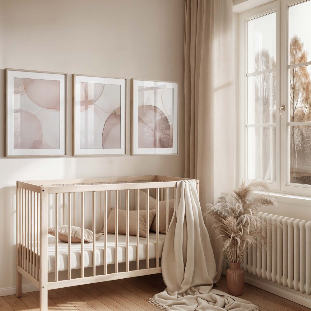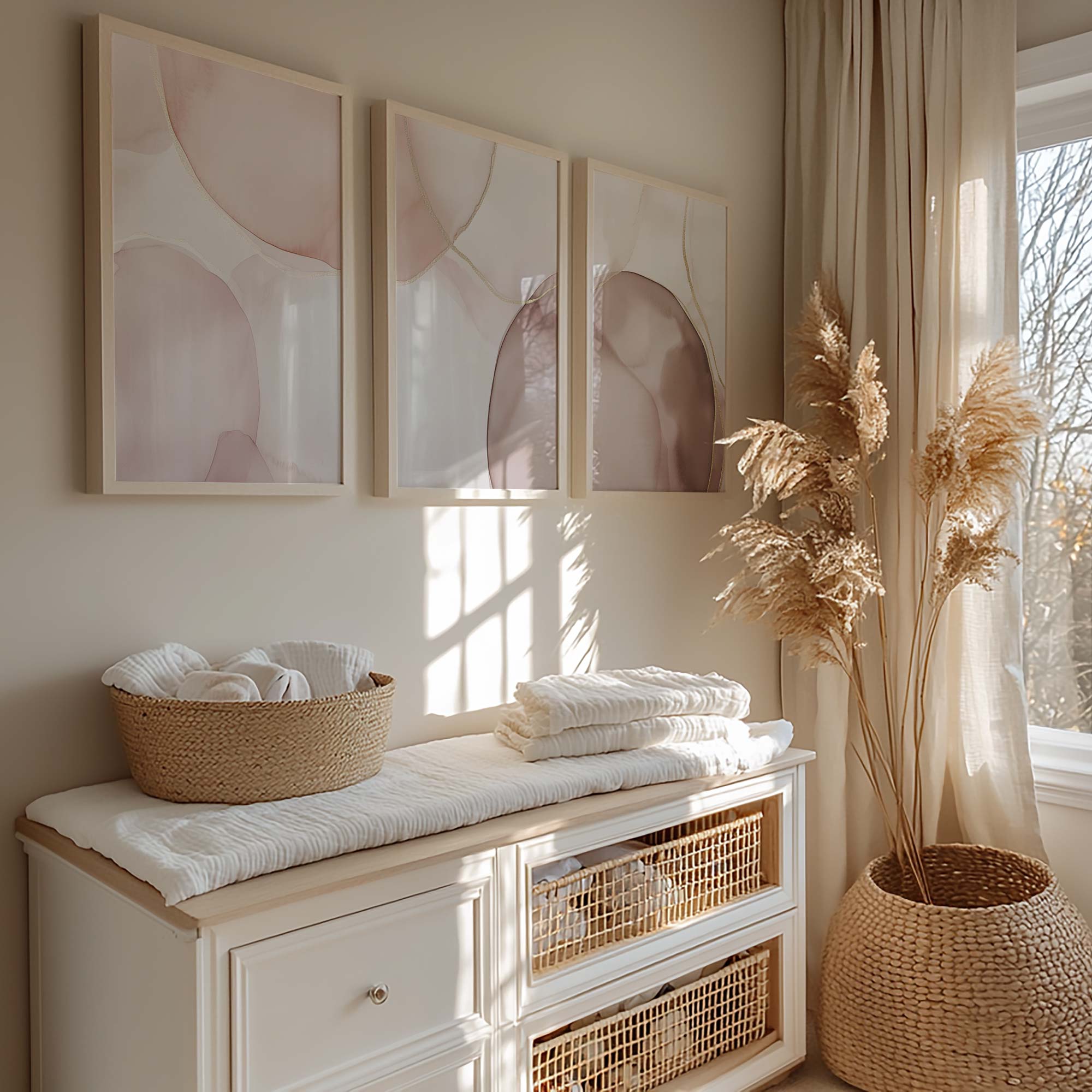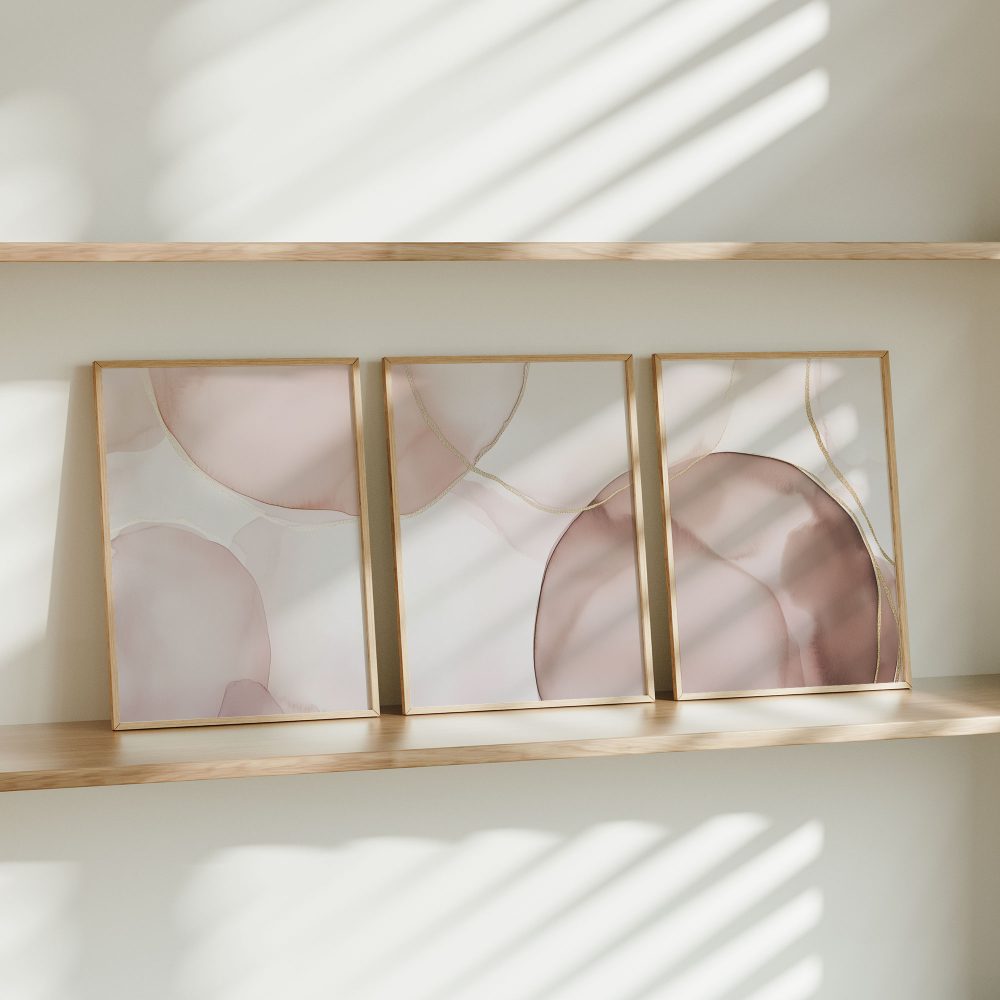 Terug naar collectie / Kinderkamer posters / Zachte Roze Abstractie – Speelse Vormen en Rustige Sfeer