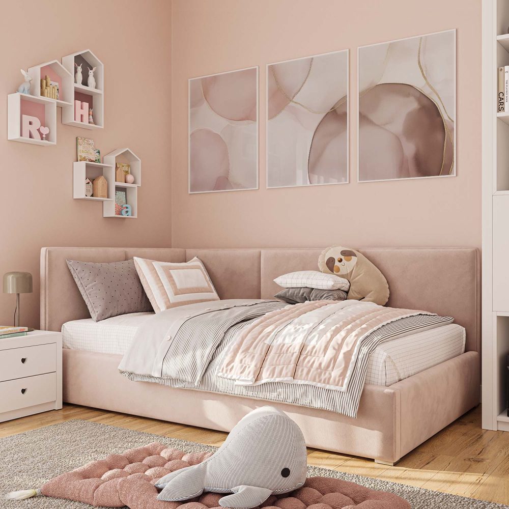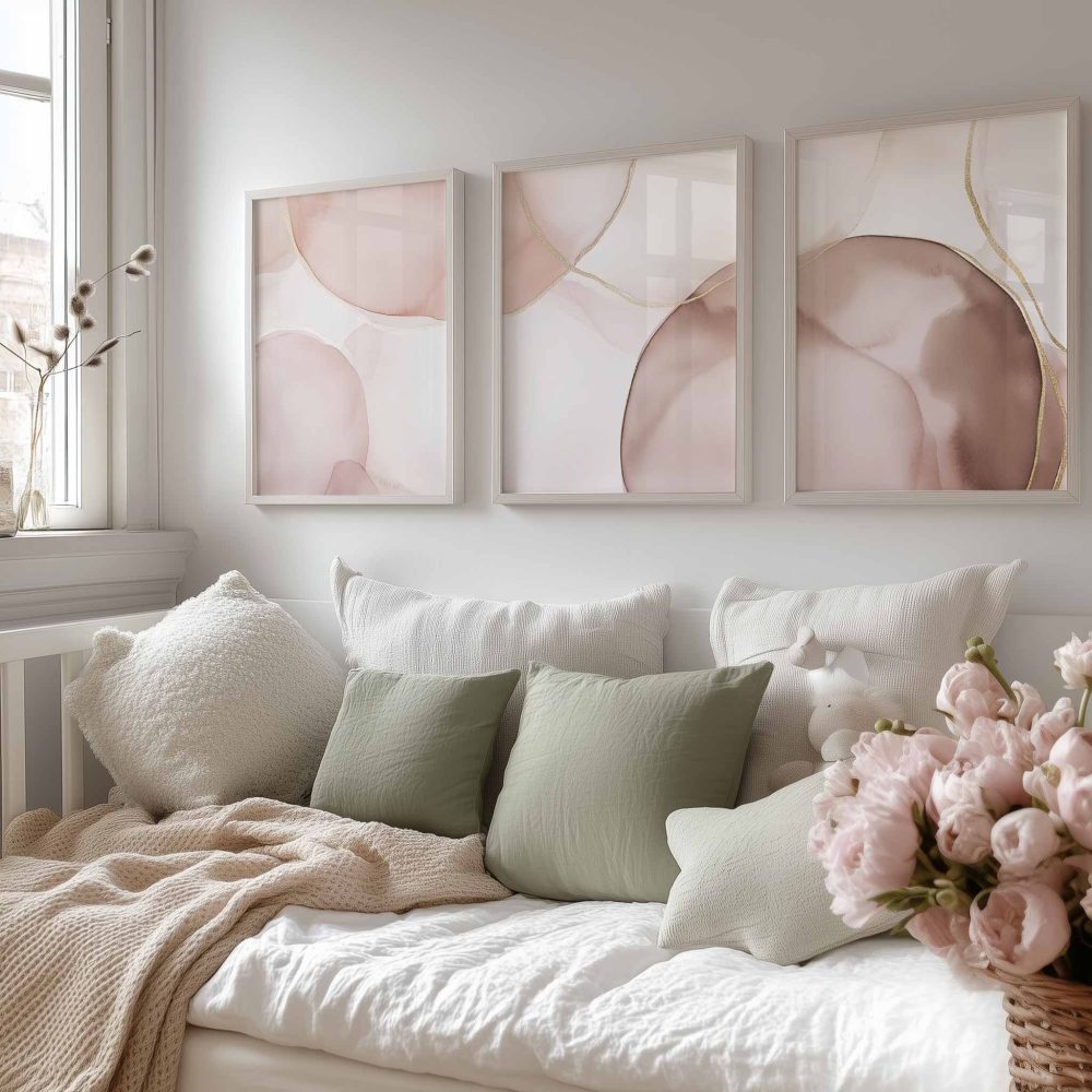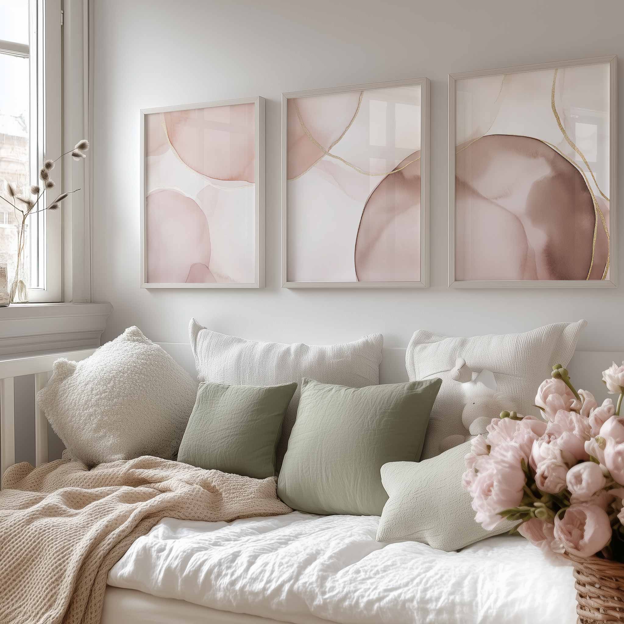Terug naar collectie / Kinderkamer posters / Zachte Roze Abstractie – Speelse Vormen en Rustige Sfeer