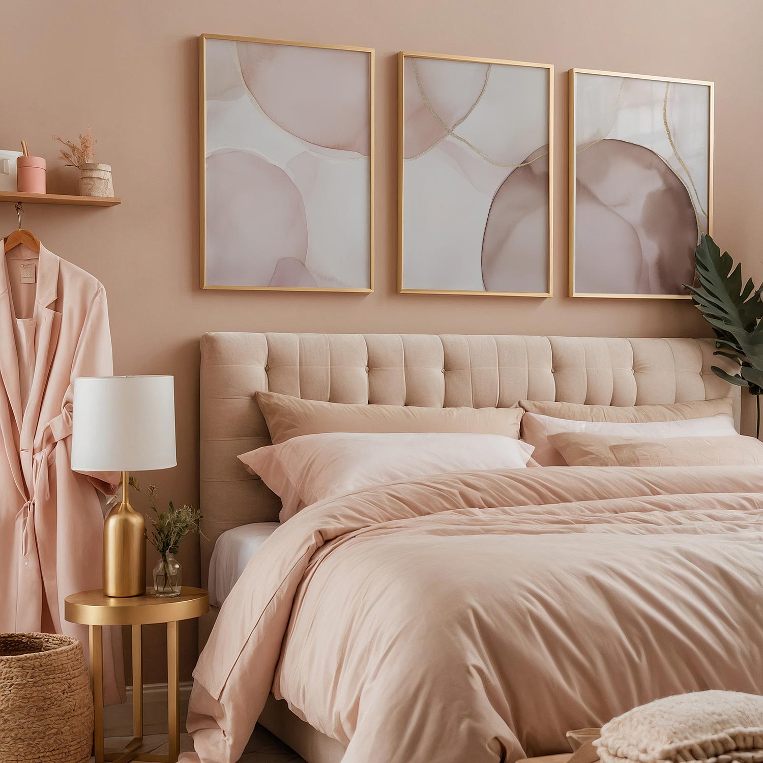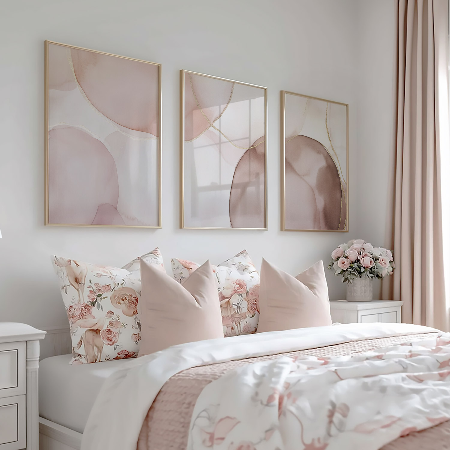 Zachte Roze Abstractie – Speelse Vormen en Rustige Sfeer