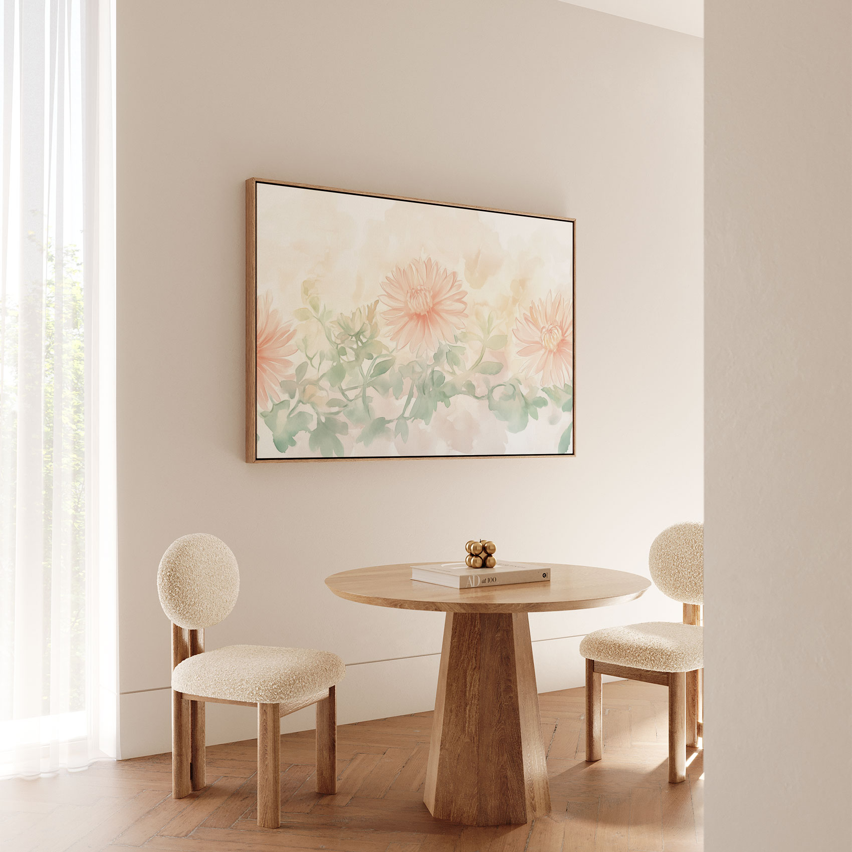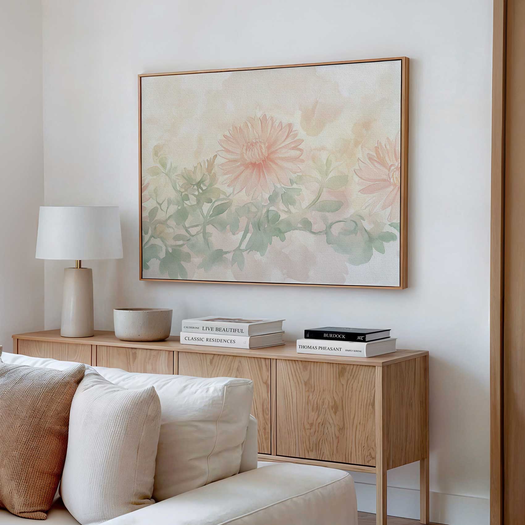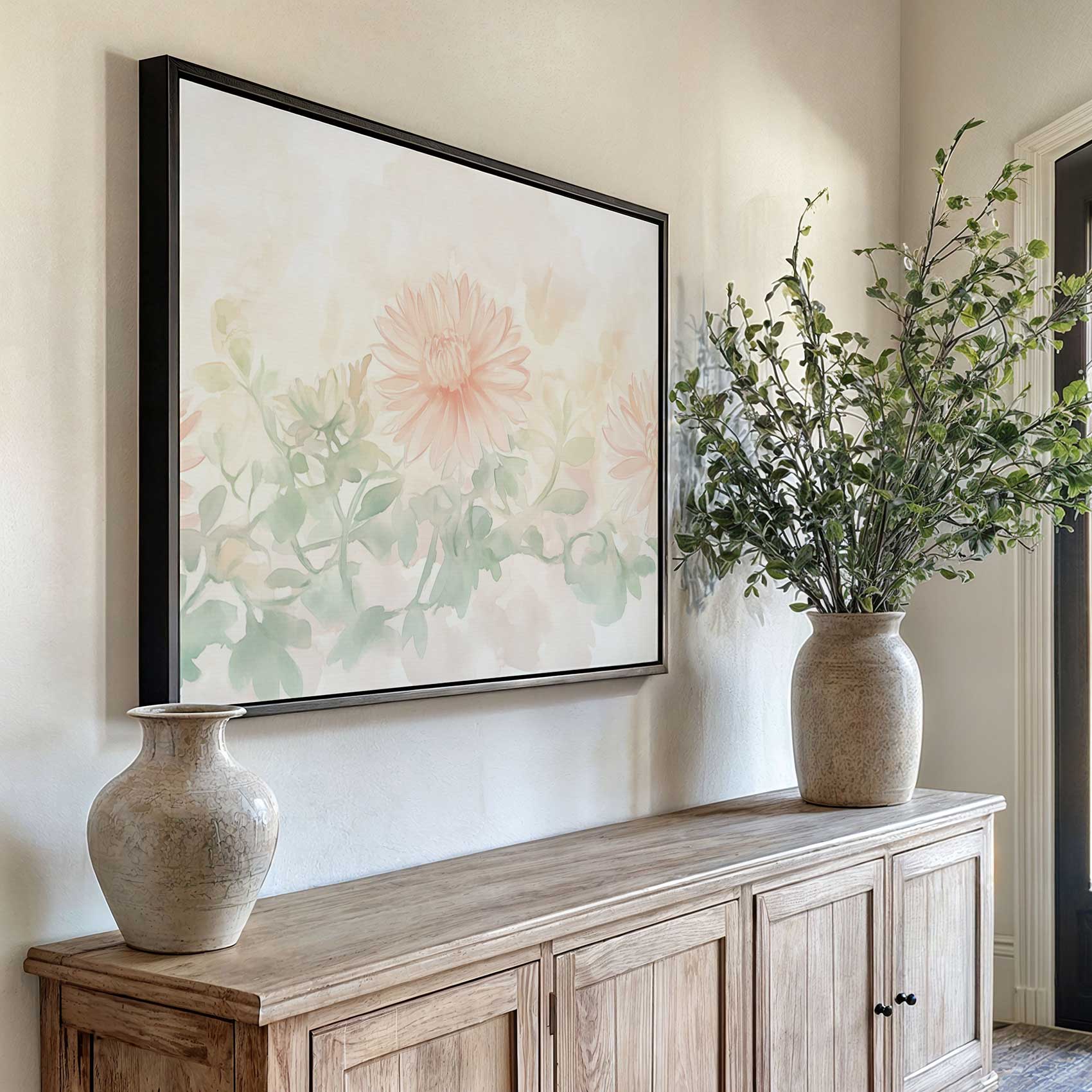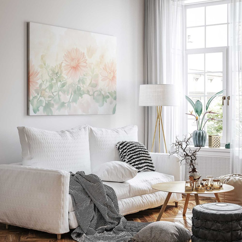 Terug naar collectie / Schilderijen / Bloemen Schilderij / Zachte roze waterverfbloemen
