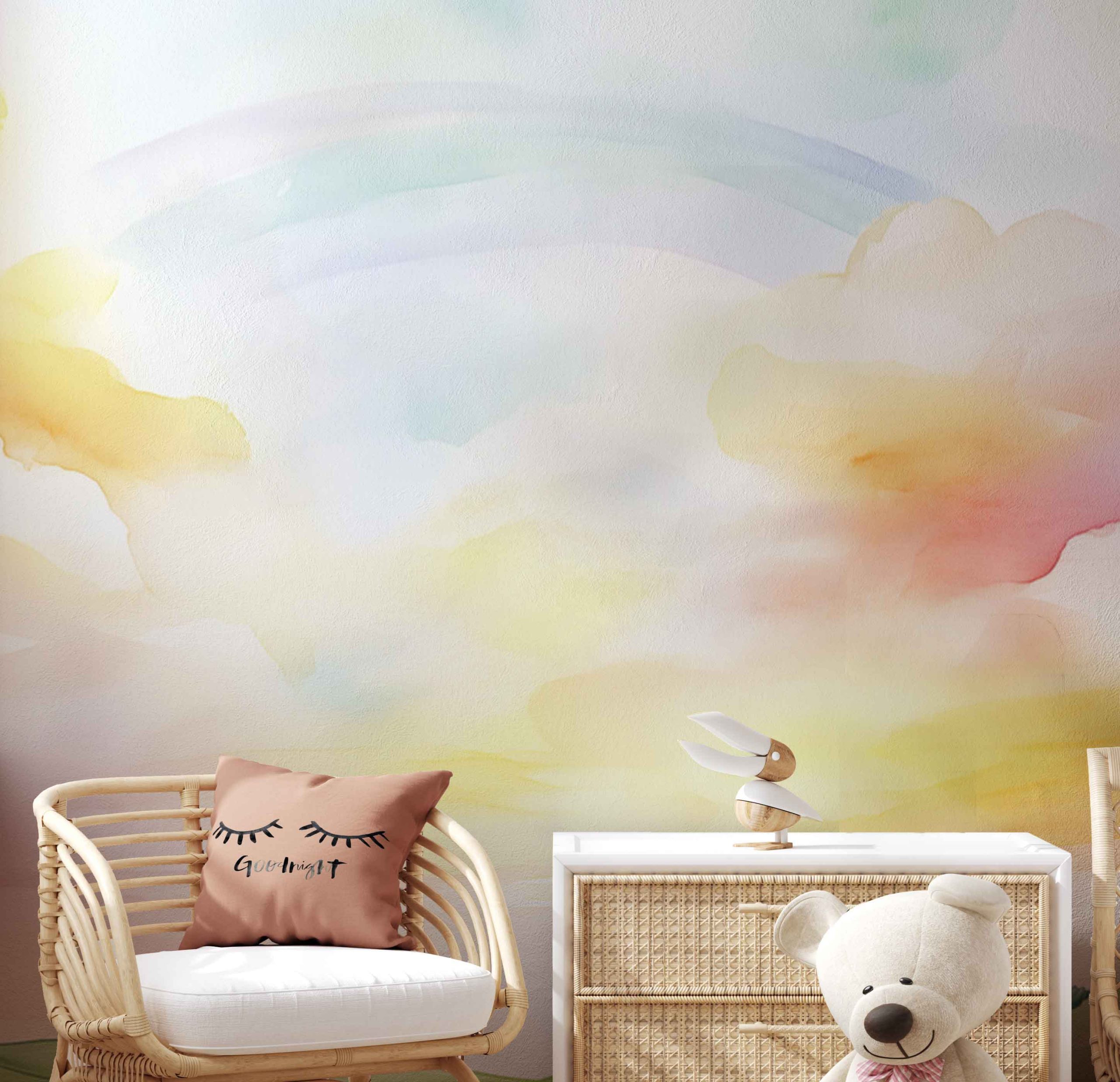 Terug naar collectie / Behang / Kinderkamer behang / Babykamer behang / Zachte watercolor landschapsschilderij behang