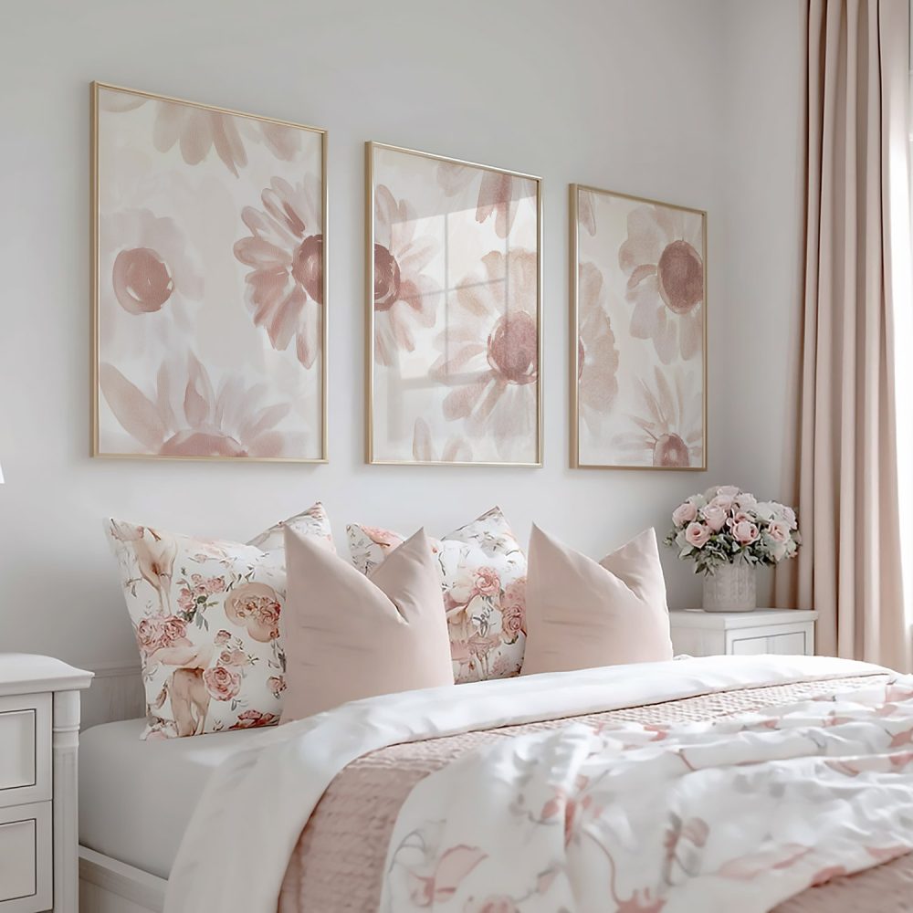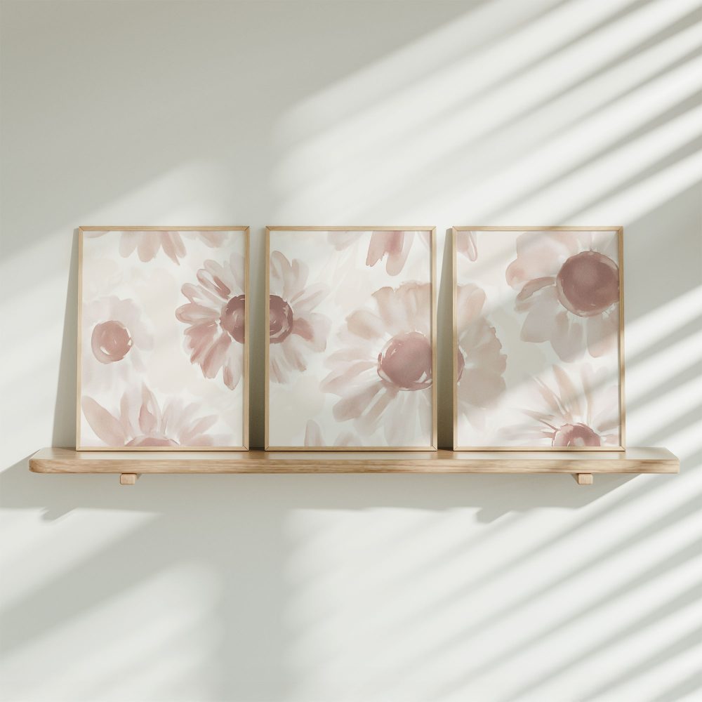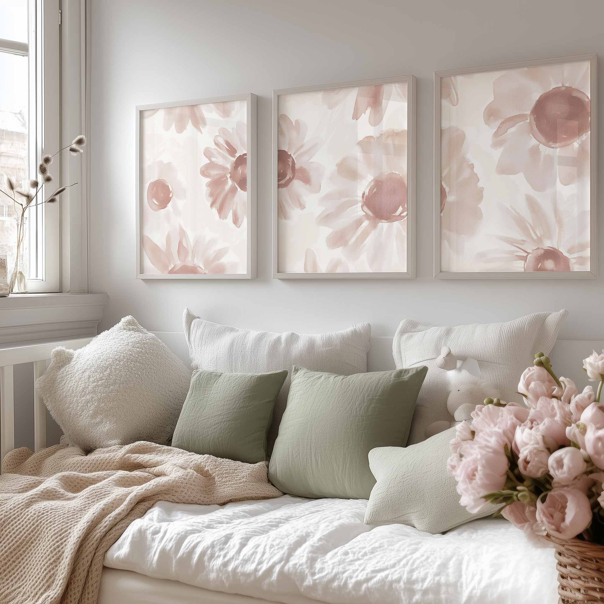 Terug naar collectie / Kinderkamer posters / Bloemen posters / Zachte Watercolor Madeliefjes in Roze en Wit