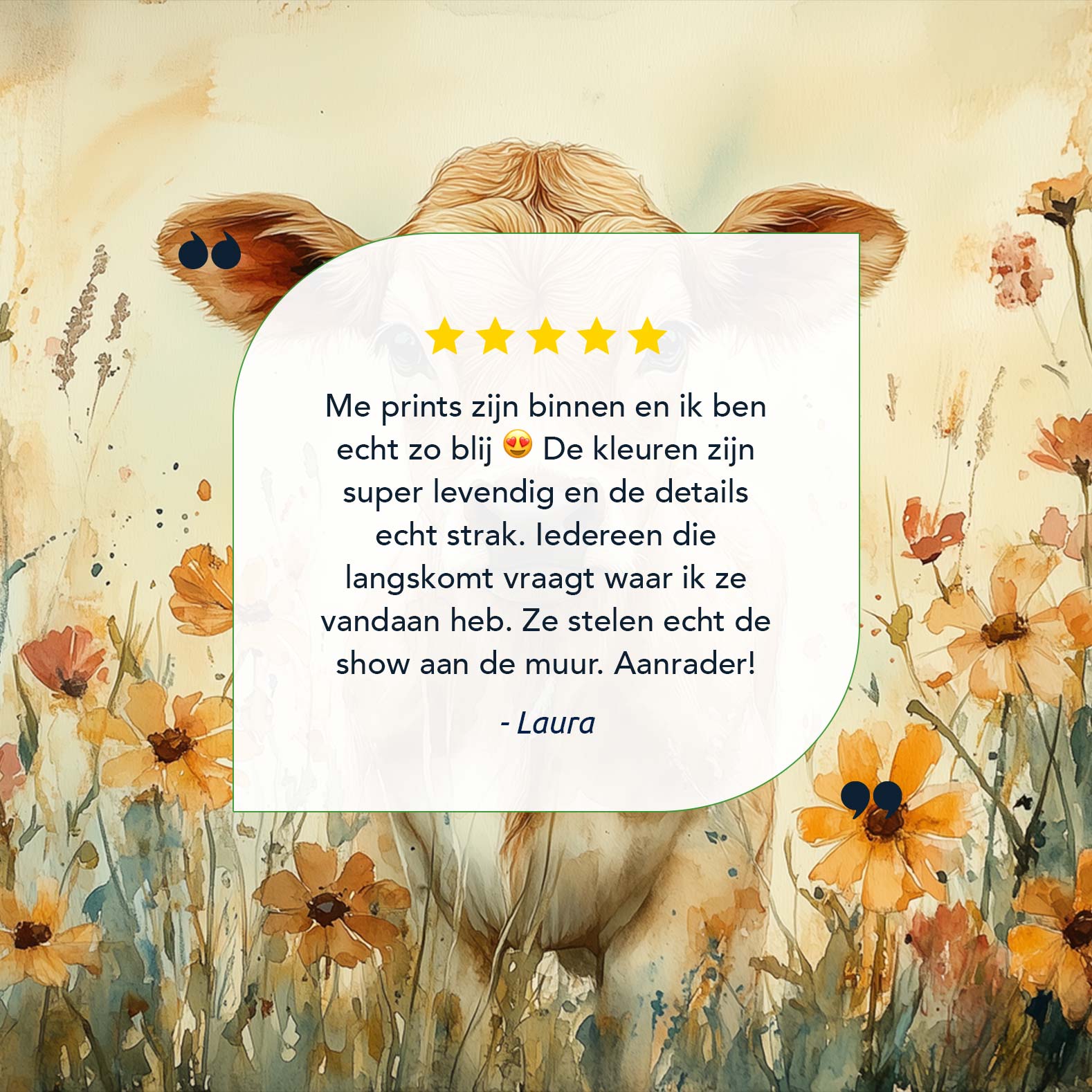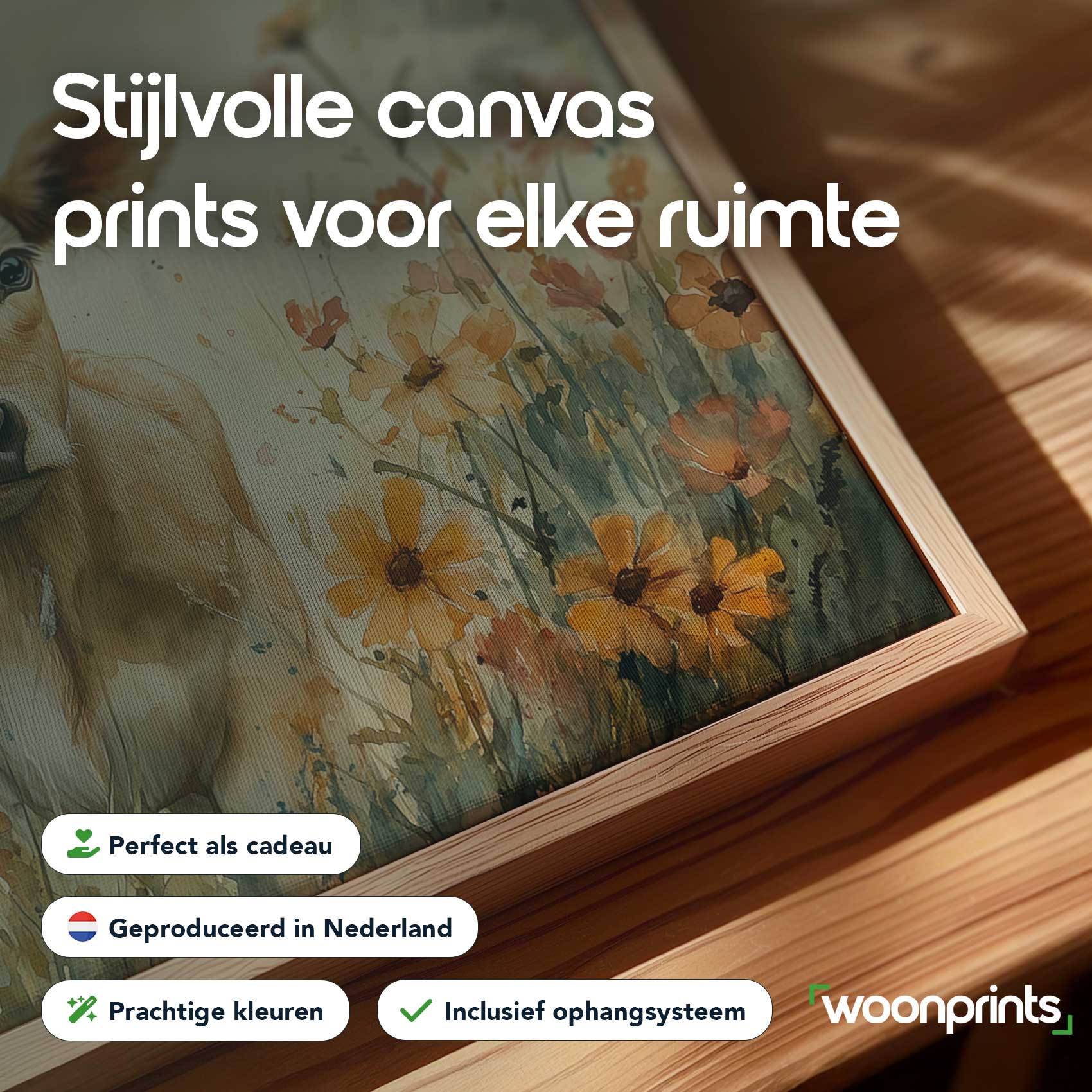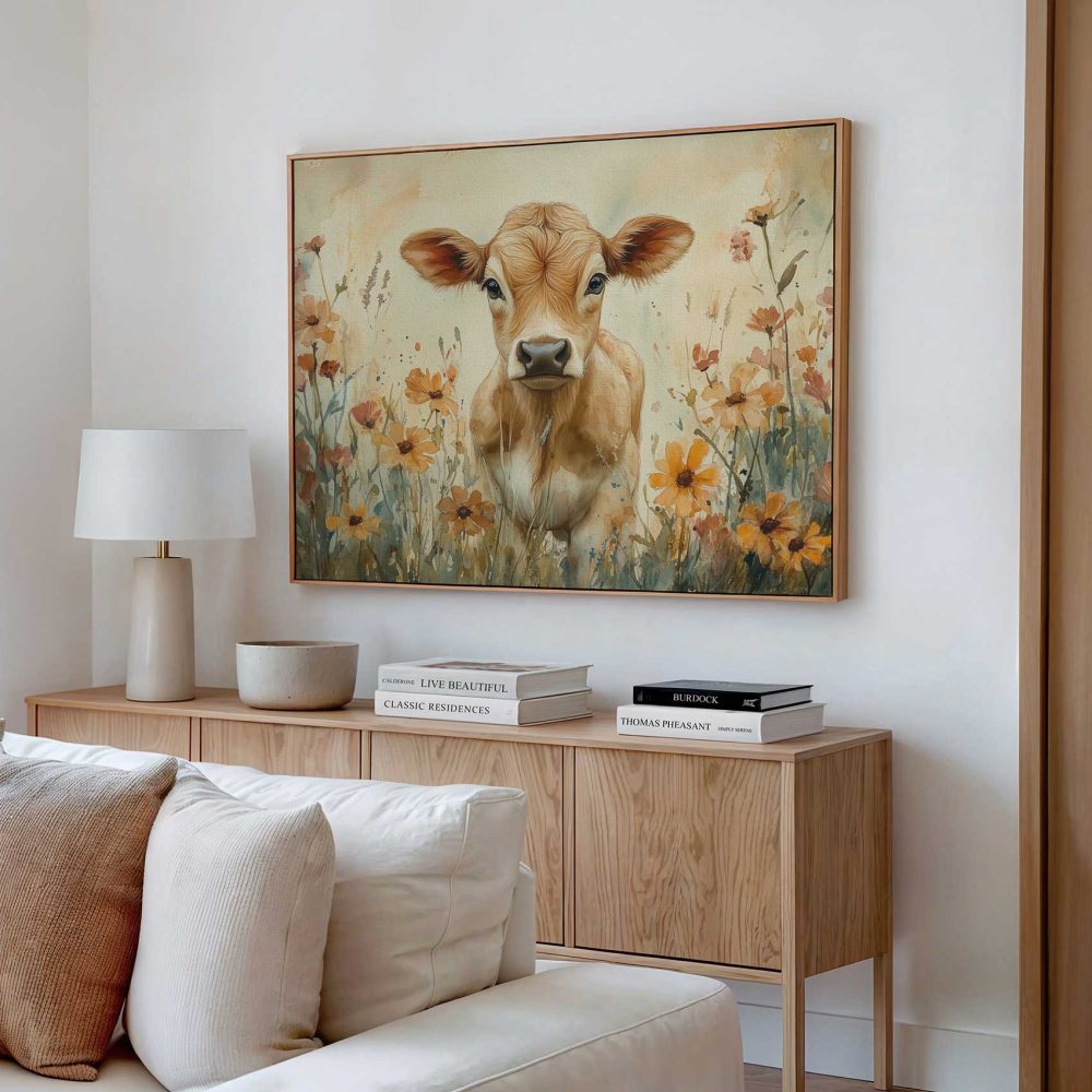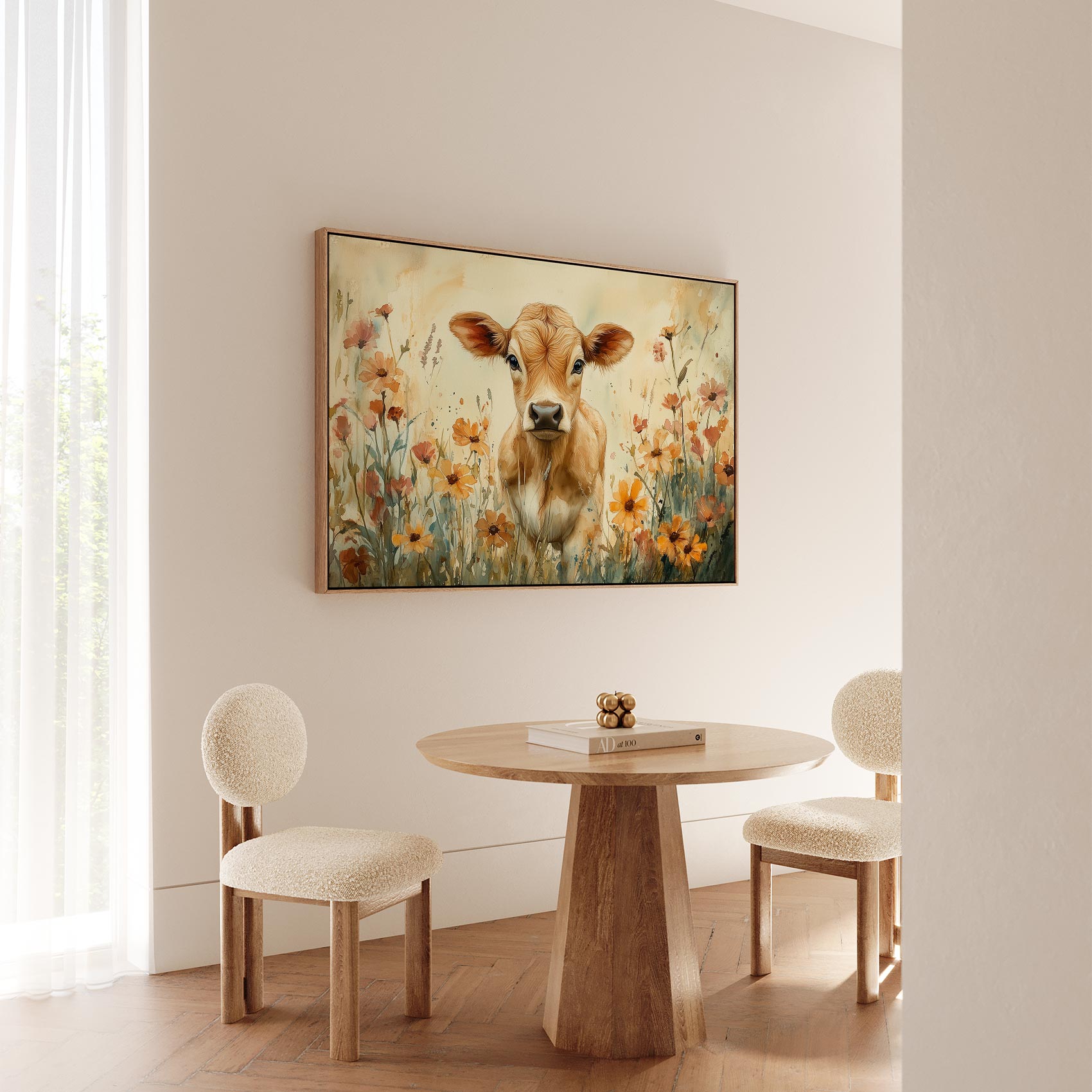 Terug naar collectie / Schilderijen / Bloemen Schilderij / Zachte waterverfkoe in bloemenveld