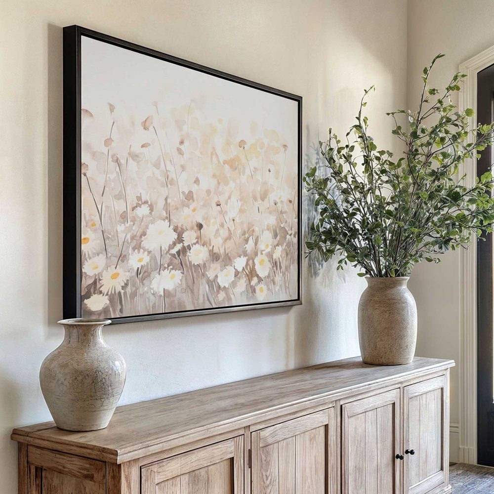 Terug naar collectie / Schilderijen / Bloemen Schilderij / Zachtgekleurd bloemenveld