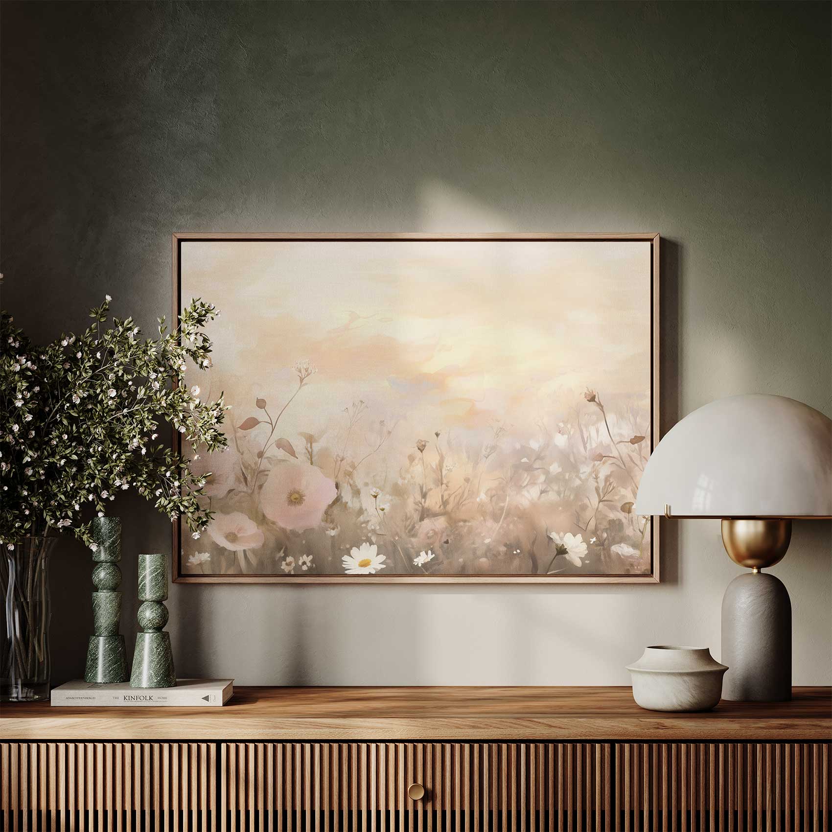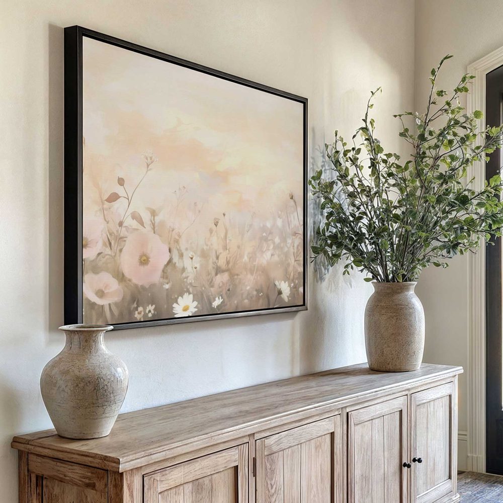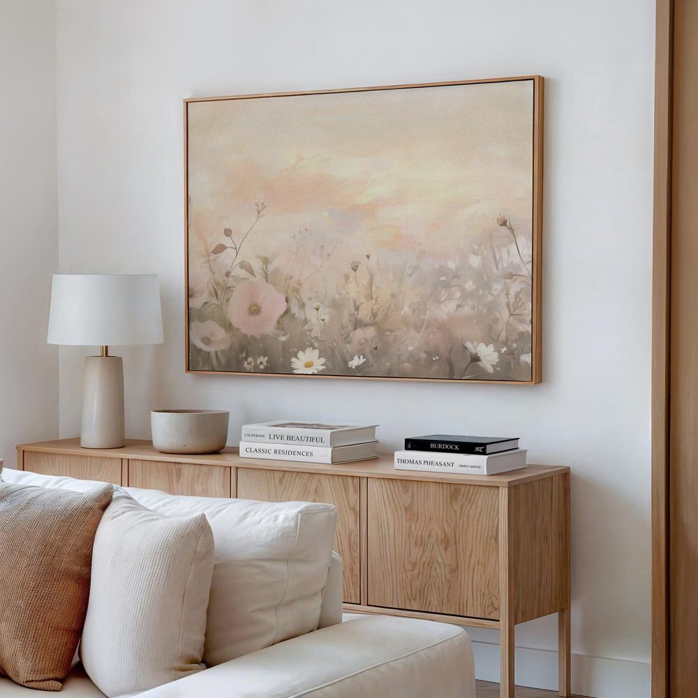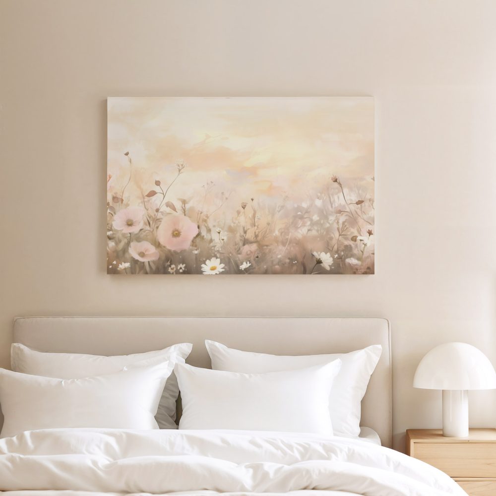 Terug naar collectie / Schilderijen / Bloemen Schilderij / Zachtgekleurd bloemenveld