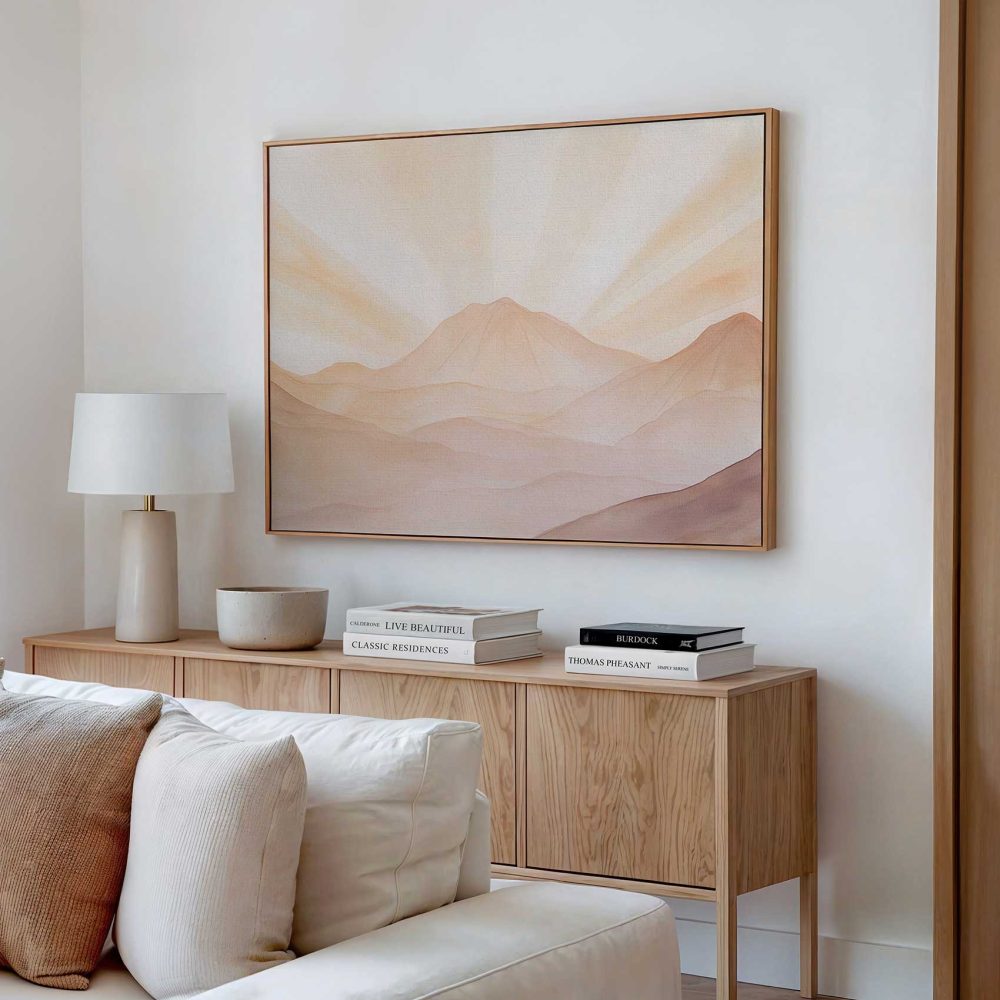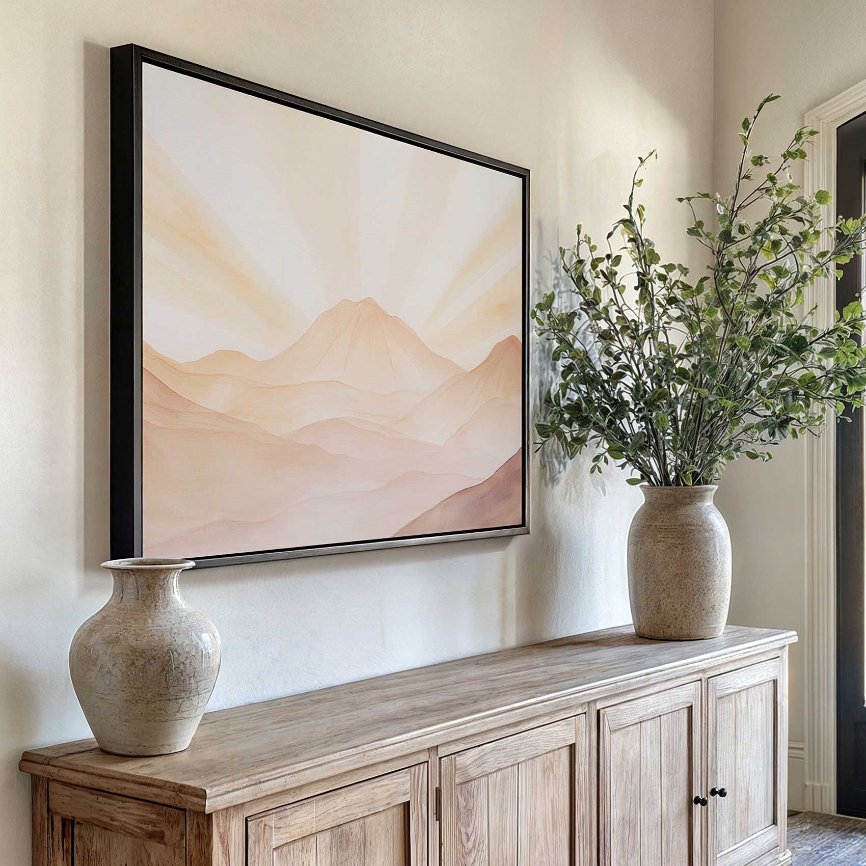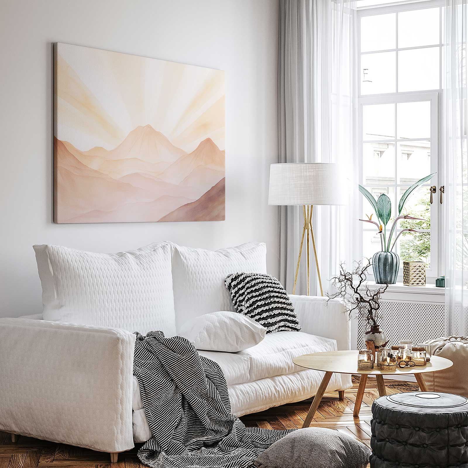 Terug naar collectie / Schilderijen / Bergen Schilderij / Zachtgekleurde berglandschap aquarel