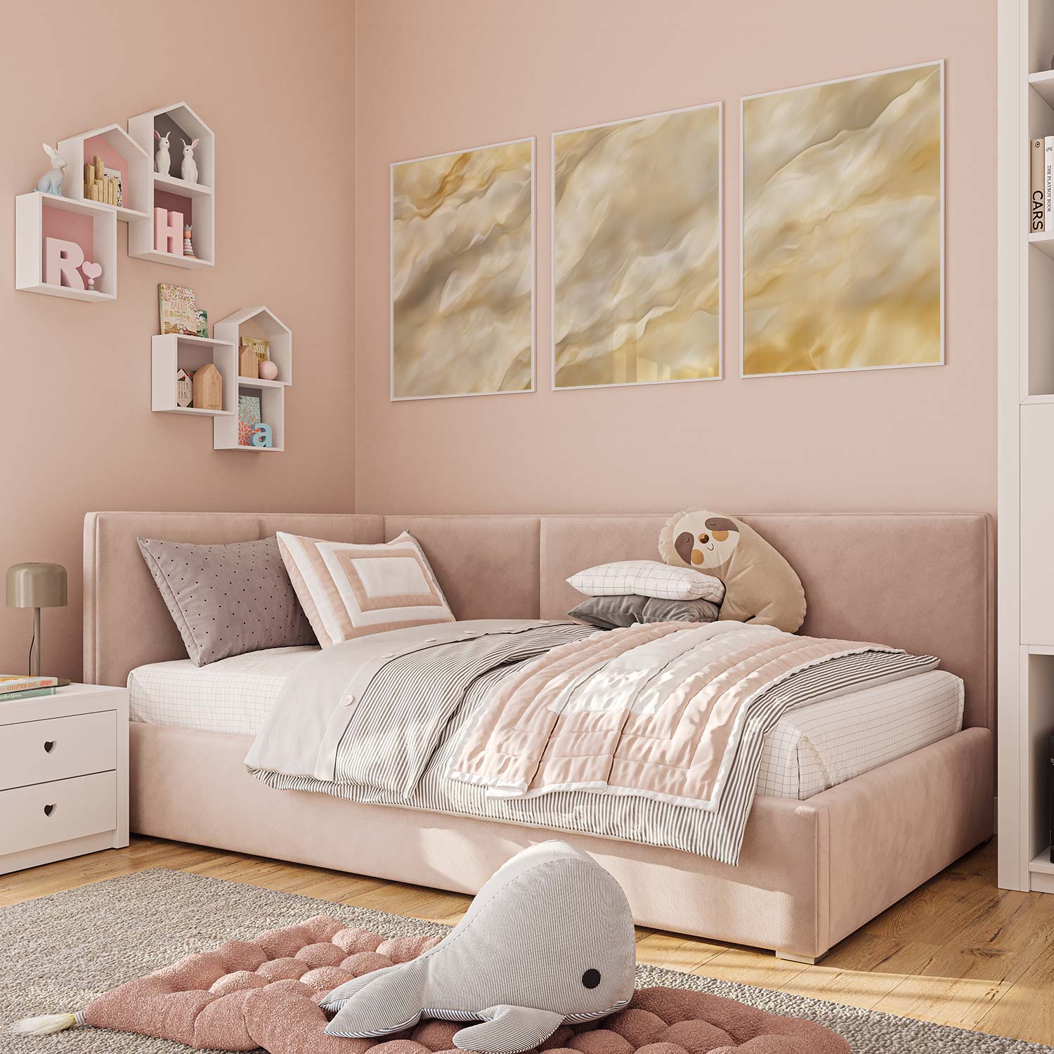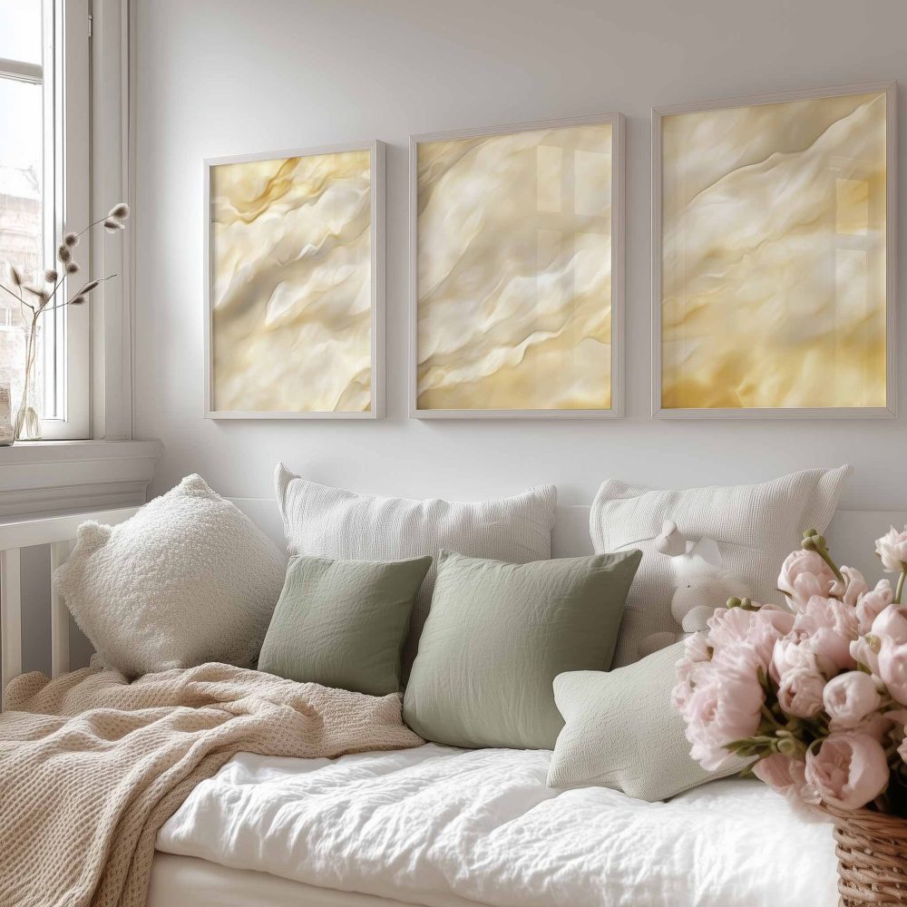 Terug naar collectie / Kinderkamer posters / Zachtgele Marmeren Sereniteit – Stijlvolle Wanddecoratie