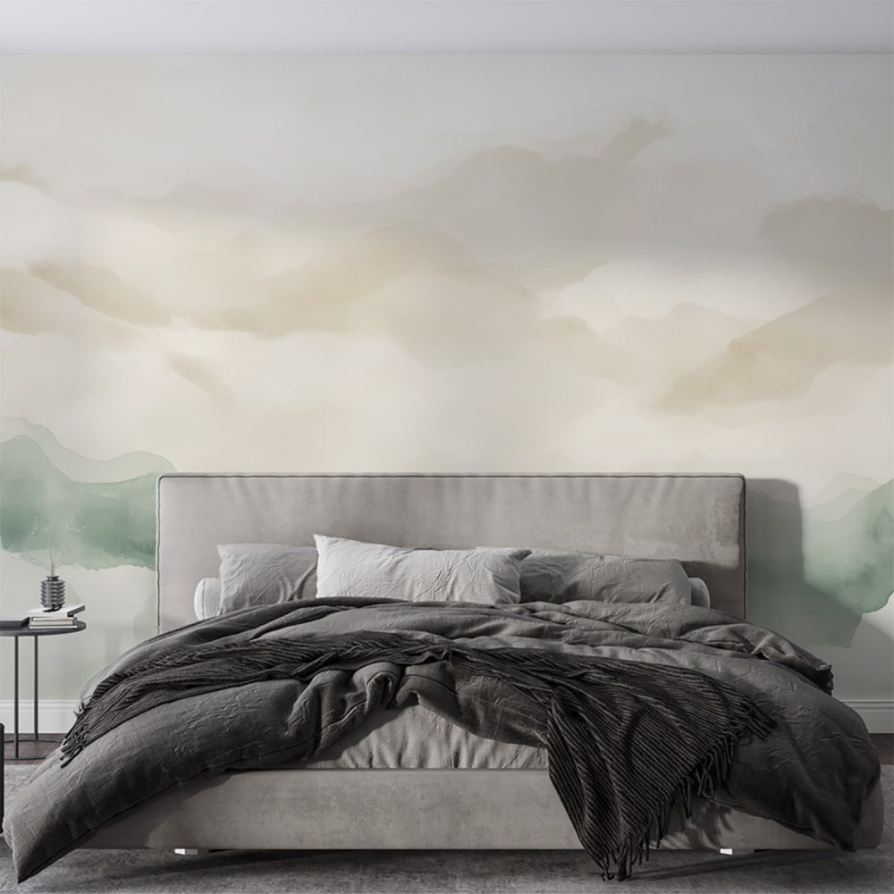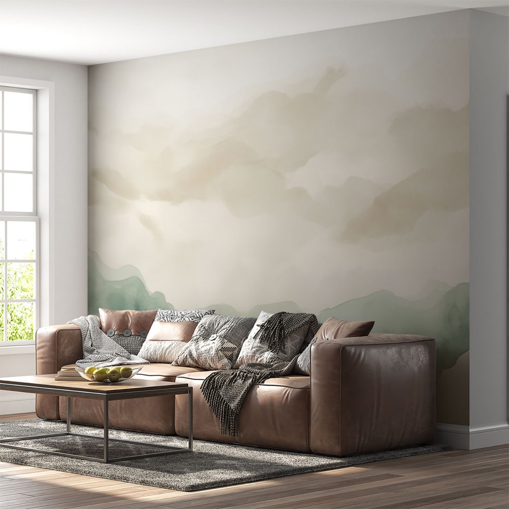 Terug naar collectie / Behang / Abstract behang / Zachtgroene waterverfschilderij behang