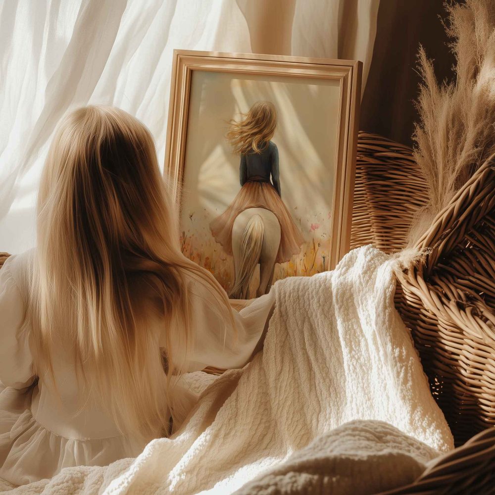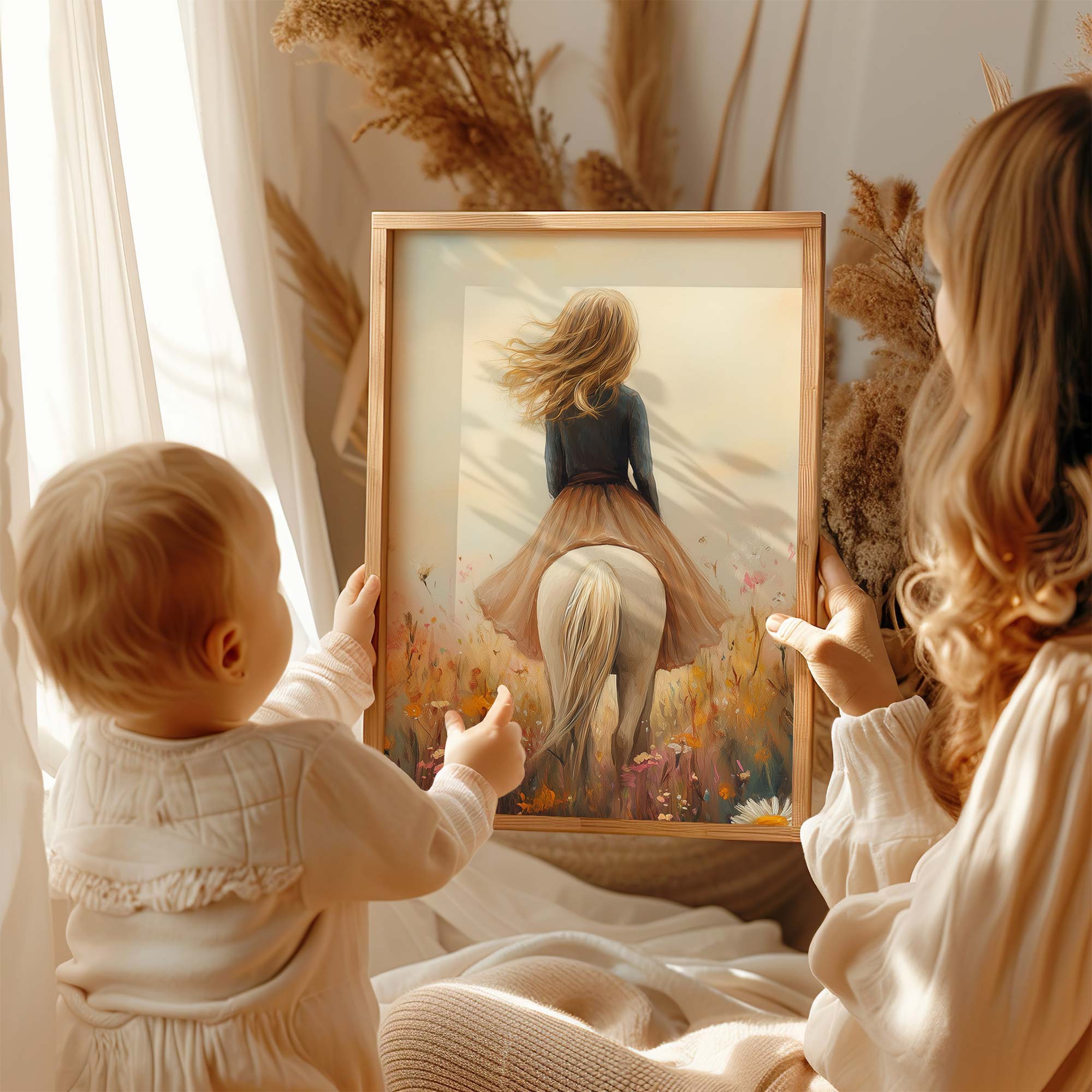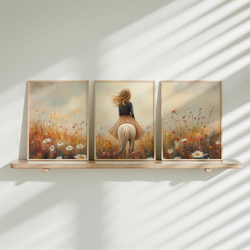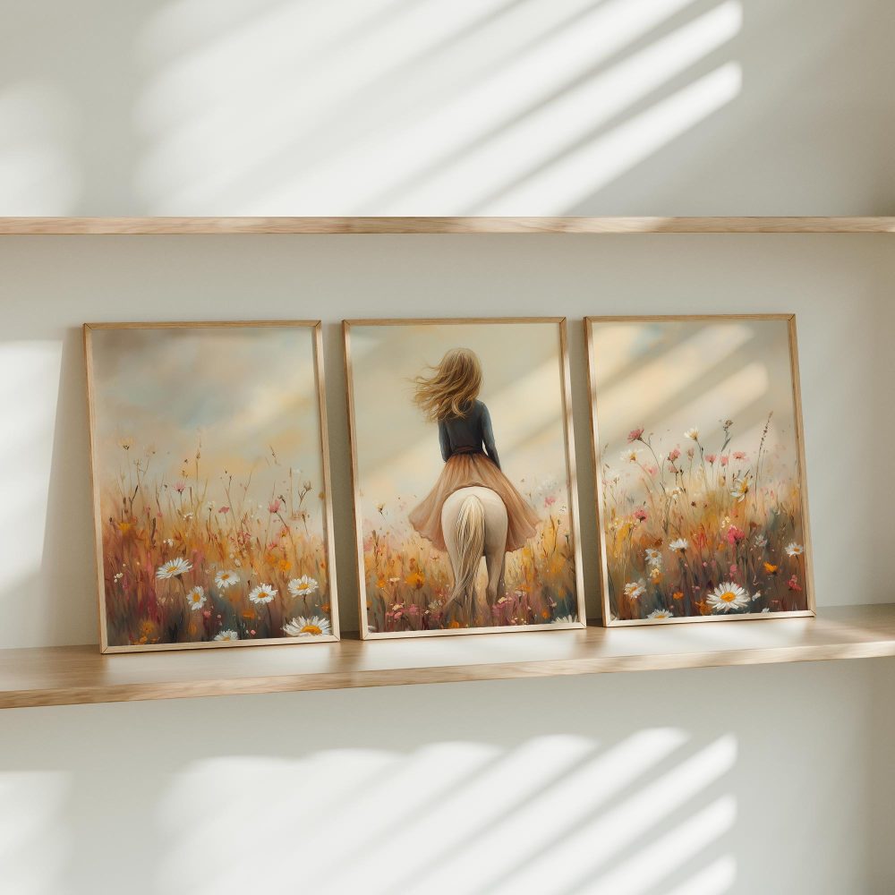 Terug naar collectie / Uncategorized / Zachtmoedige dame te paard in bloemenveld