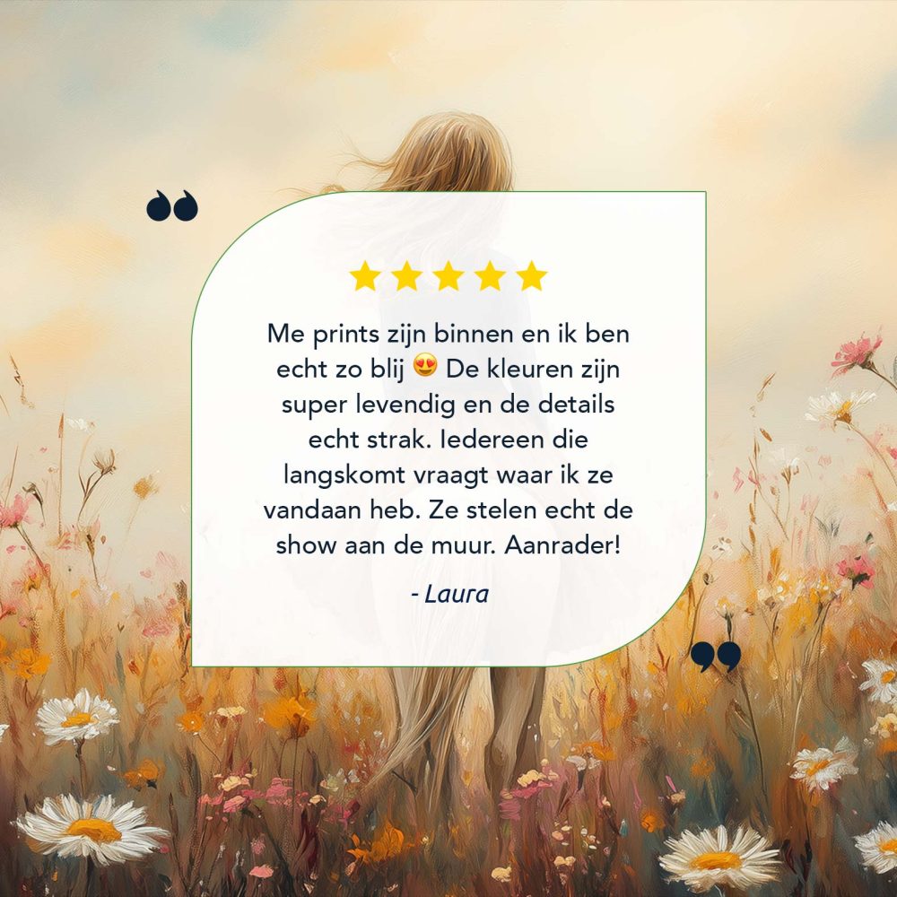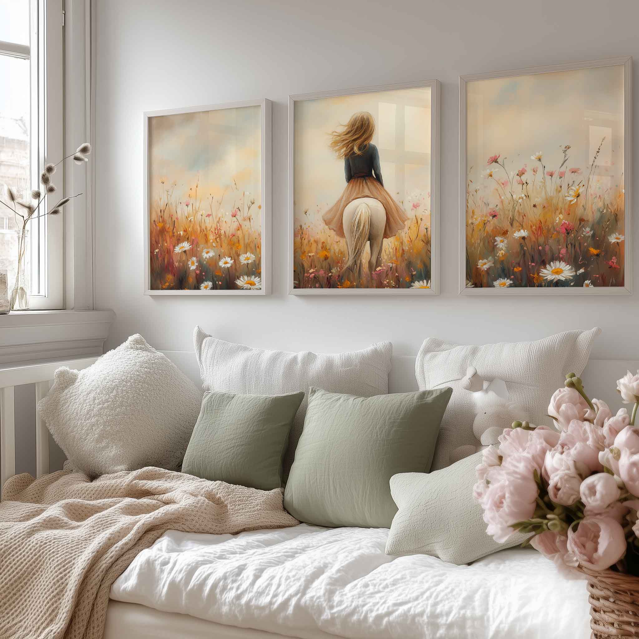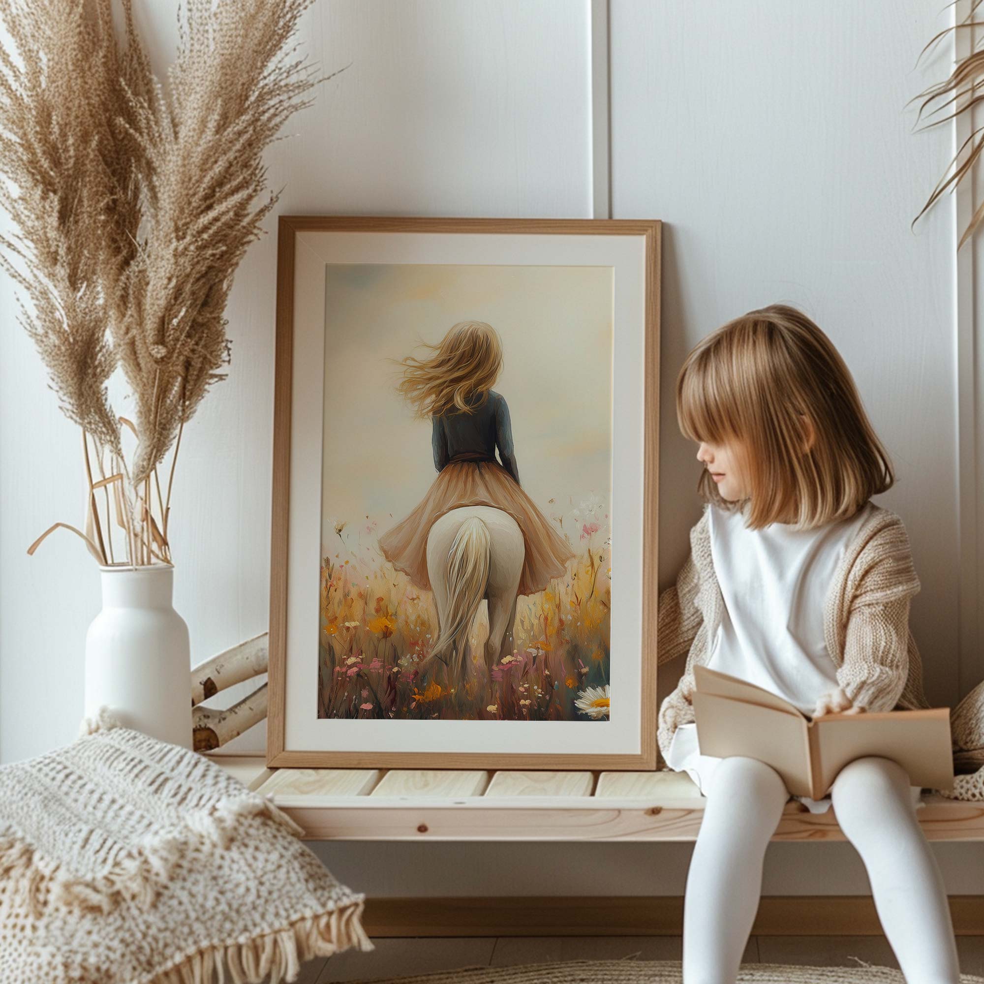 Terug naar collectie / Uncategorized / Zachtmoedige dame te paard in bloemenveld