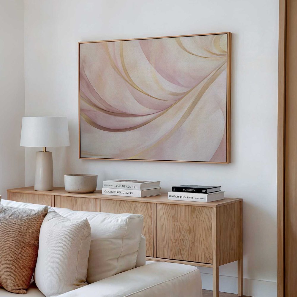 Terug naar collectie / Schilderijen / Abstract Schilderij / Zachtroze abstracte sfeer
