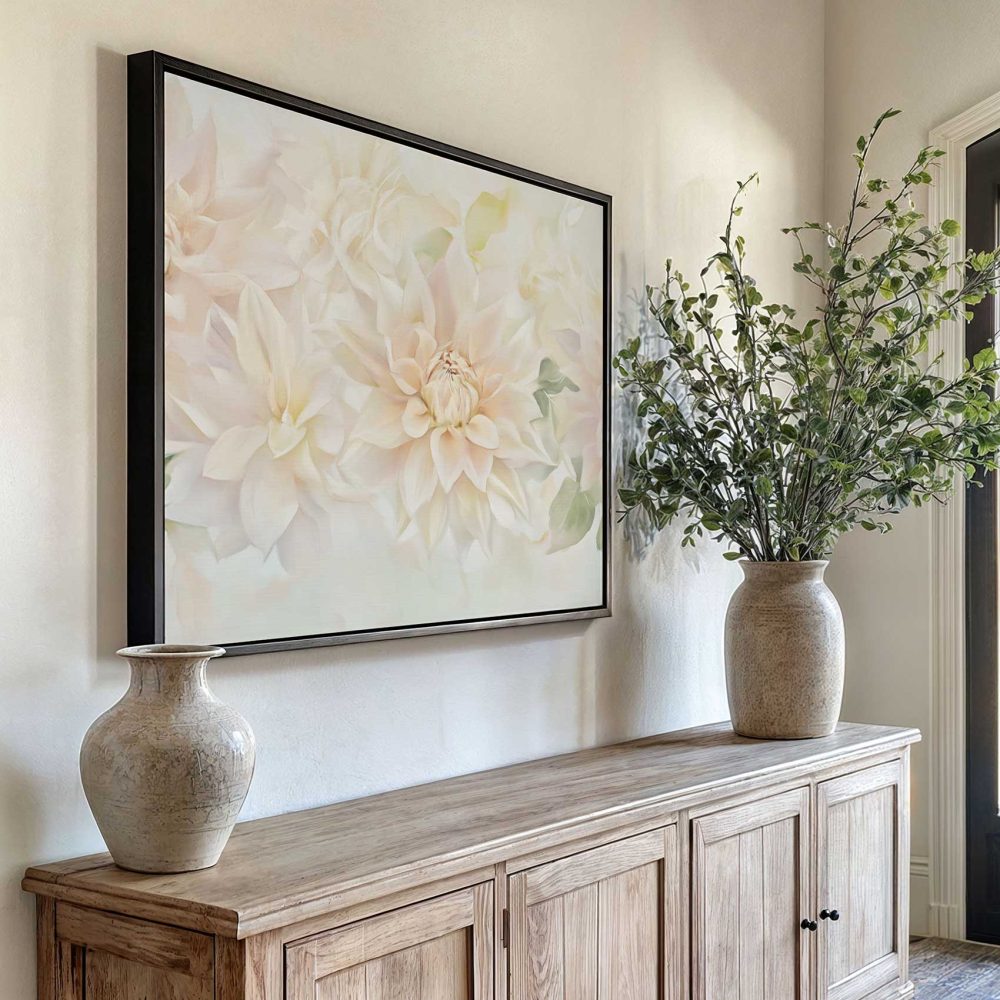 Terug naar collectie / Schilderijen / Bloemen Schilderij / Zachtroze bloemenharmonie