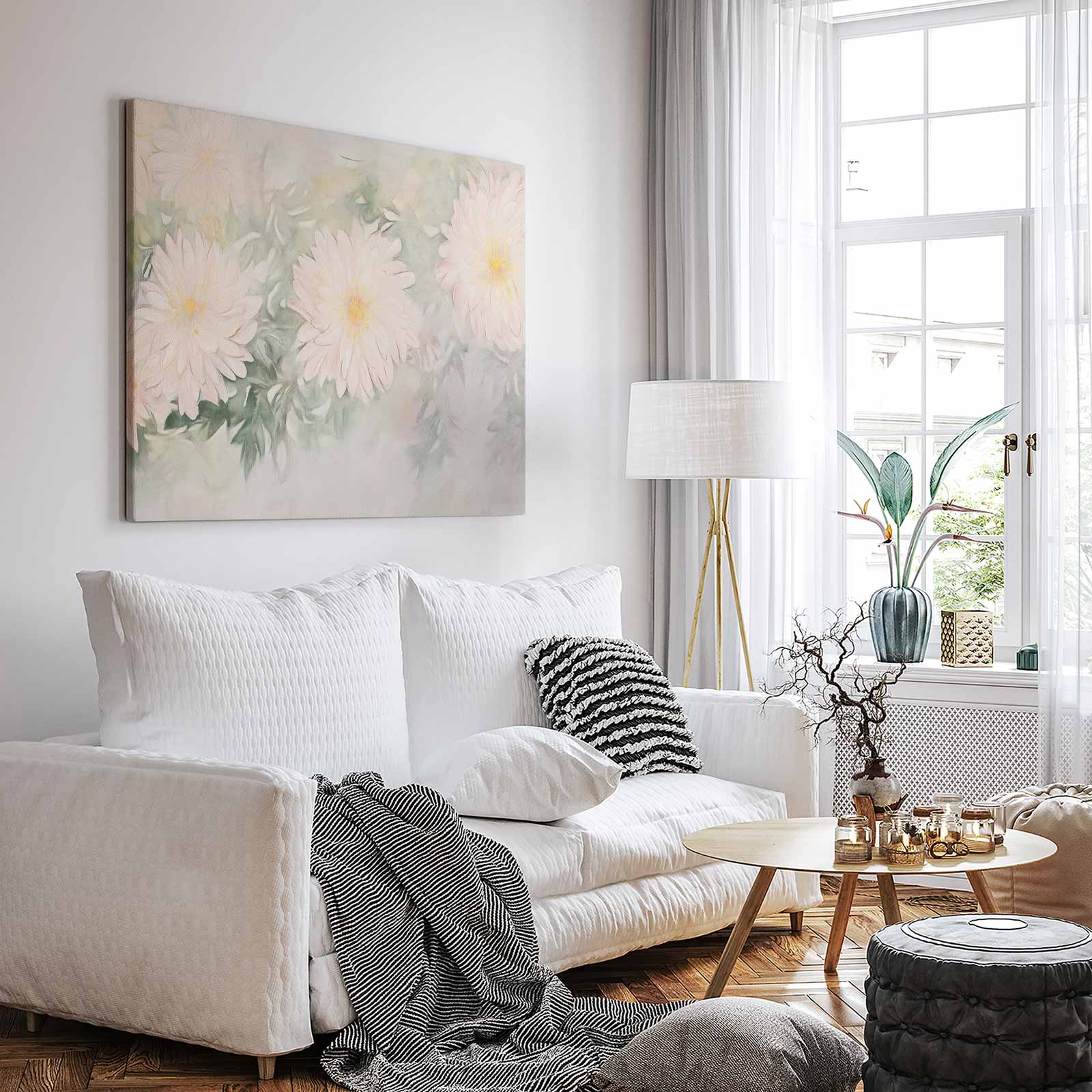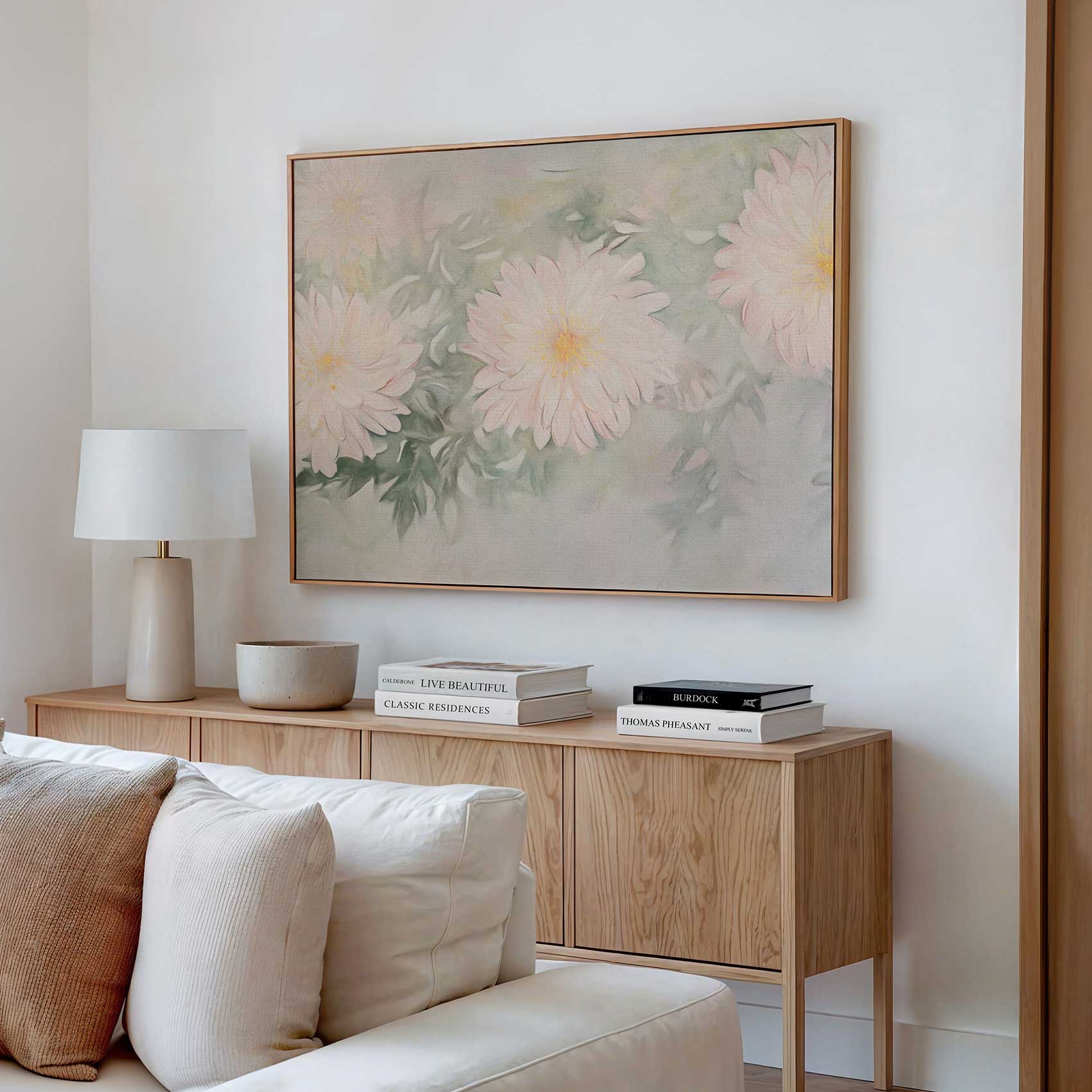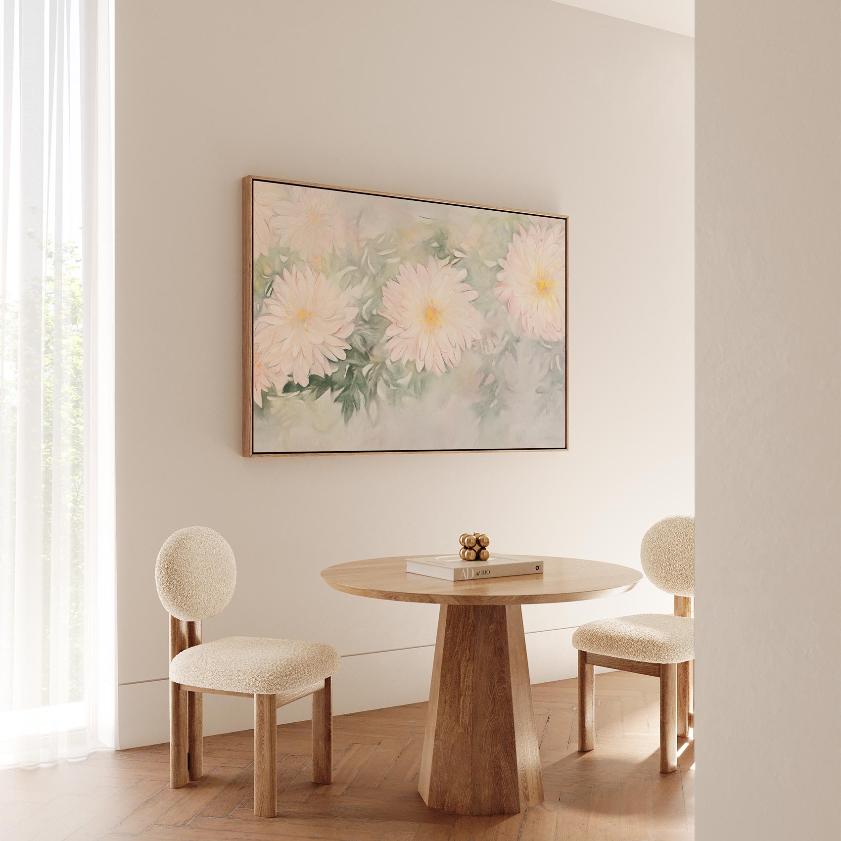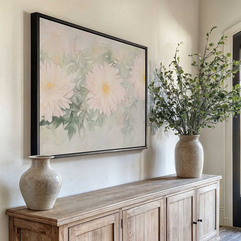 Terug naar collectie / Schilderijen / Bloemen Schilderij / Zachtroze bloemenimpressie
