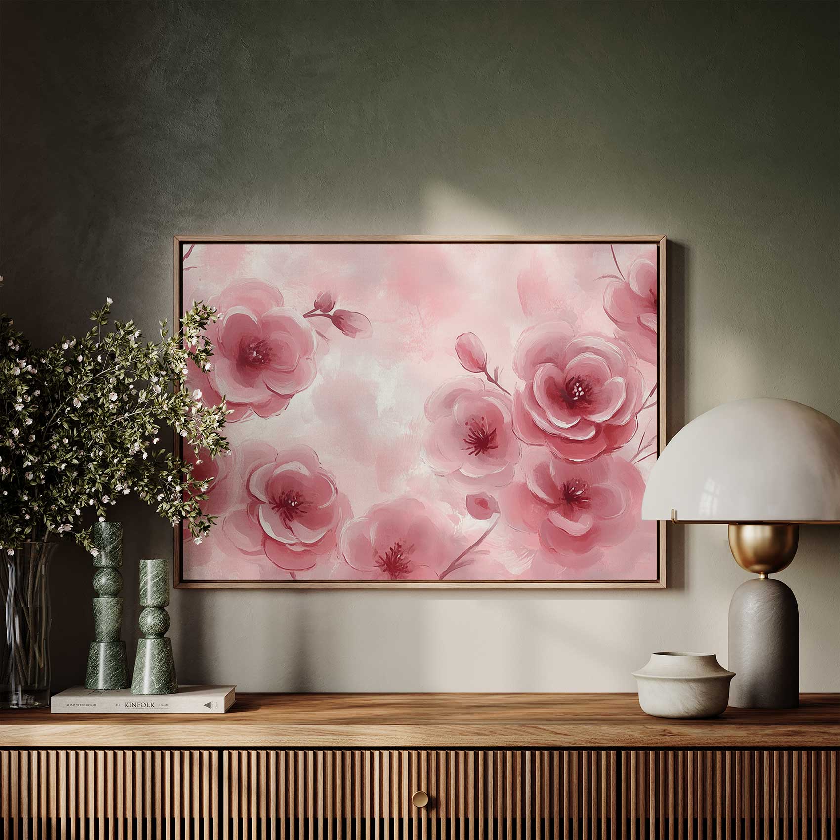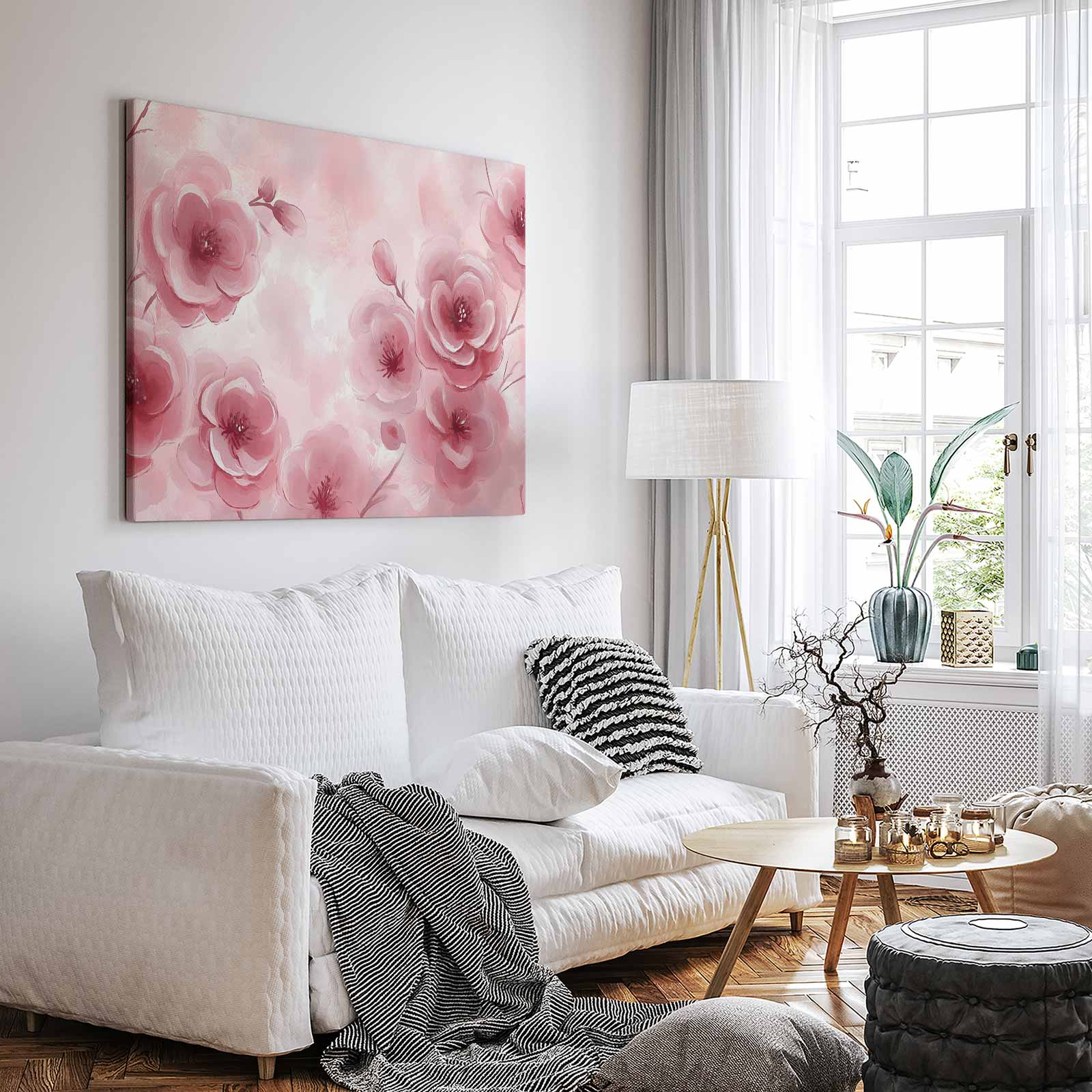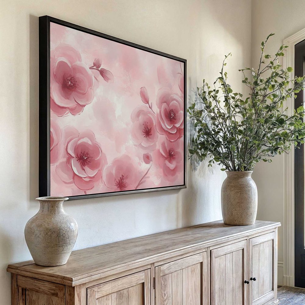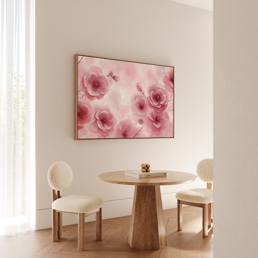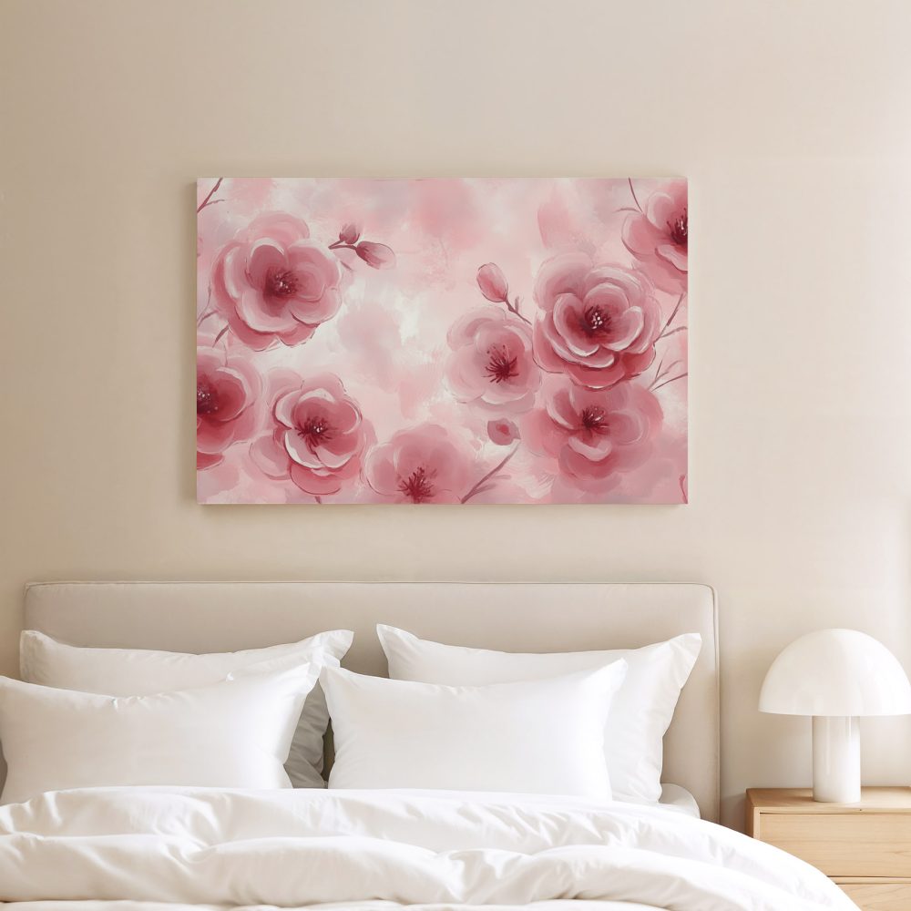 Zachtroze bloesem schilderij