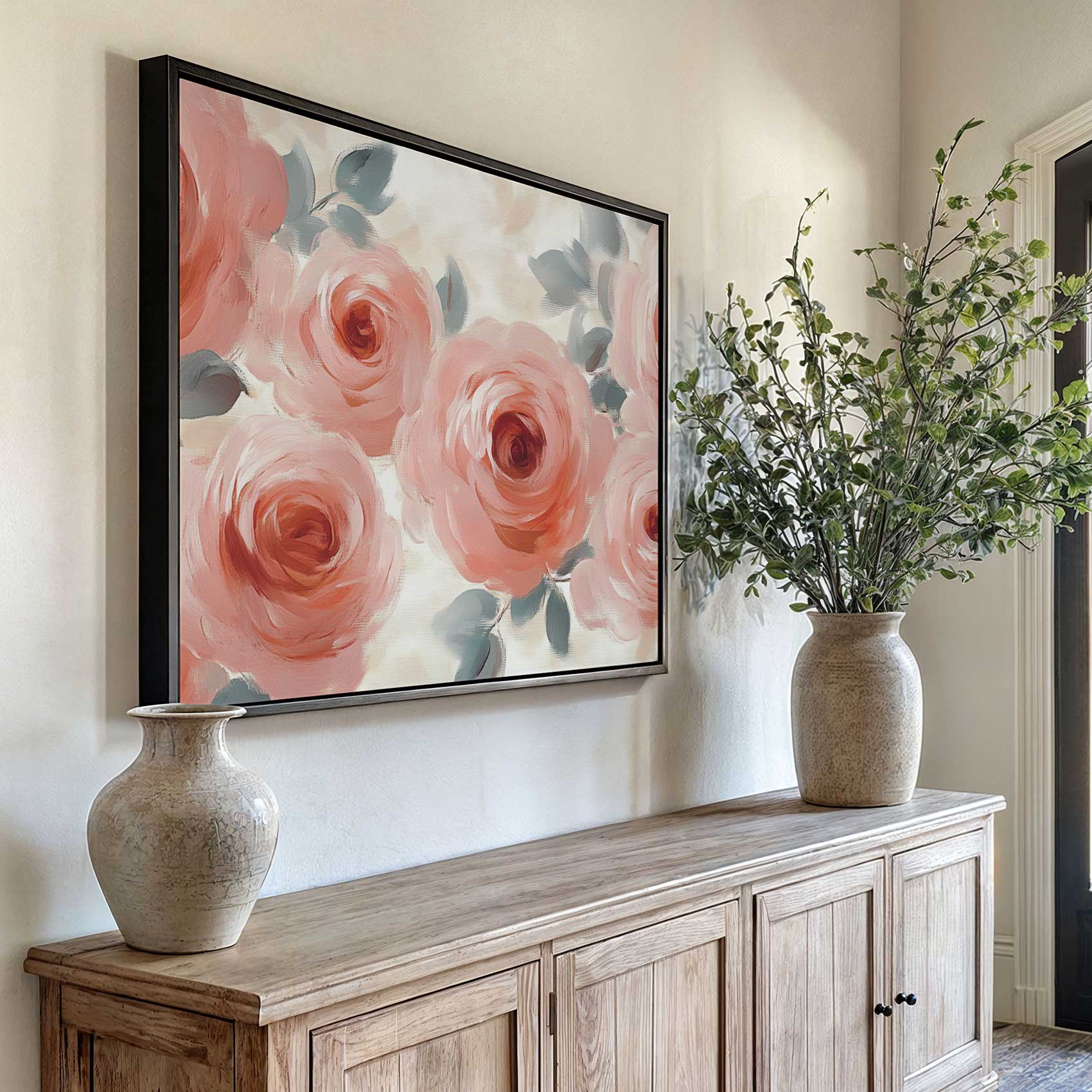 Terug naar collectie / Schilderijen / Bloemen Schilderij / Zachtroze watercolor rozen