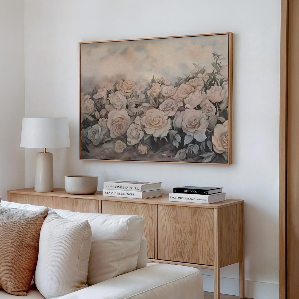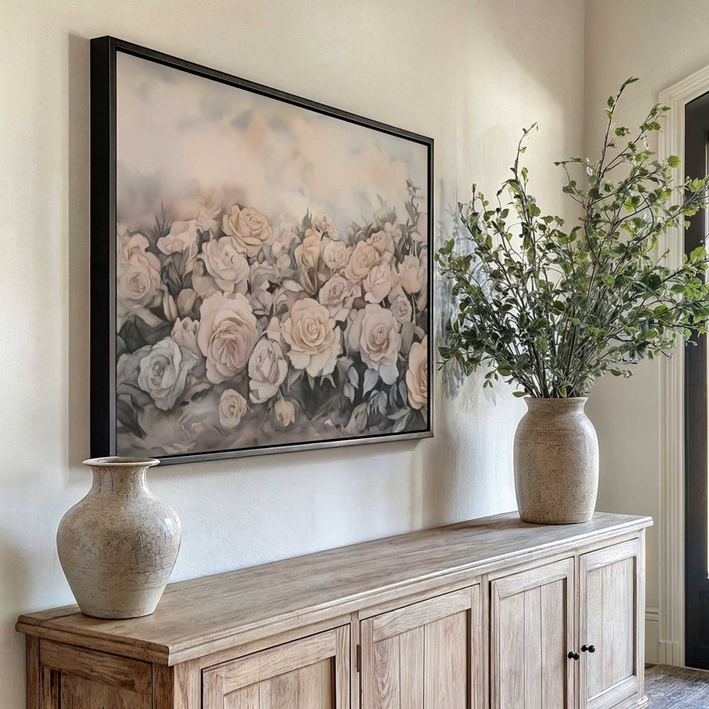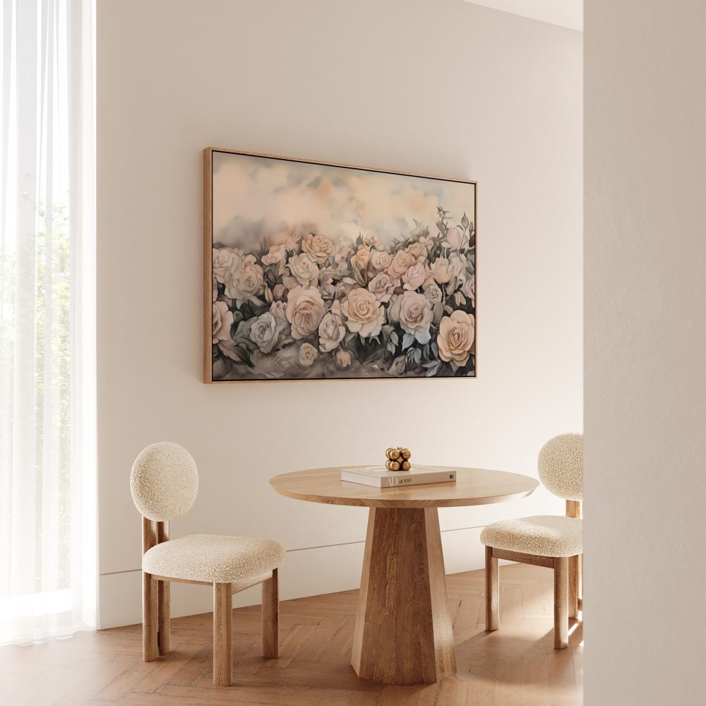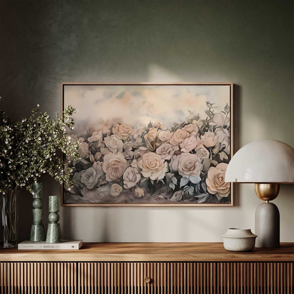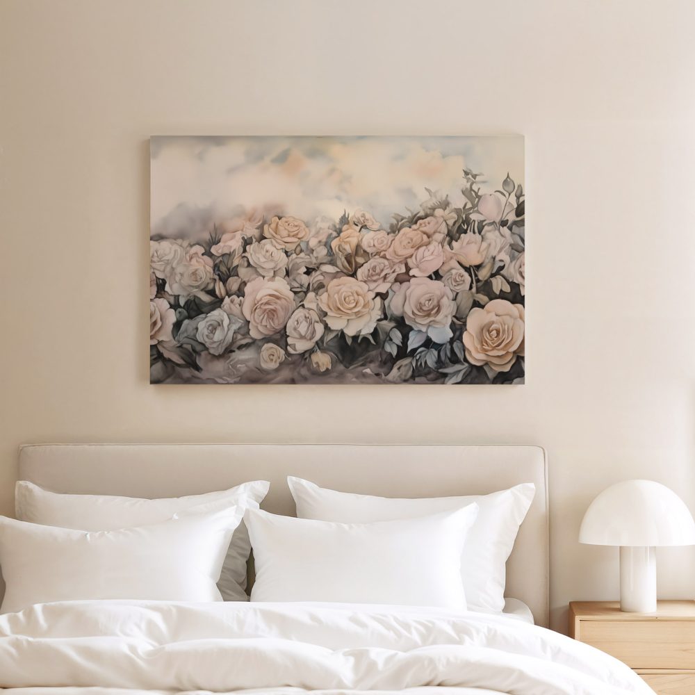 Terug naar collectie / Schilderijen / Bloemen Schilderij / Zachtroze Watercolor Rozenveld