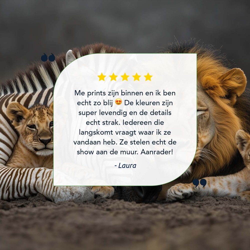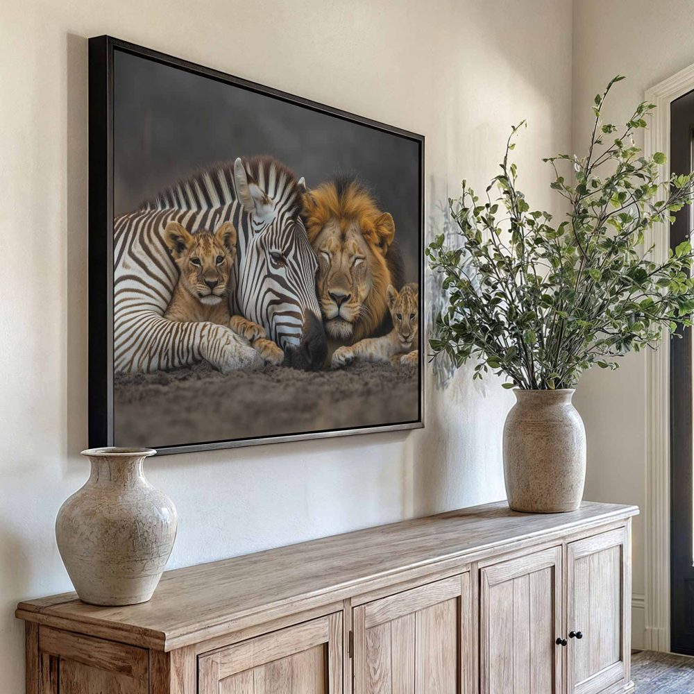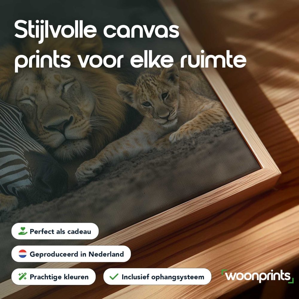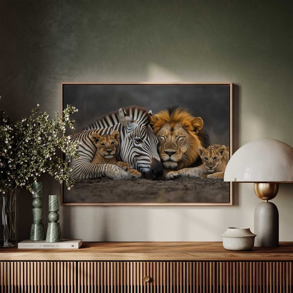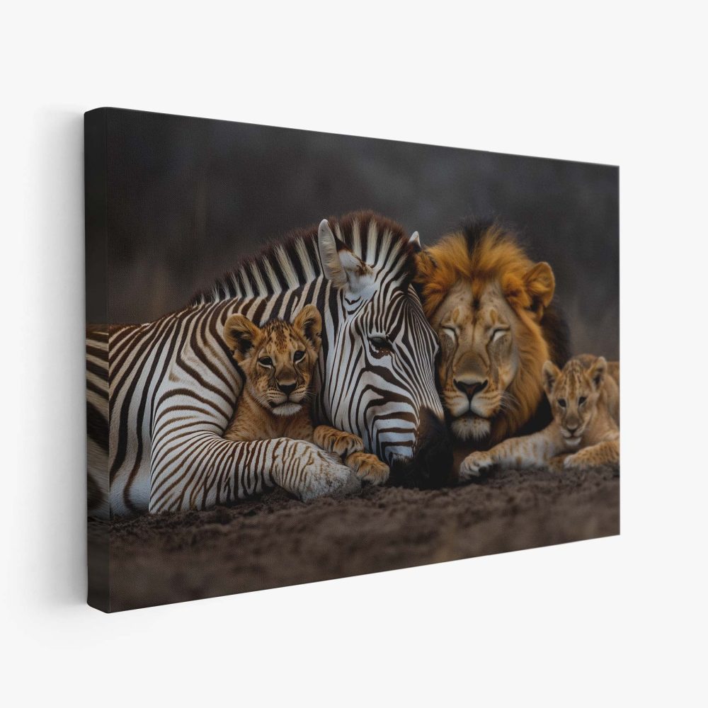 Terug naar collectie / Schilderijen / Dieren Schilderij / Zebra en leeuwenwelpen samen