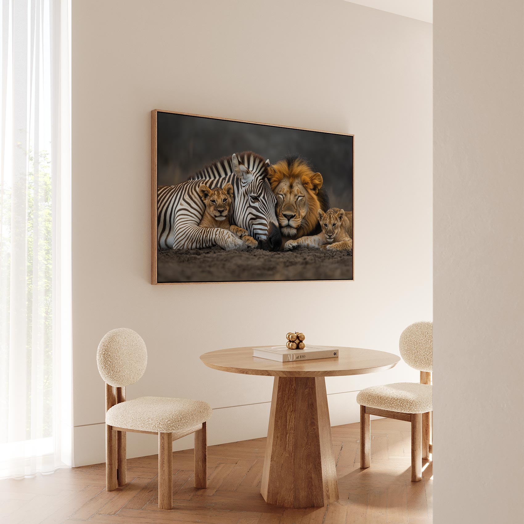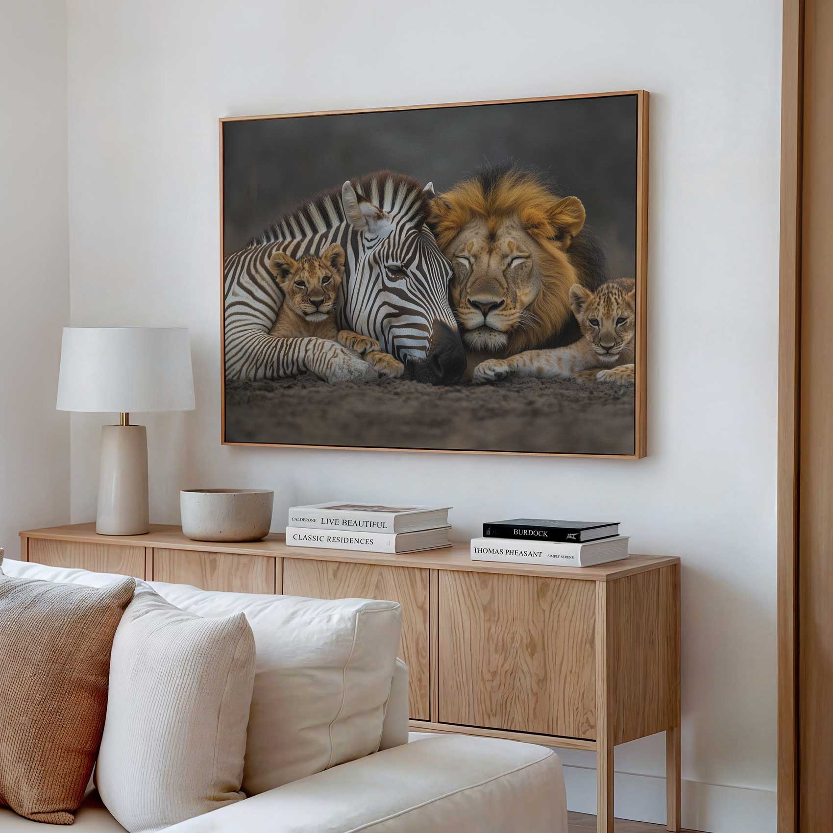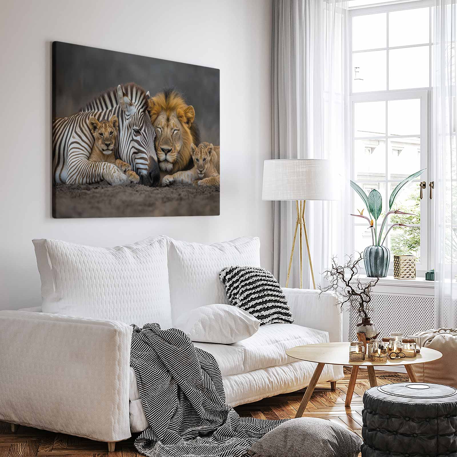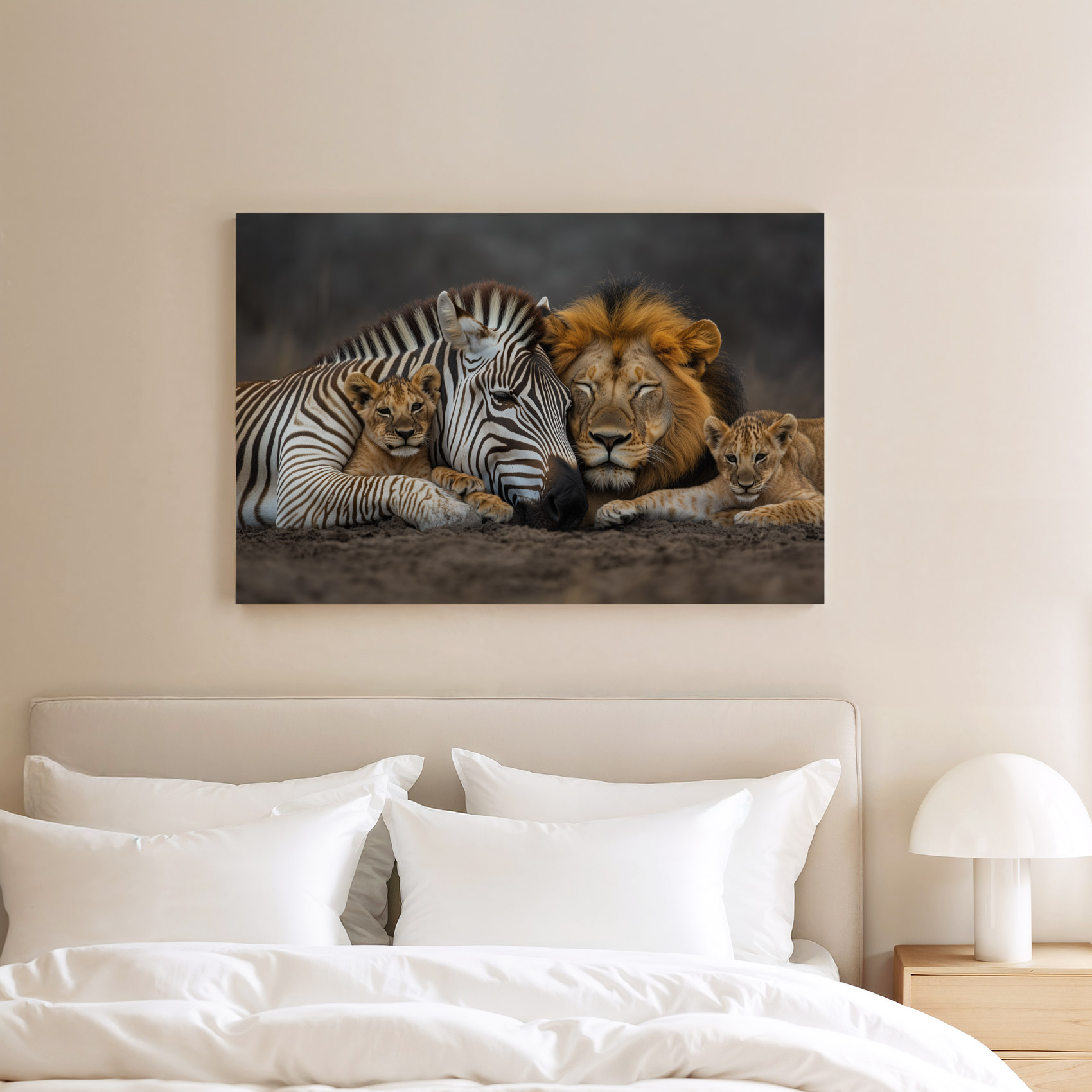 Terug naar collectie / Schilderijen / Dieren Schilderij / Zebra en leeuwenwelpen samen