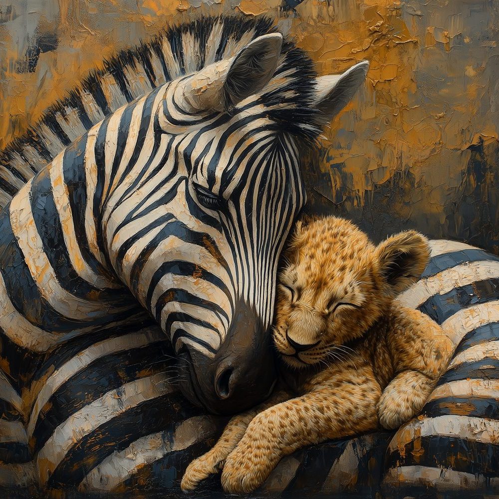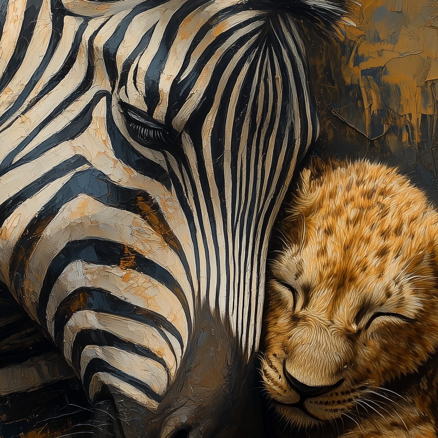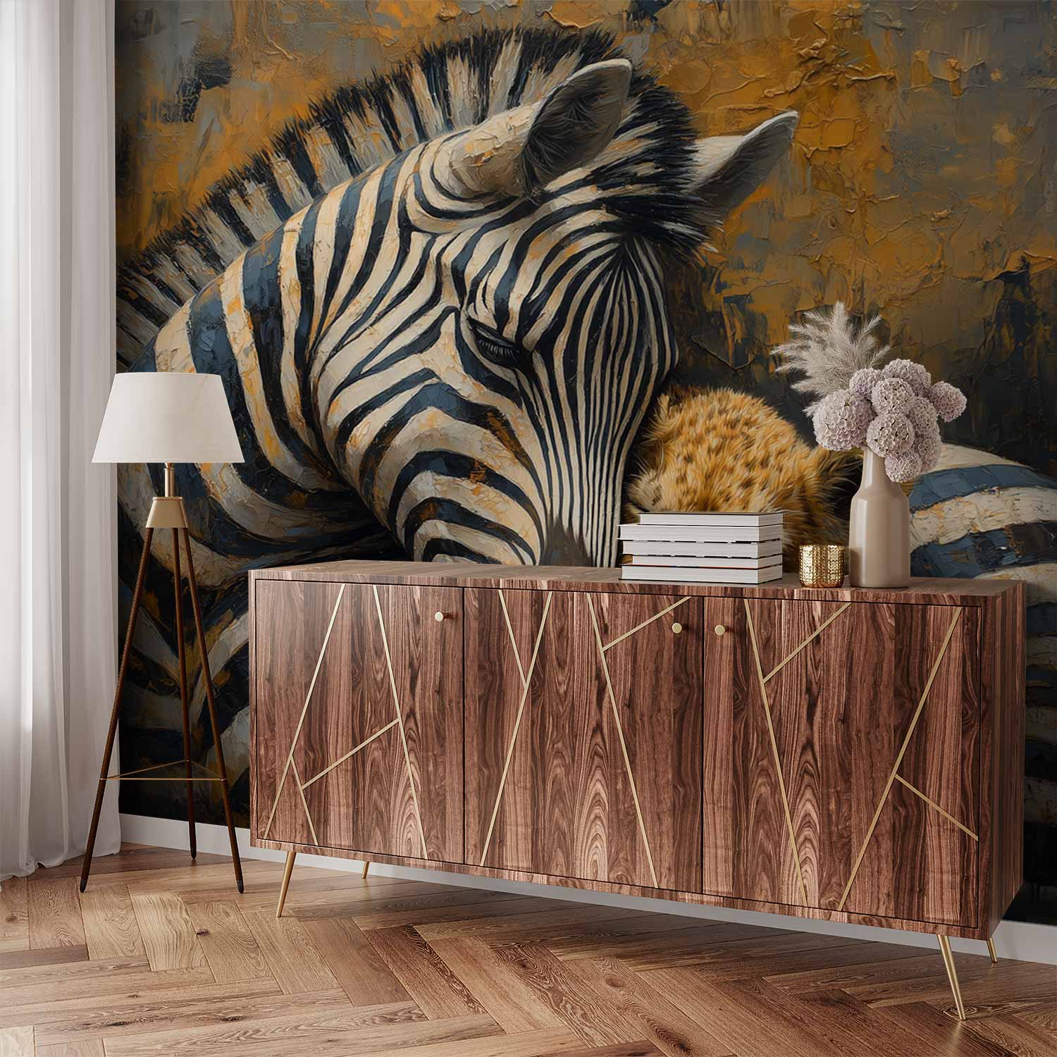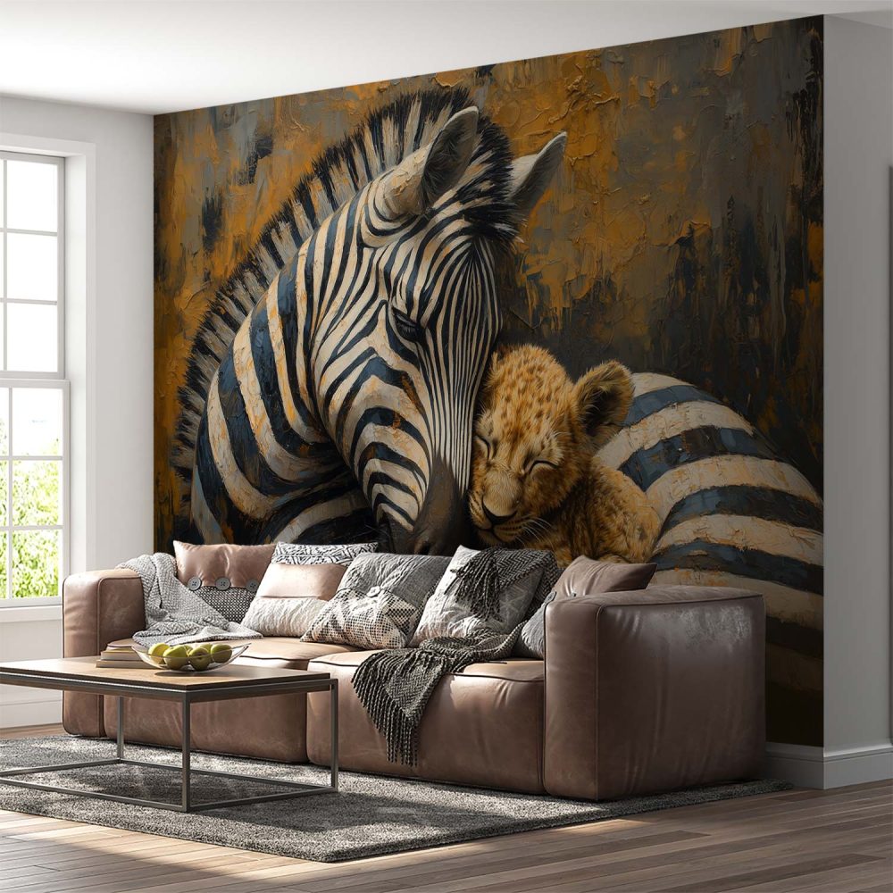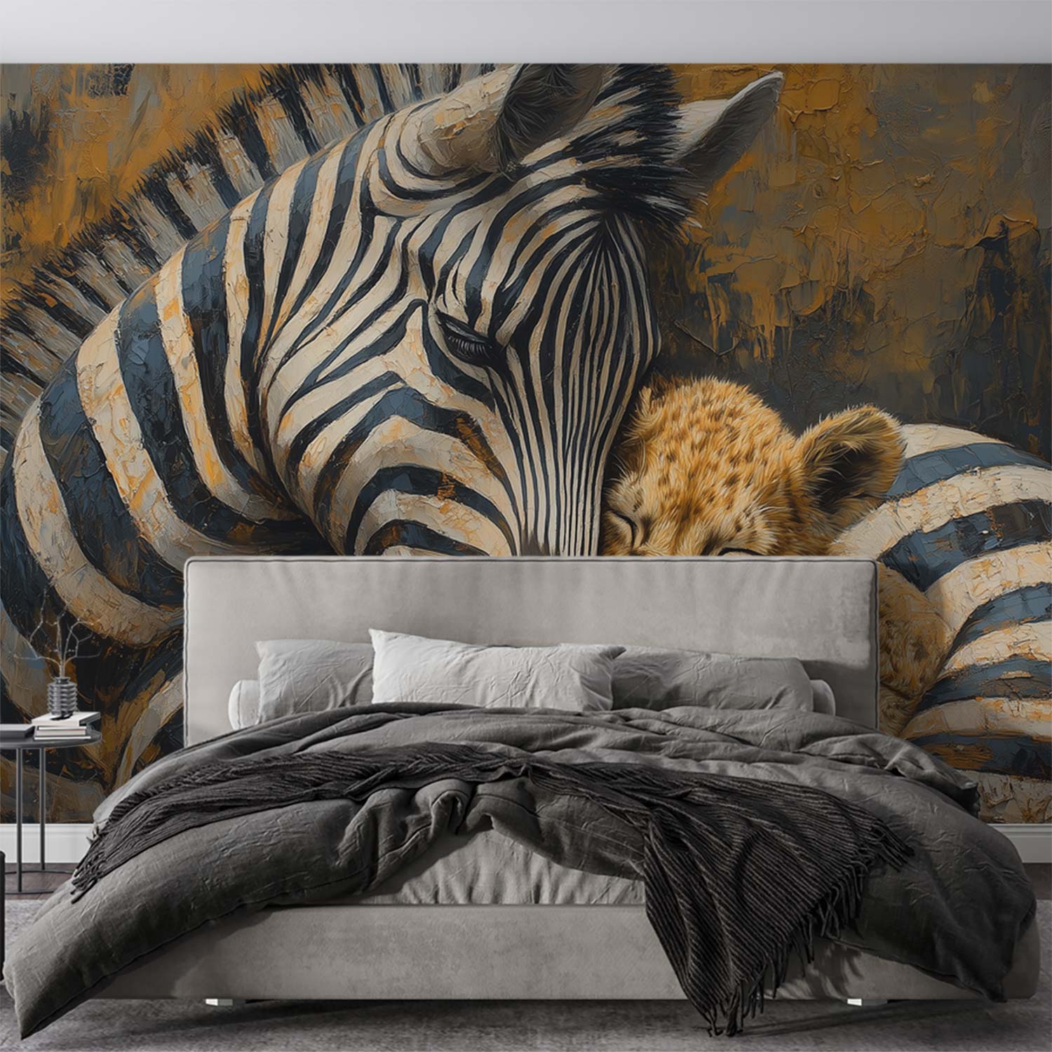 Terug naar collectie / Behang / Zebra en luipaardwelp liefde behang