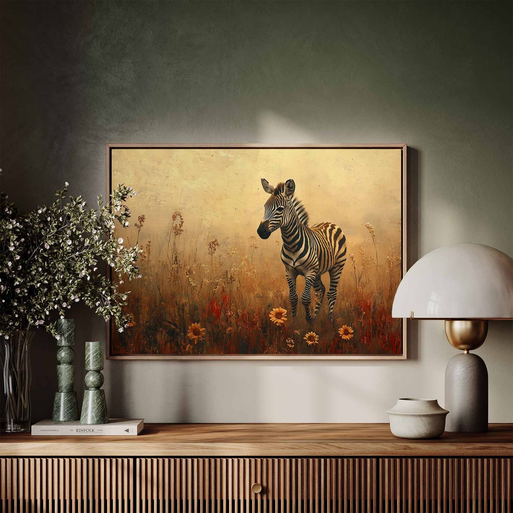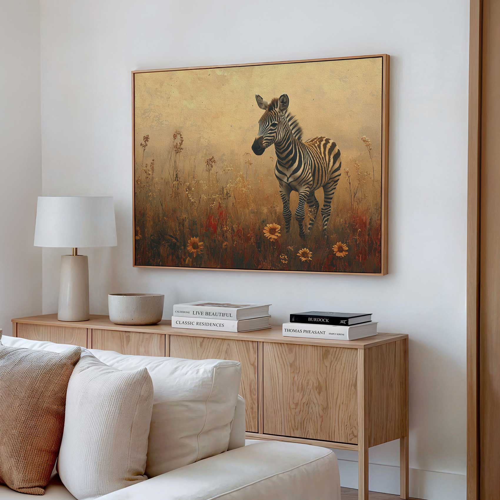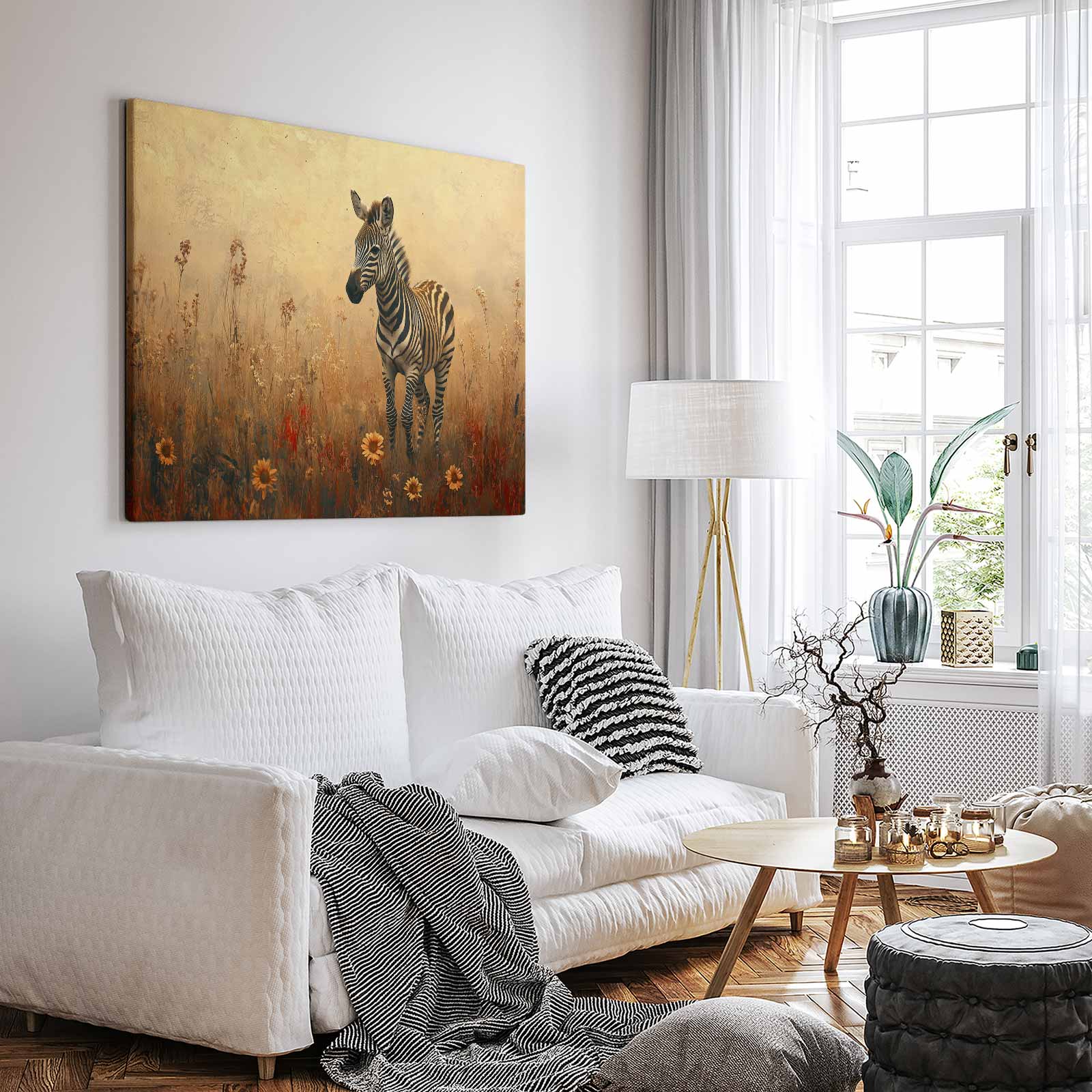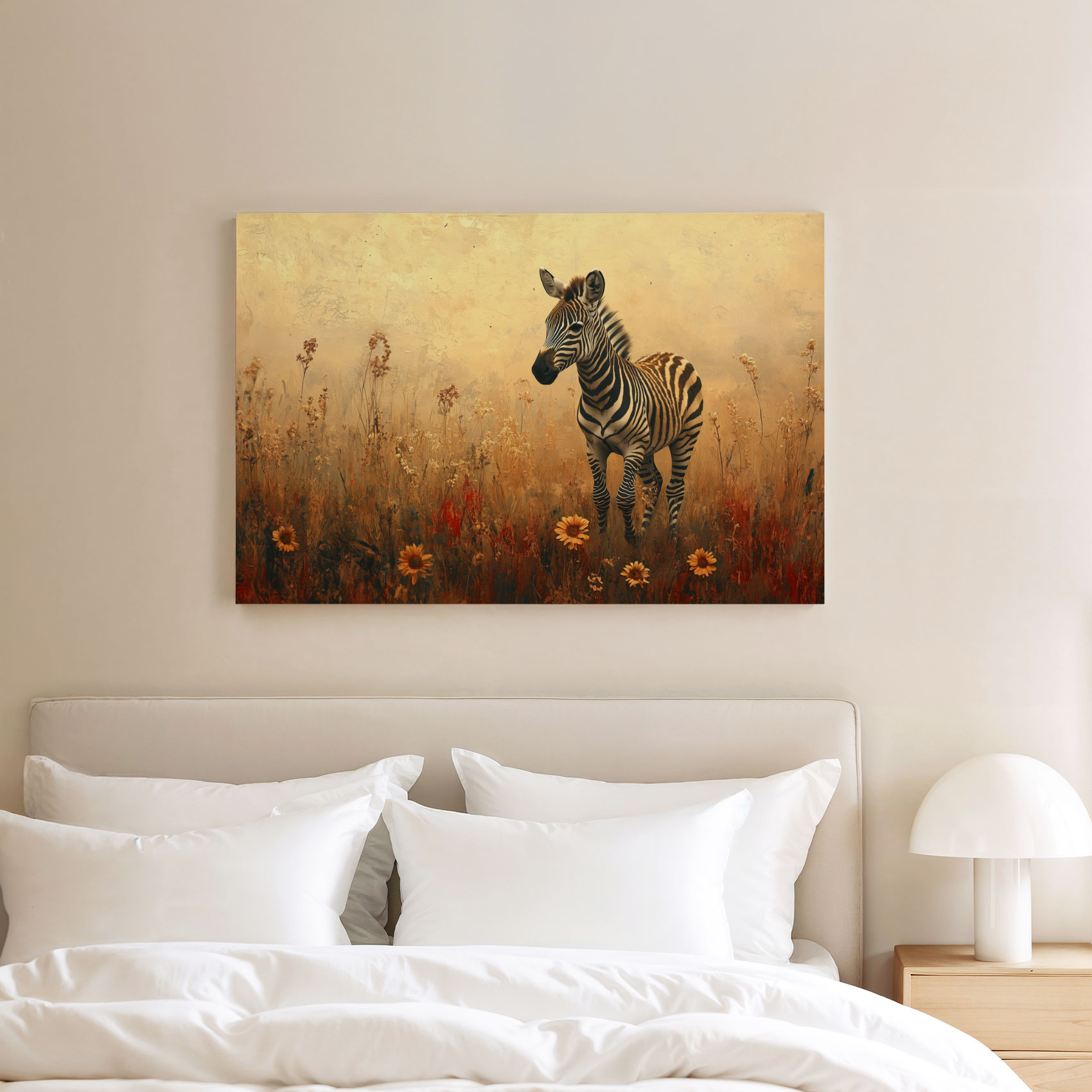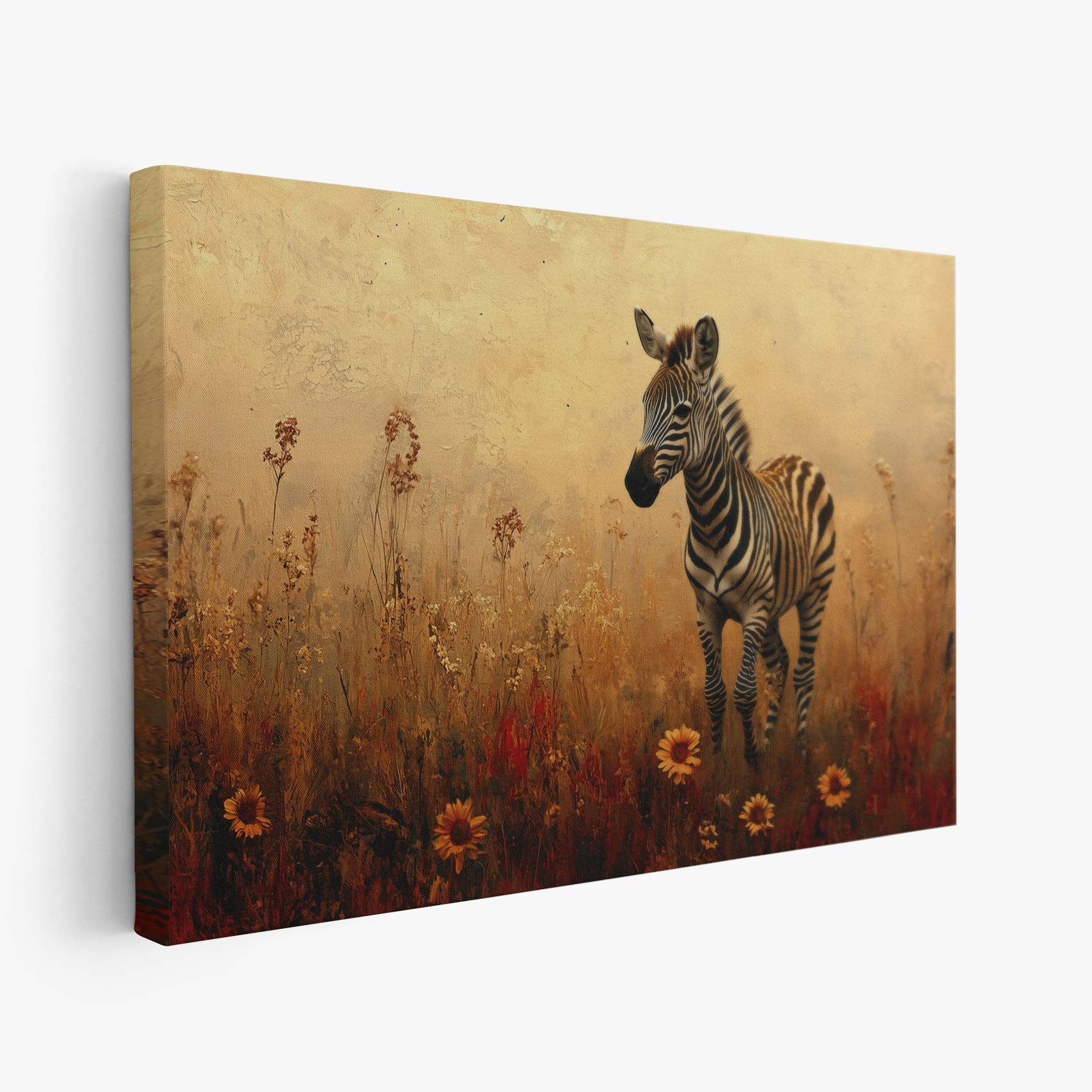 Zebra in bloemenveld