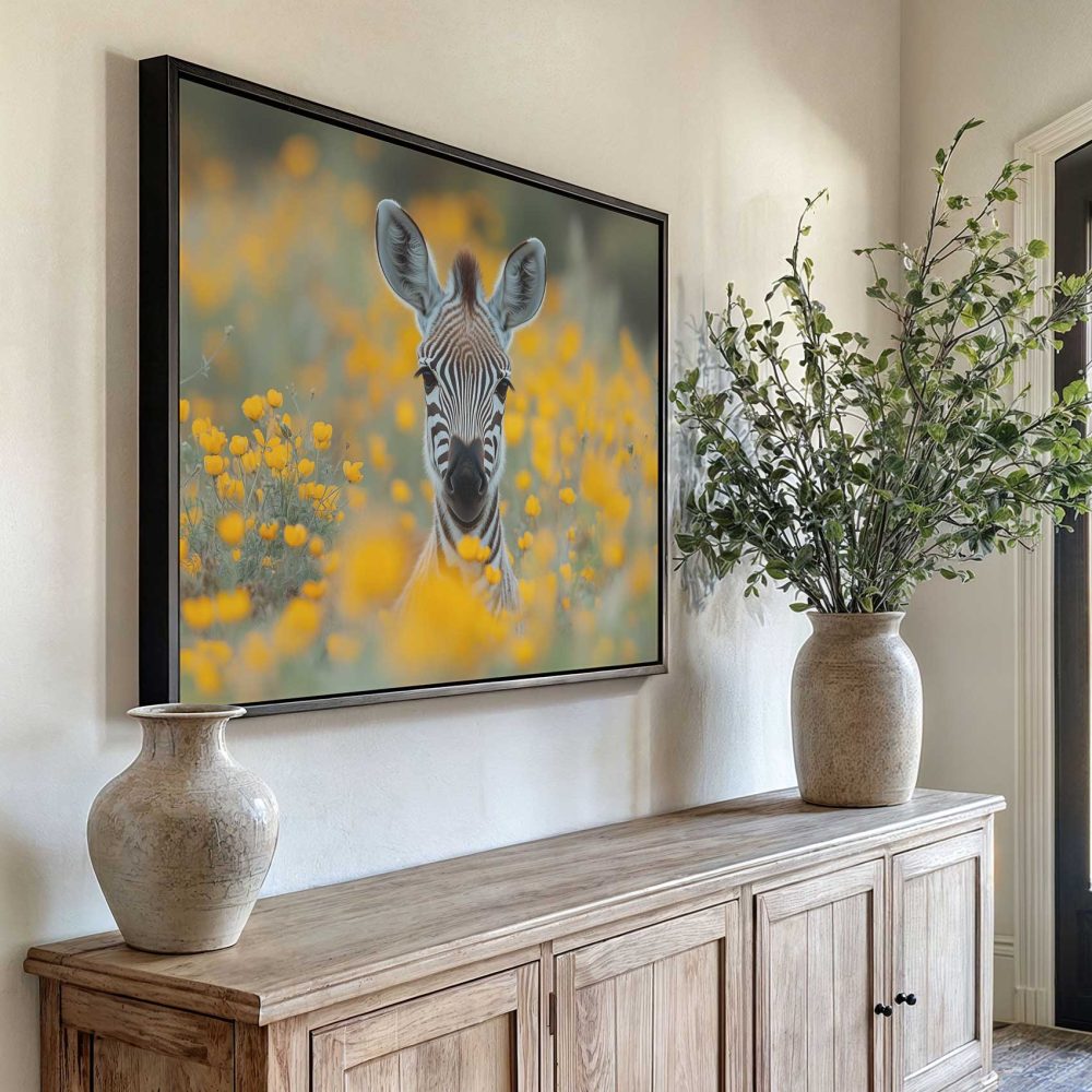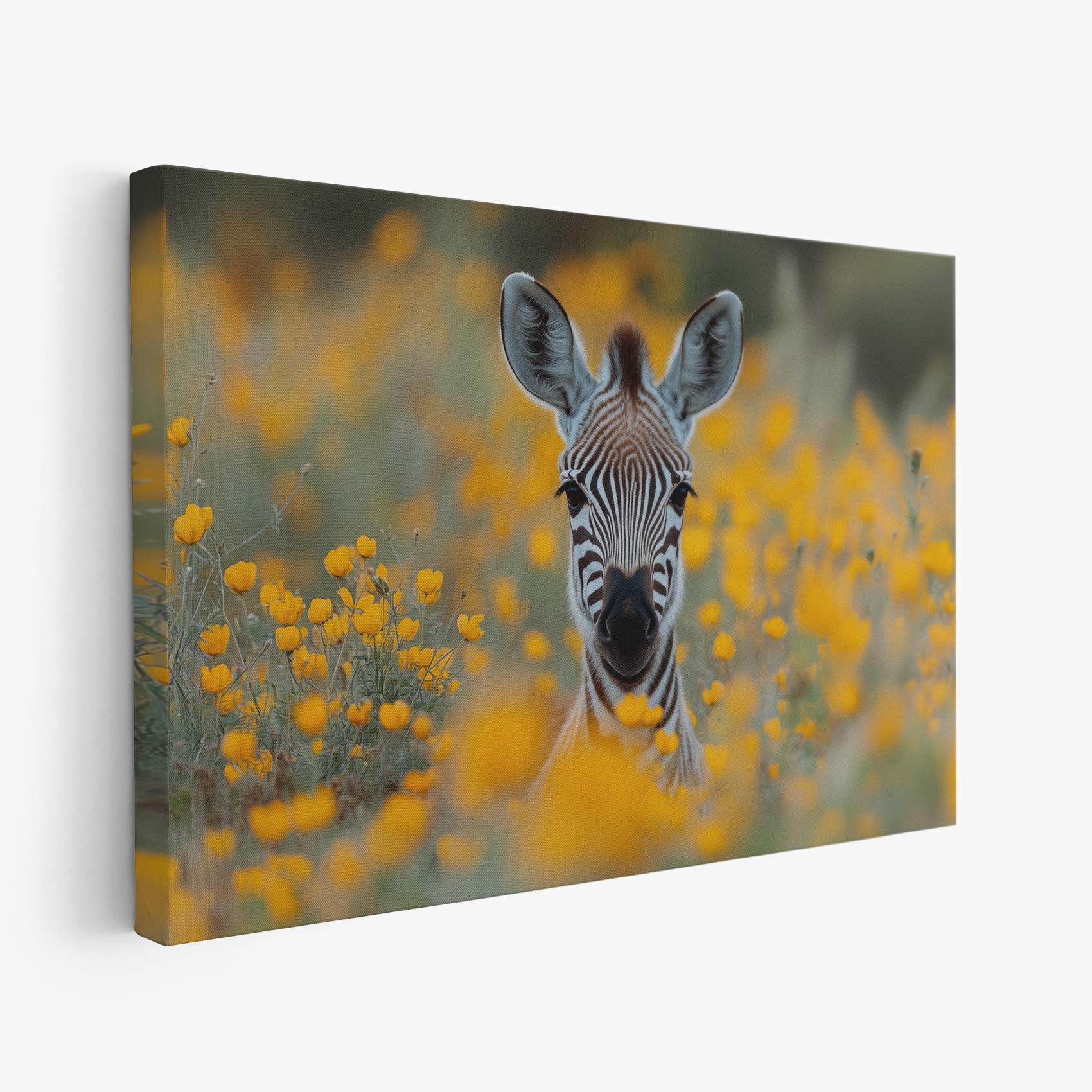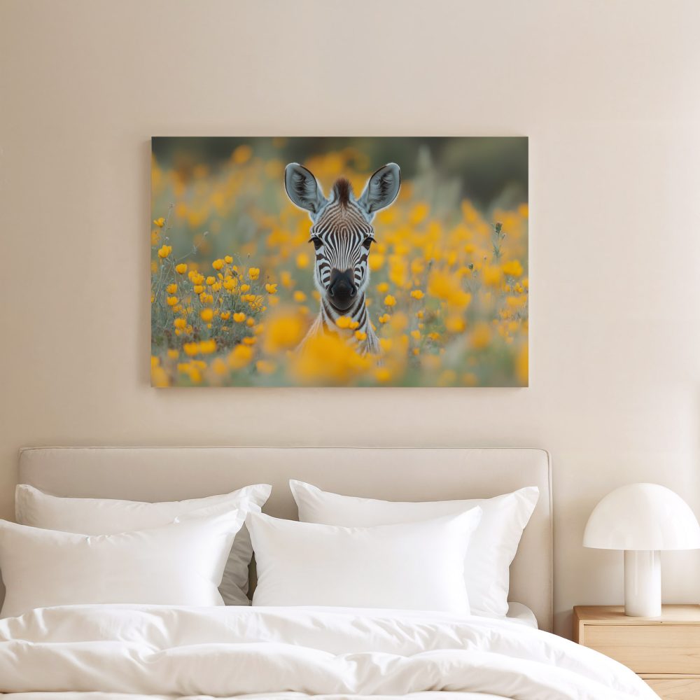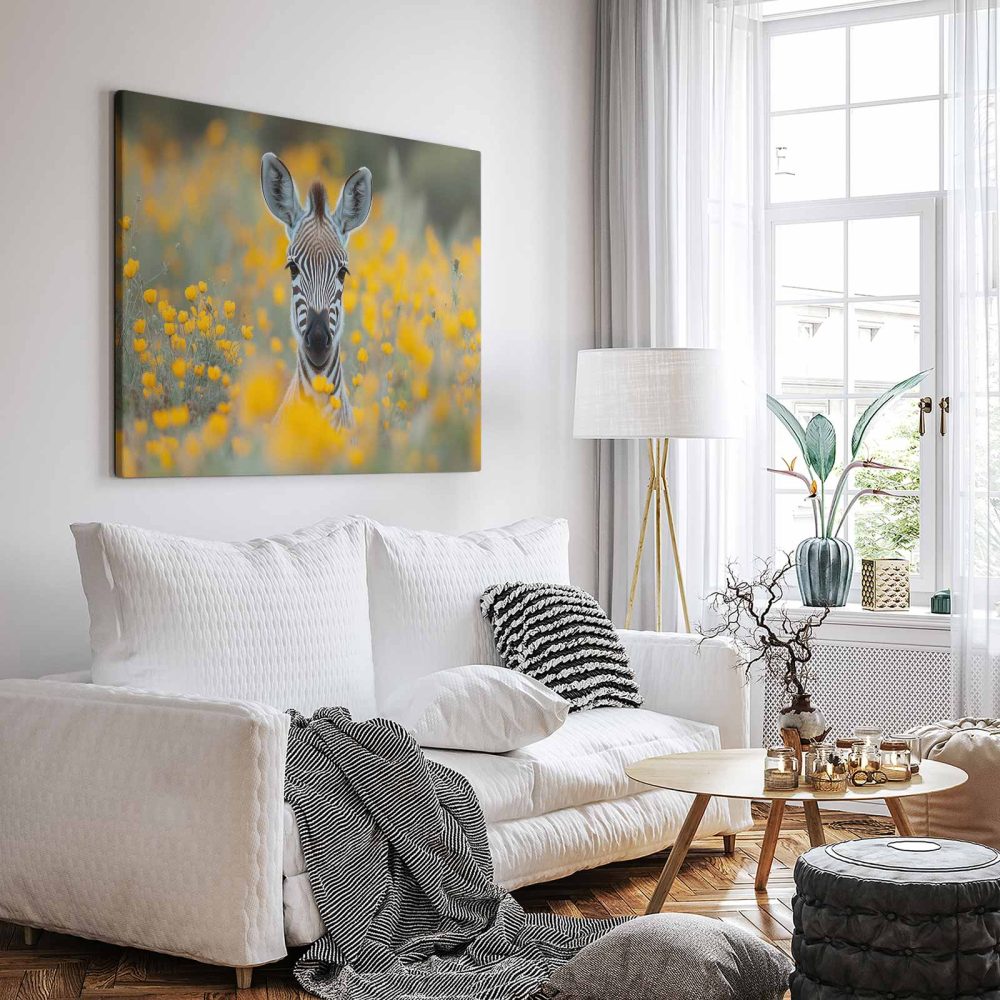 Terug naar collectie / Schilderijen / Bloemen Schilderij / Zebra in Geel Bloemenveld