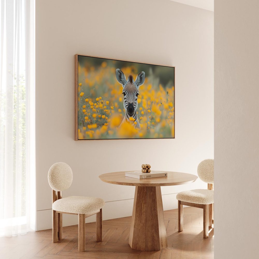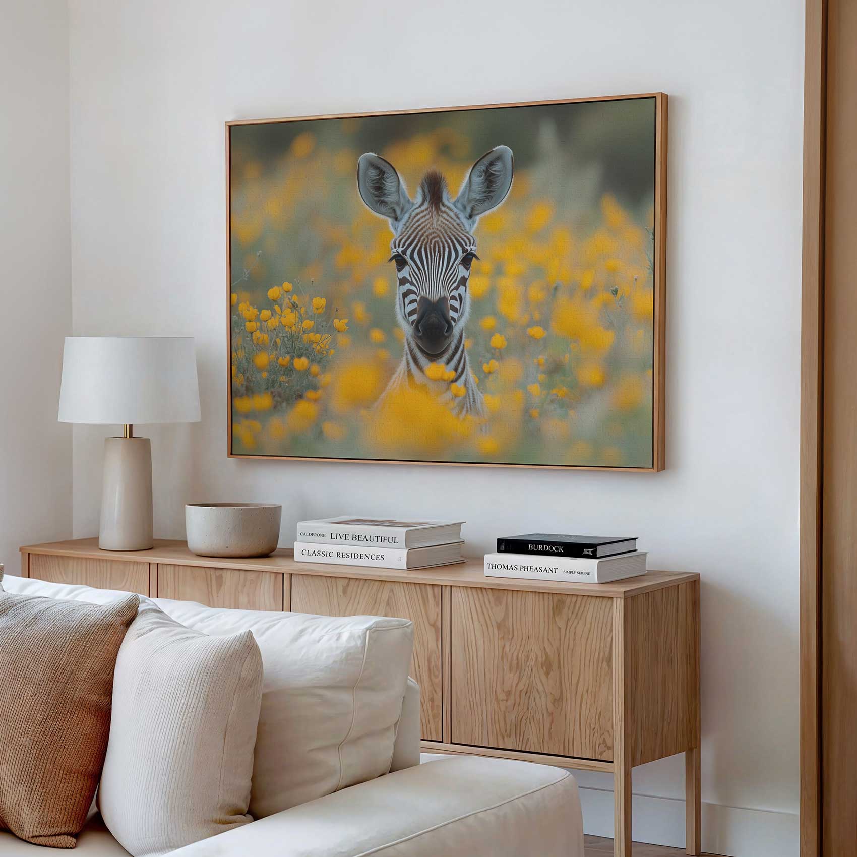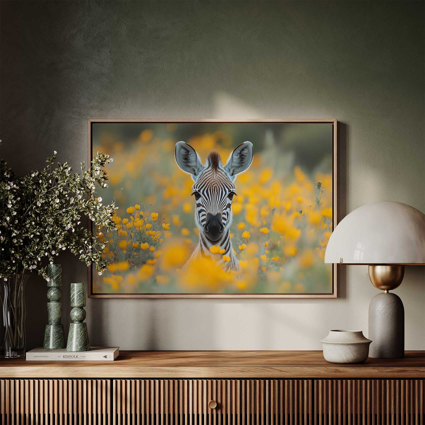 Terug naar collectie / Schilderijen / Bloemen Schilderij / Zebra in Geel Bloemenveld