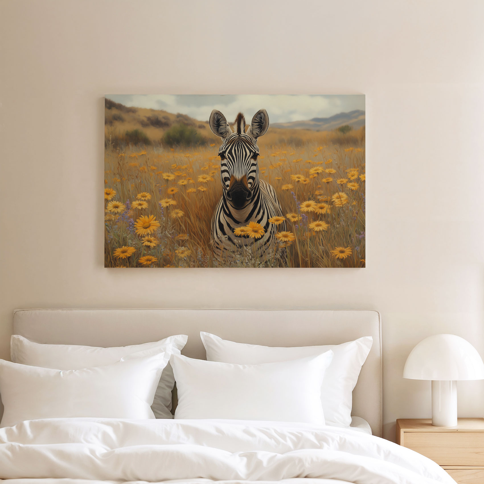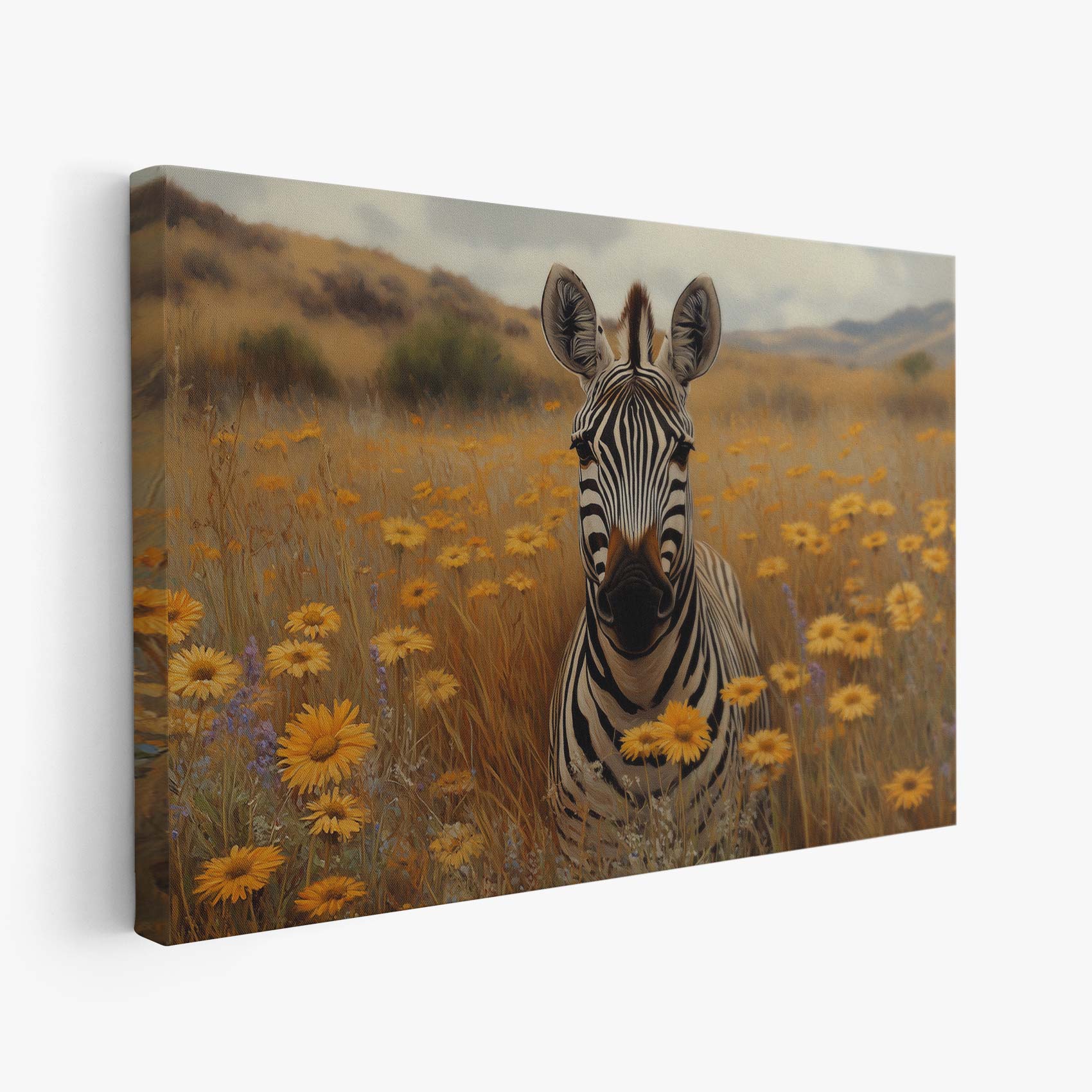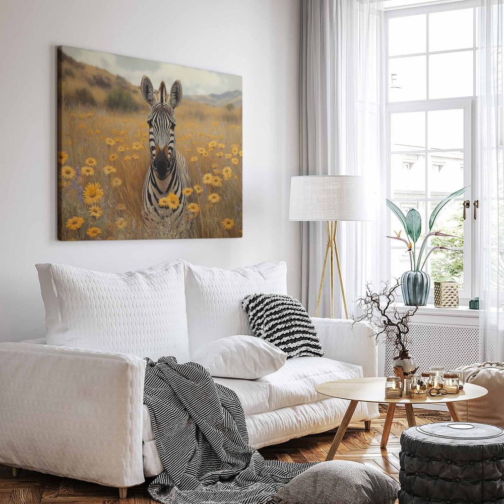 Terug naar collectie / Schilderijen / Bloemen Schilderij / Zebra in Geel Bloemenveld