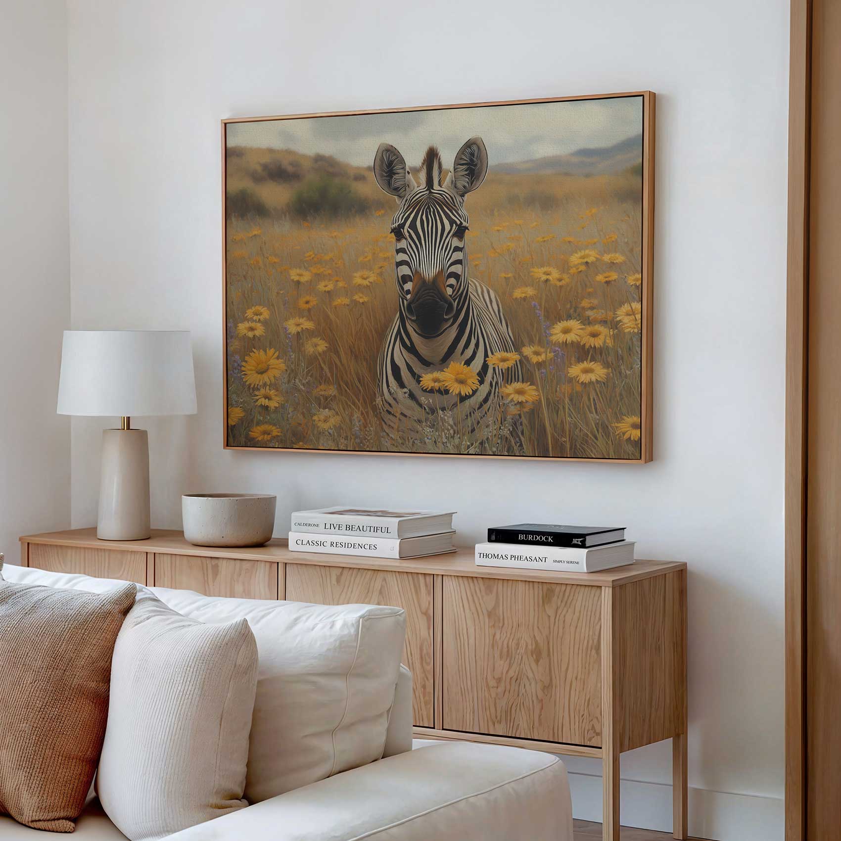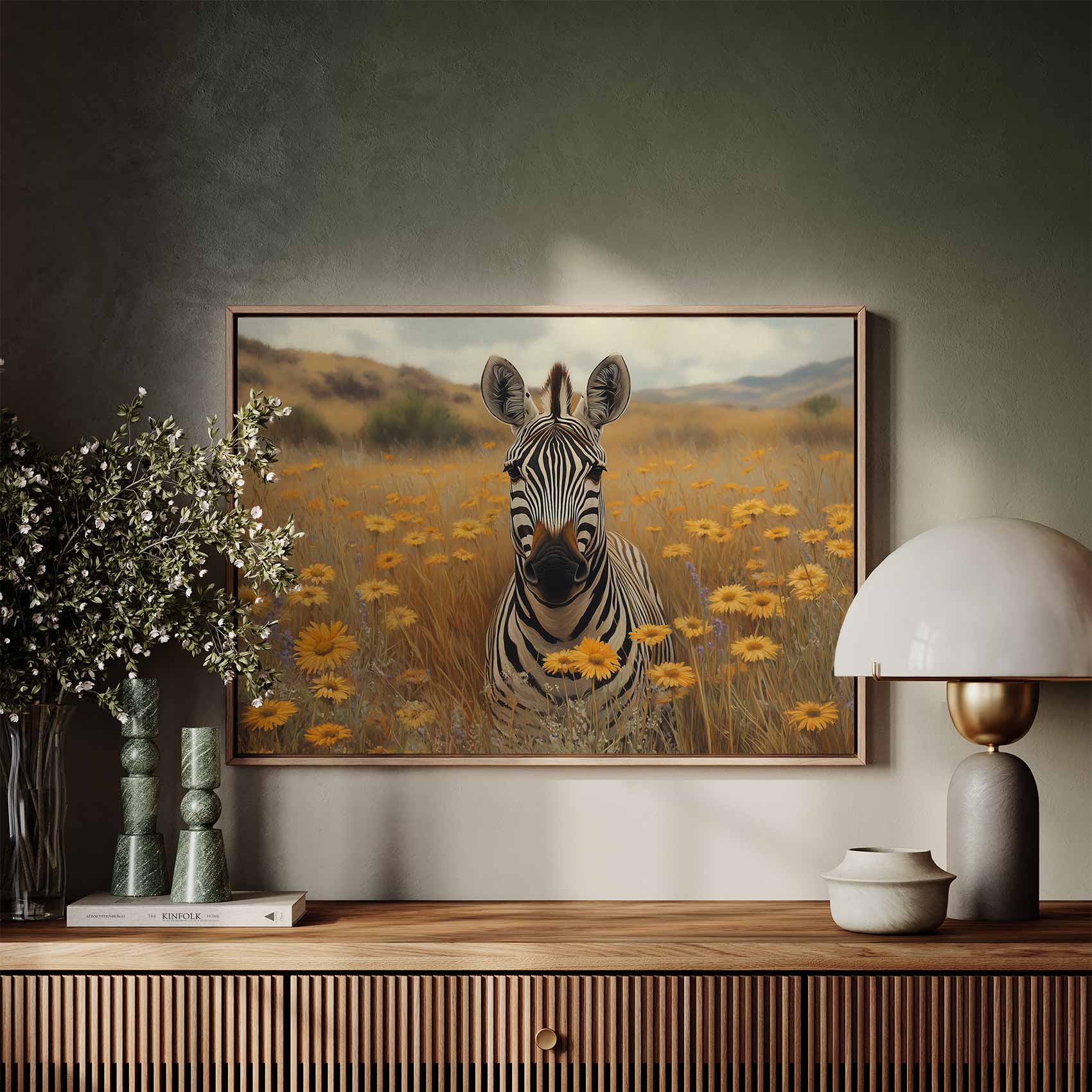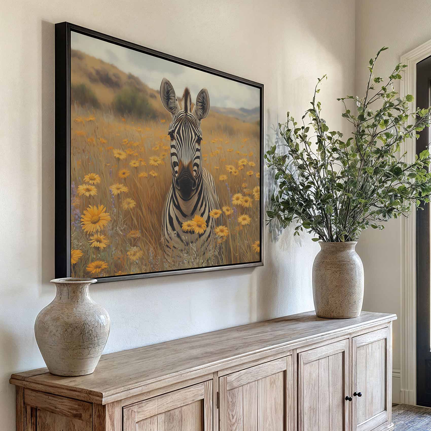 Terug naar collectie / Schilderijen / Bloemen Schilderij / Zebra in Geel Bloemenveld