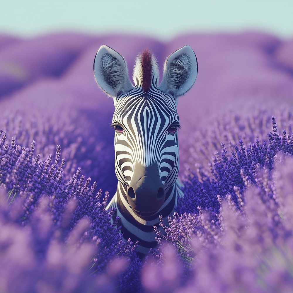Terug naar collectie / Behang / Zebra in Lavendelveld behang