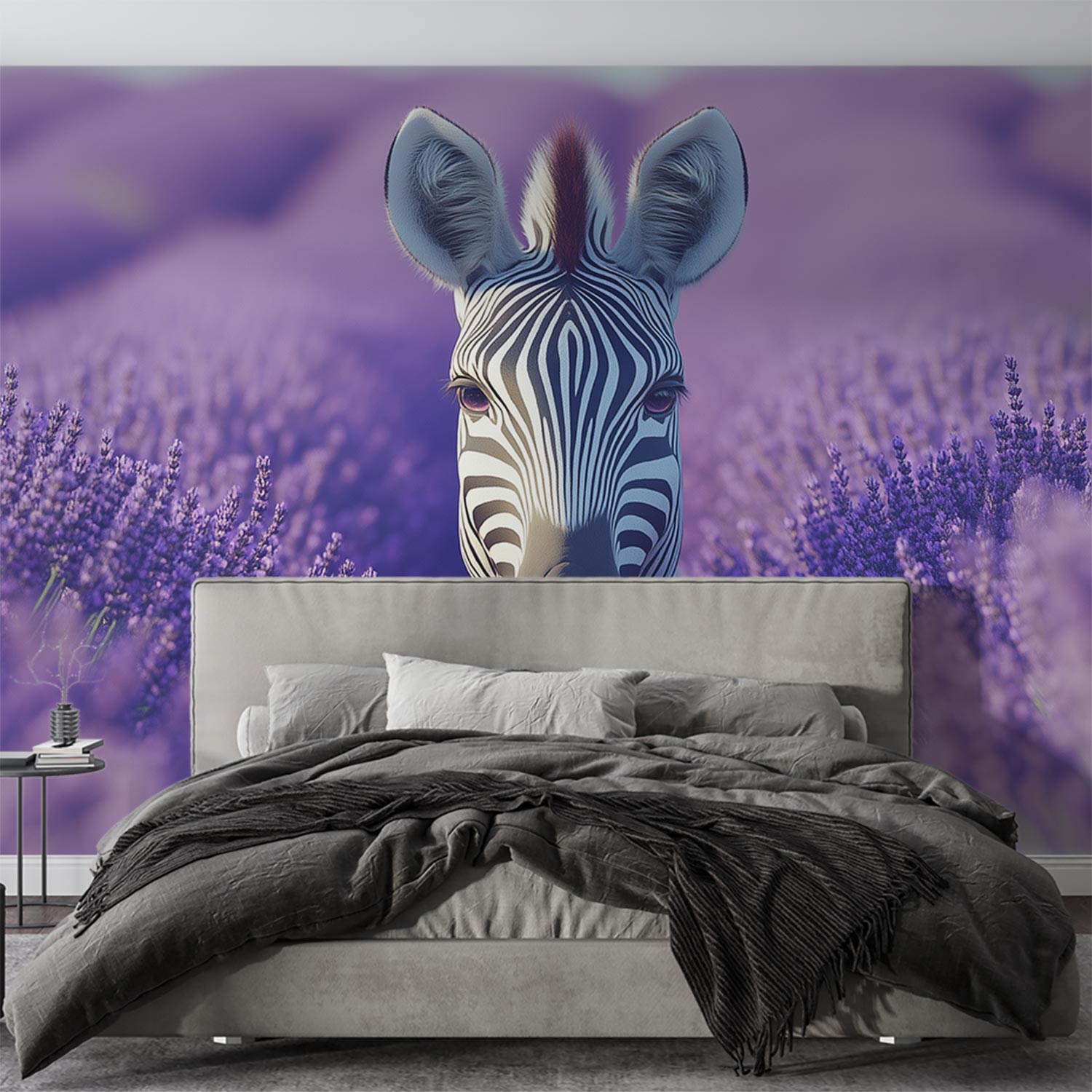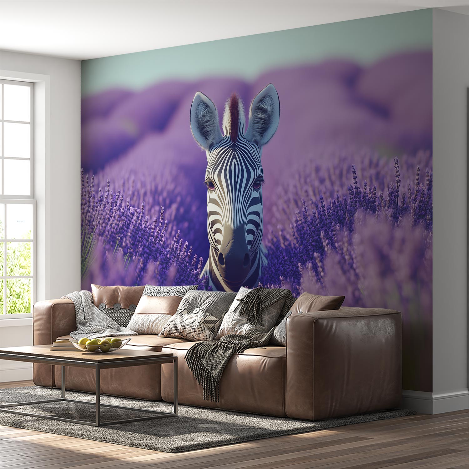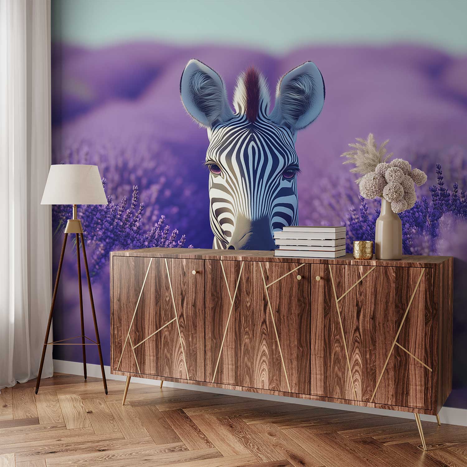 Zebra in Lavendelveld behang